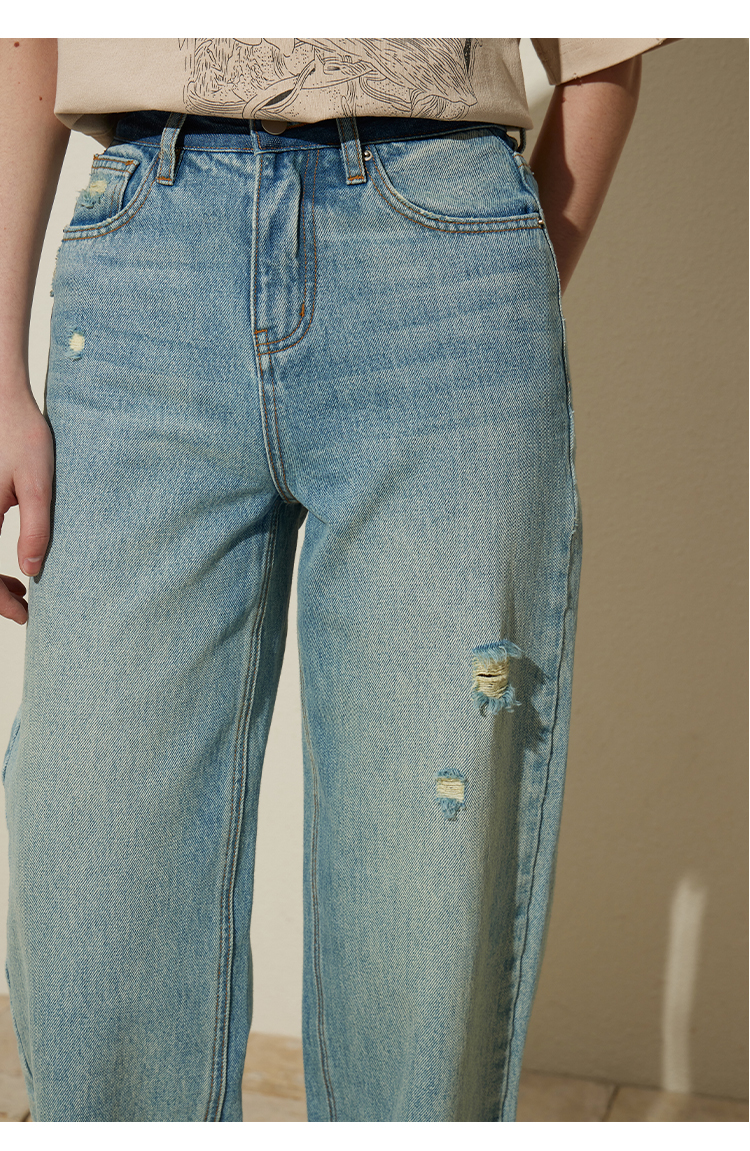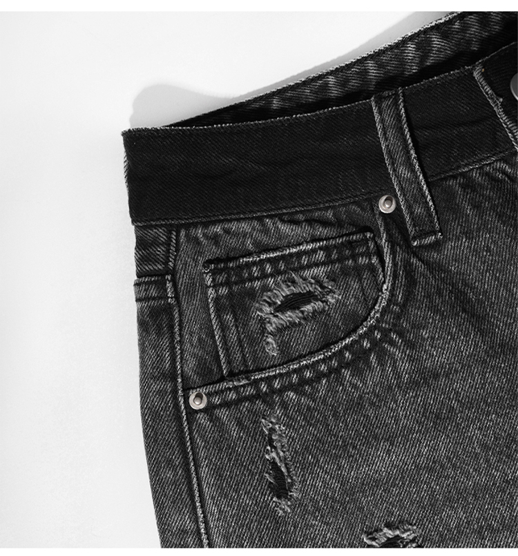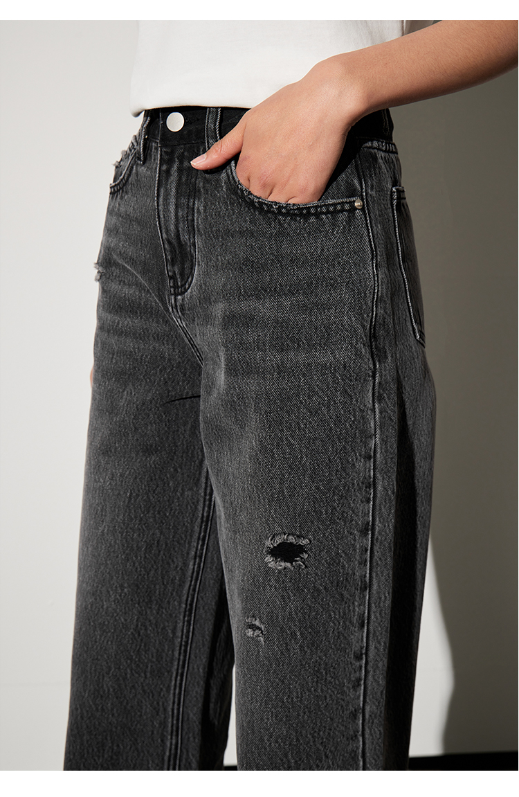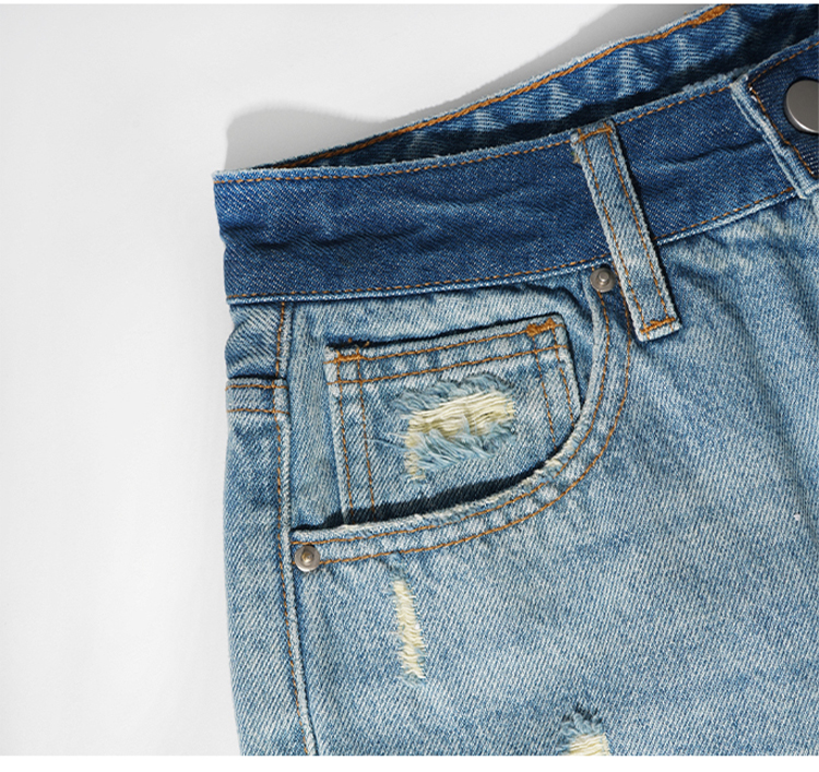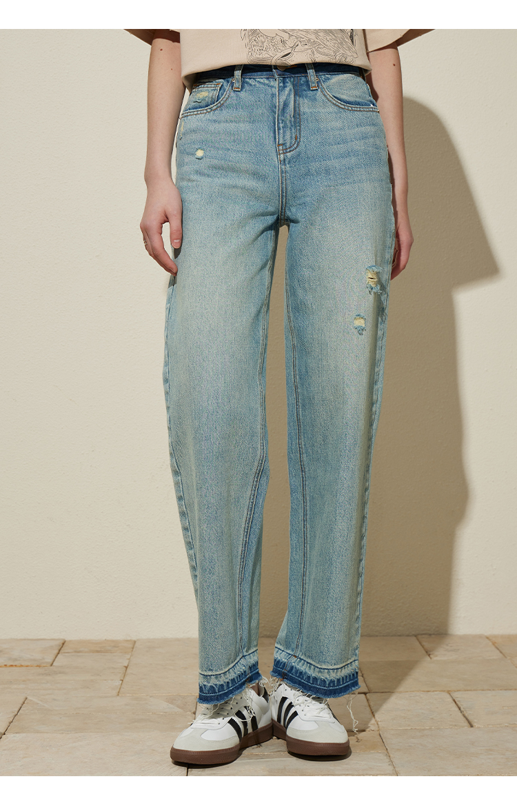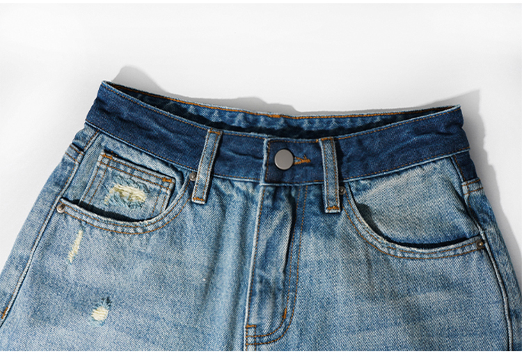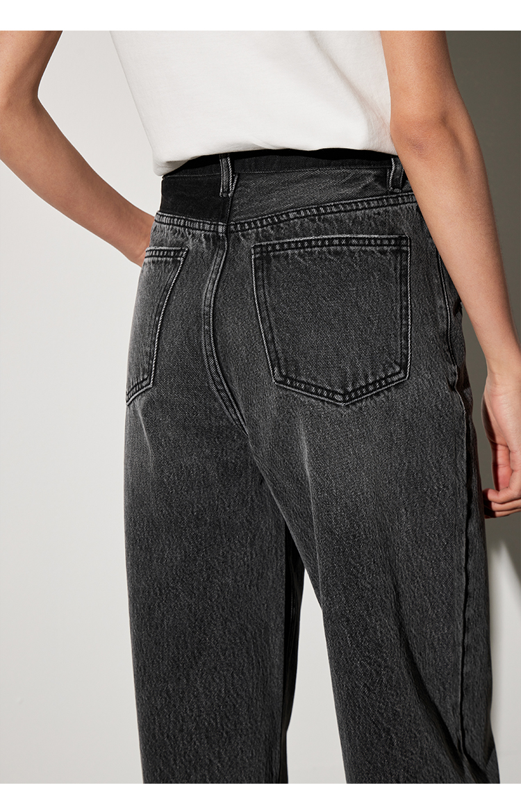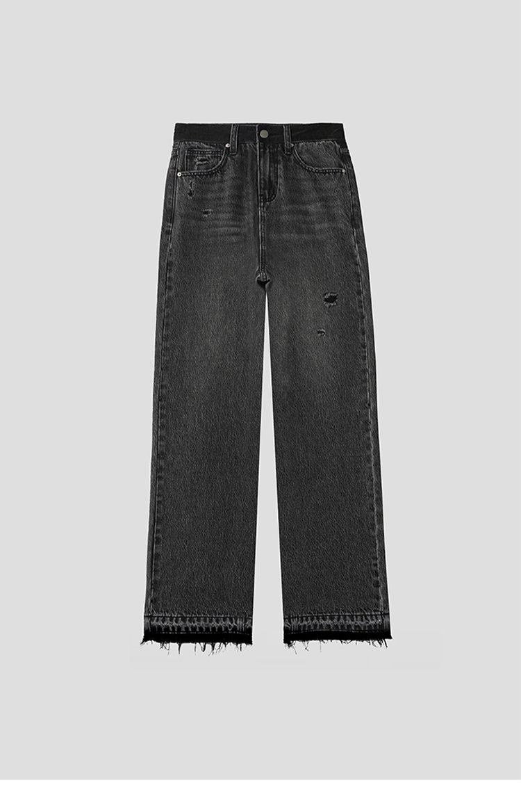 【好看好看】DENYBULES 夏季拼色直筒散边天丝阔腿裤休闲宽松显瘦复古撞色DB6108