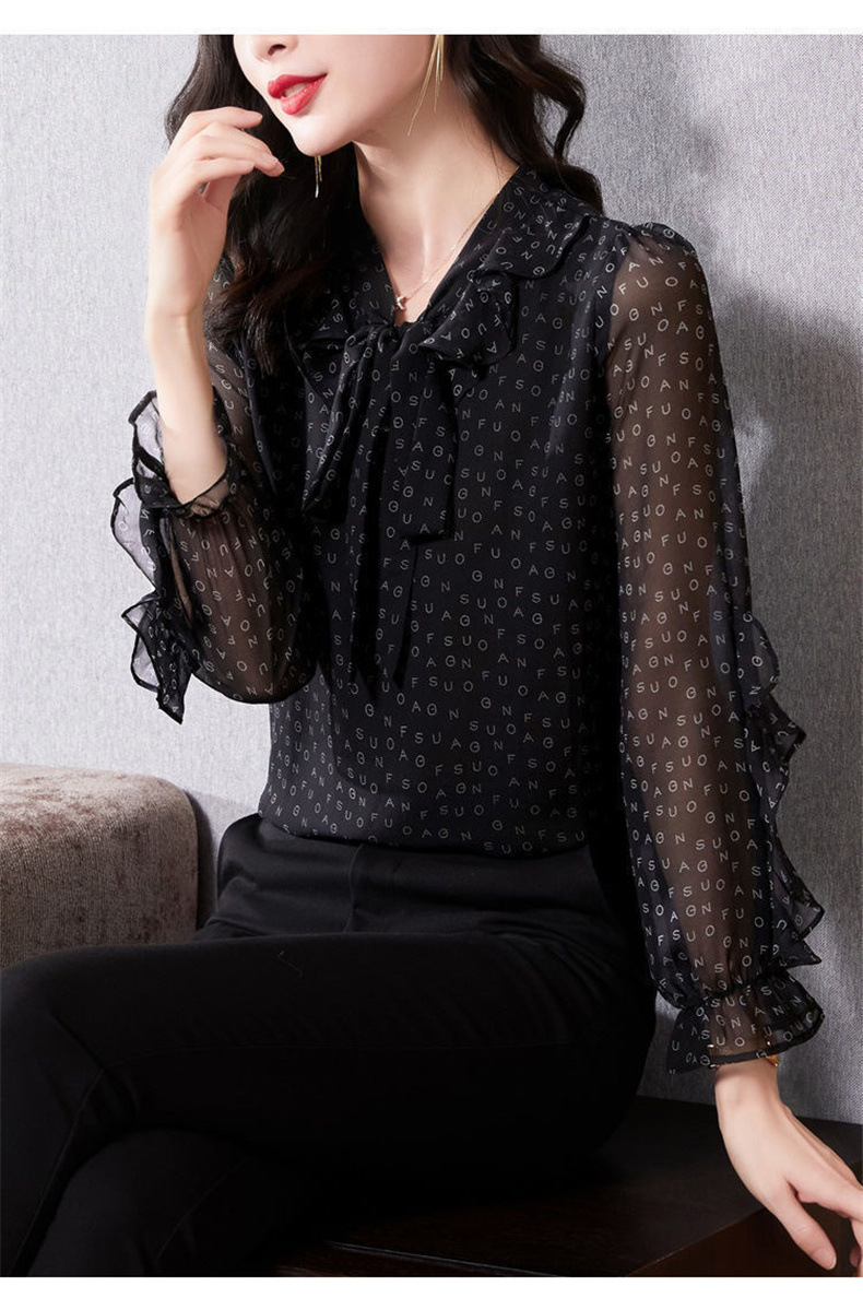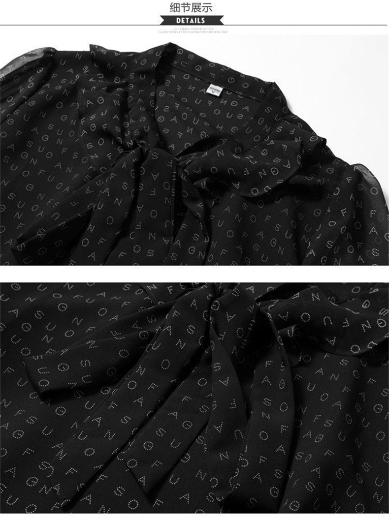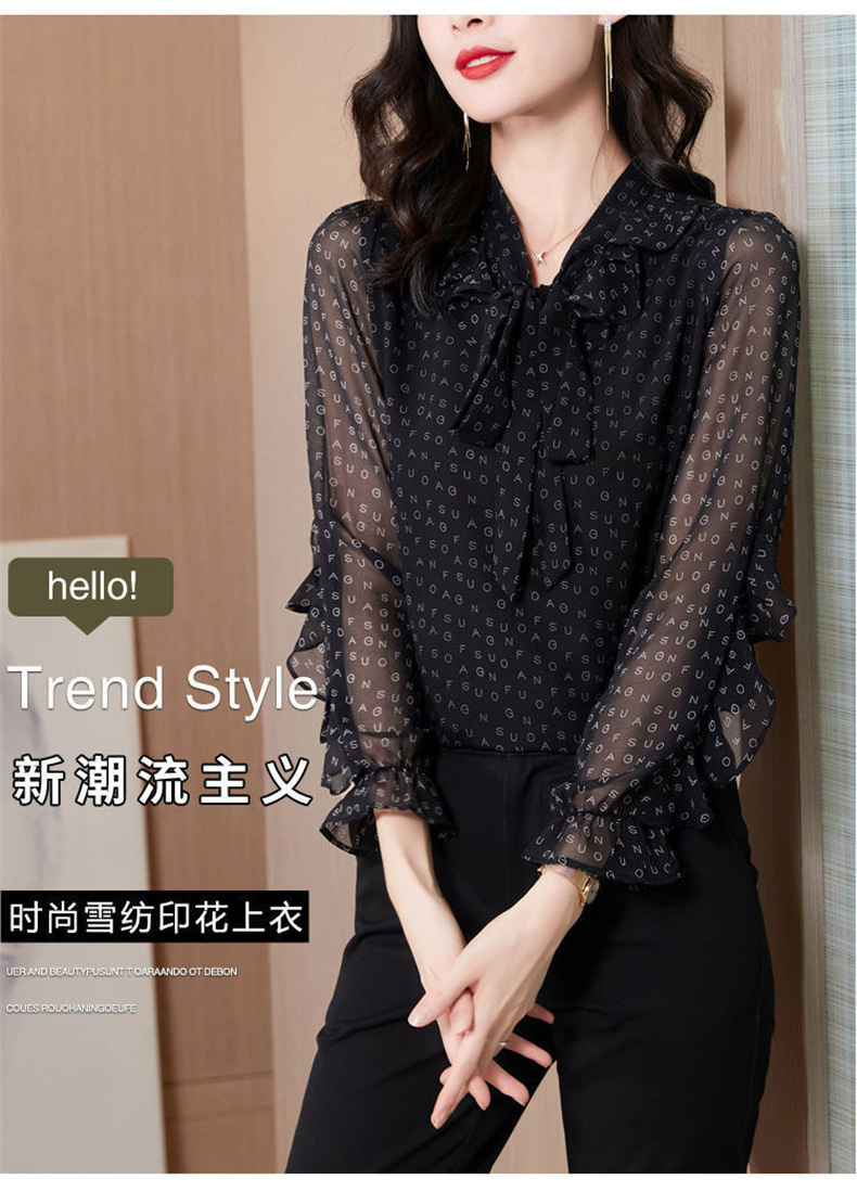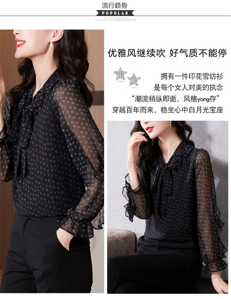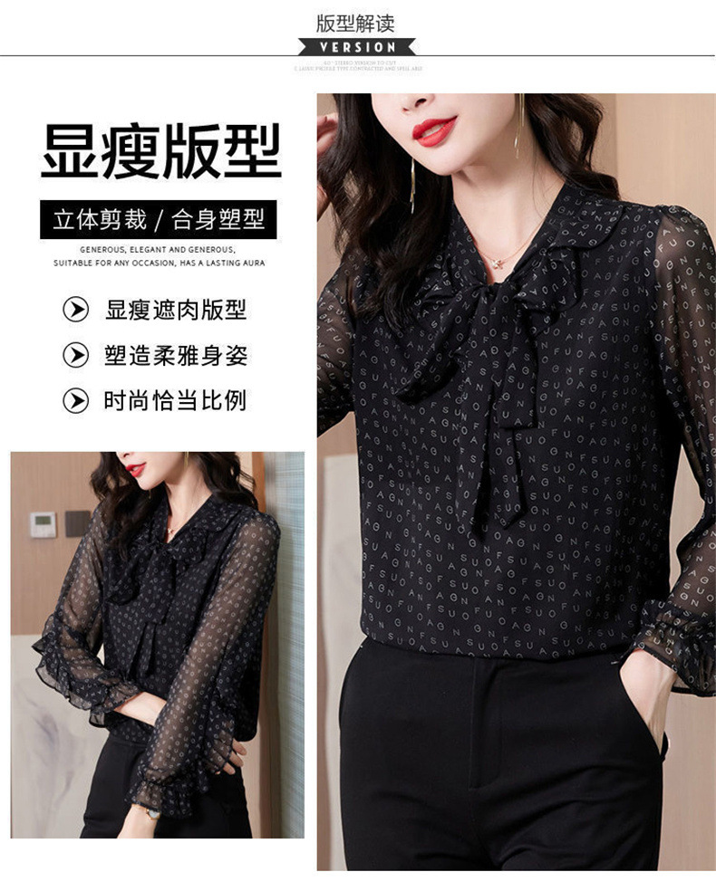 性感时尚衬衫内搭打底印花飘带洋气雪纺扎染系带别致法式上衣 TR-CFM6917