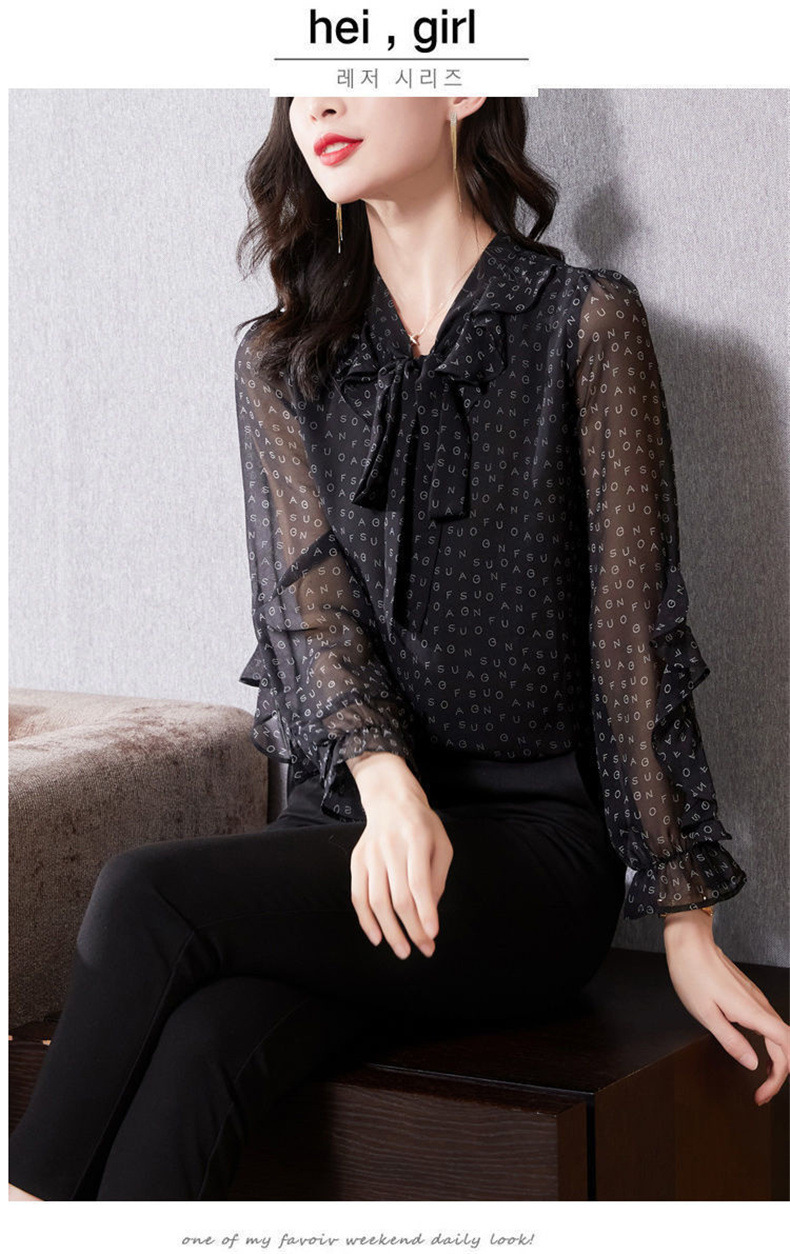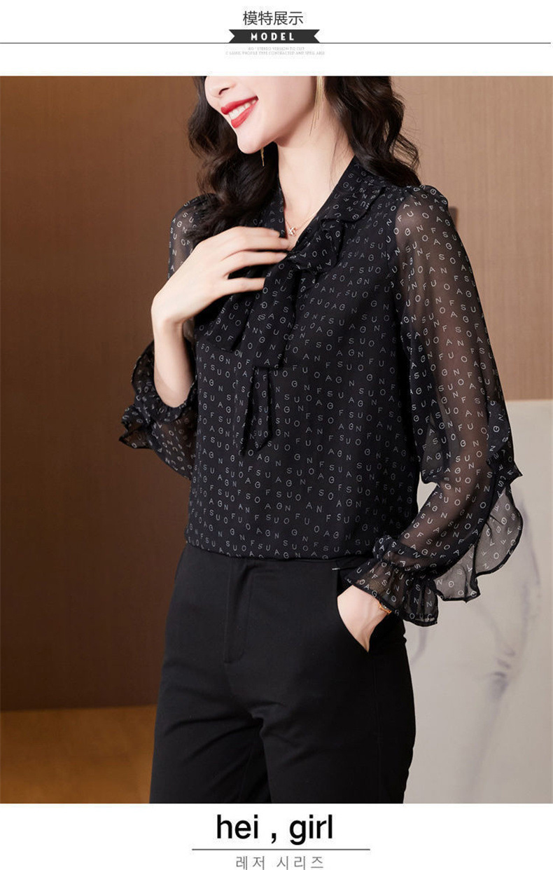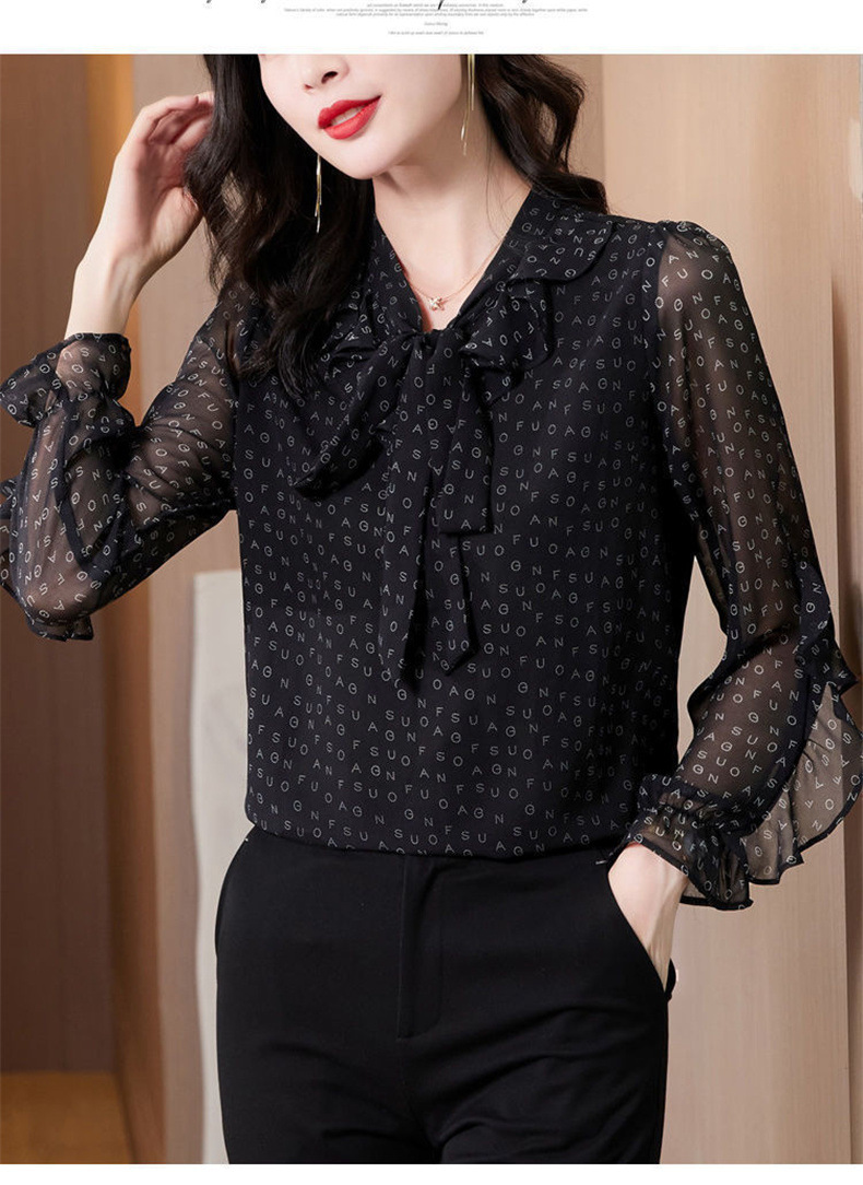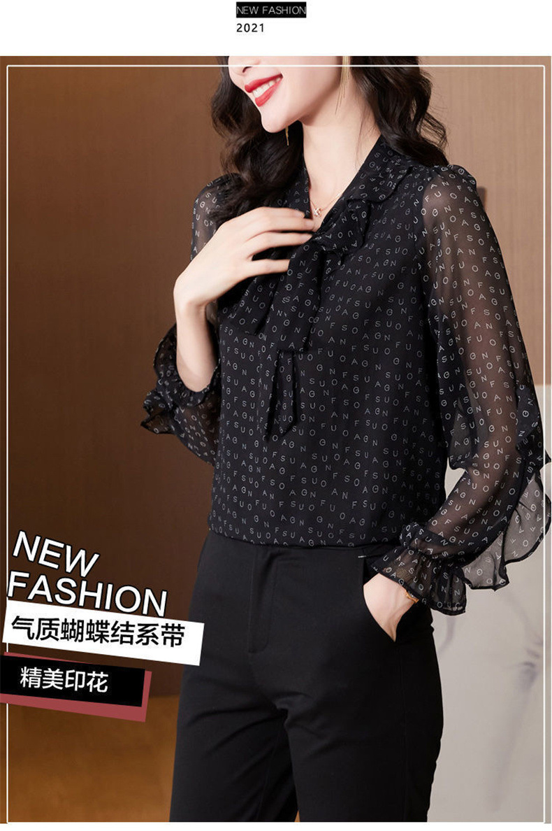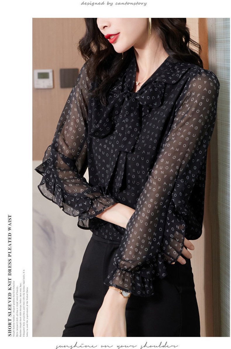 性感时尚衬衫内搭打底印花飘带洋气雪纺扎染系带别致法式上衣 TR-CFM6917