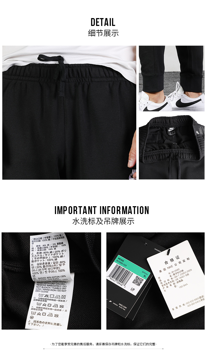 NIKE耐克男裤长裤浅灰色休闲裤新款宽松跑步运动裤BV2680-010