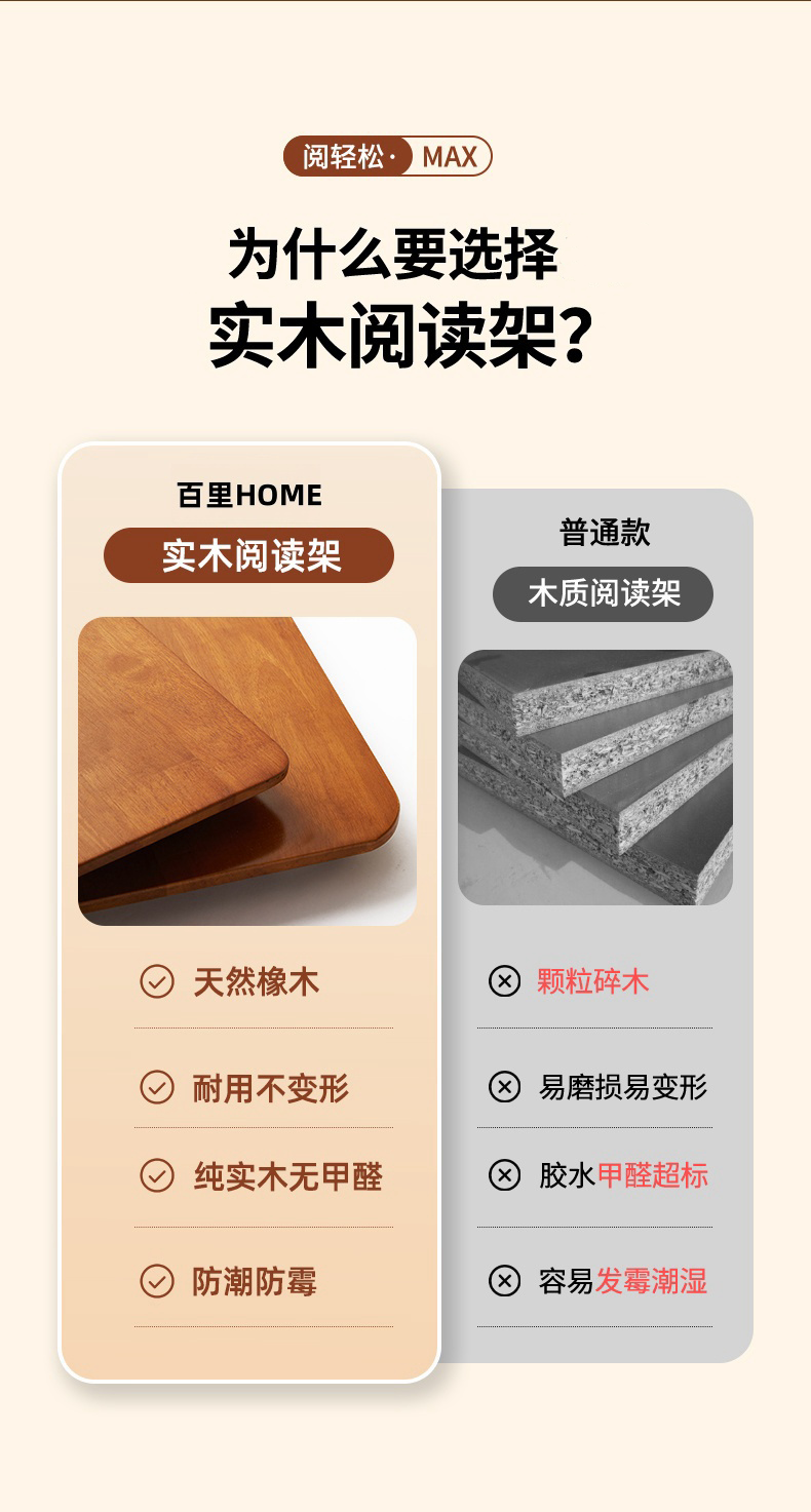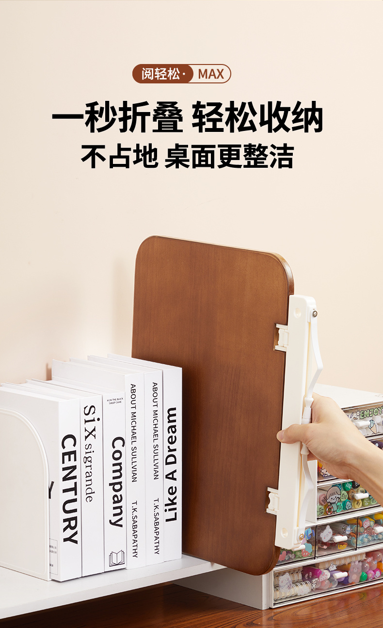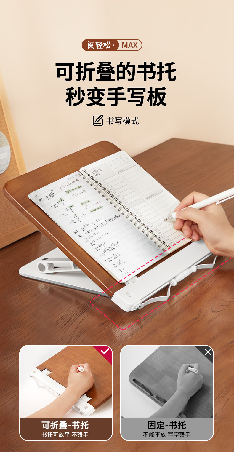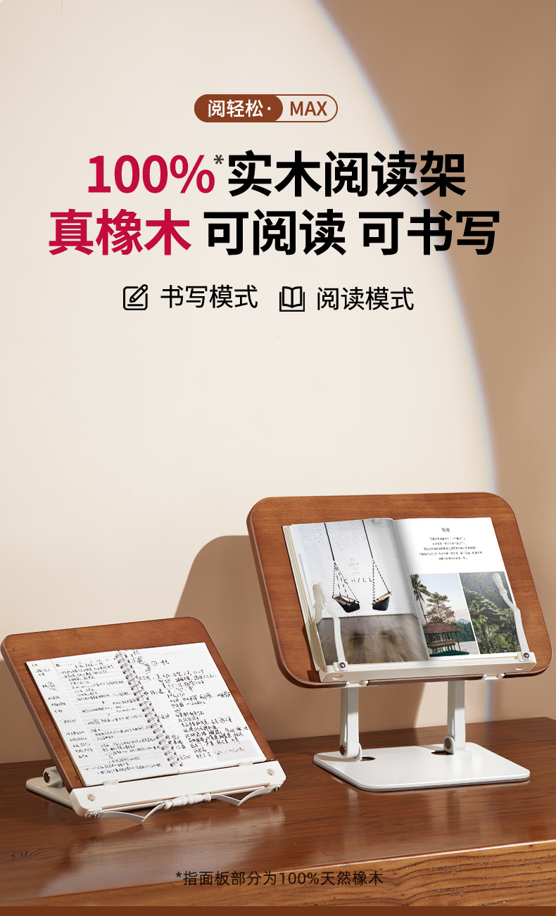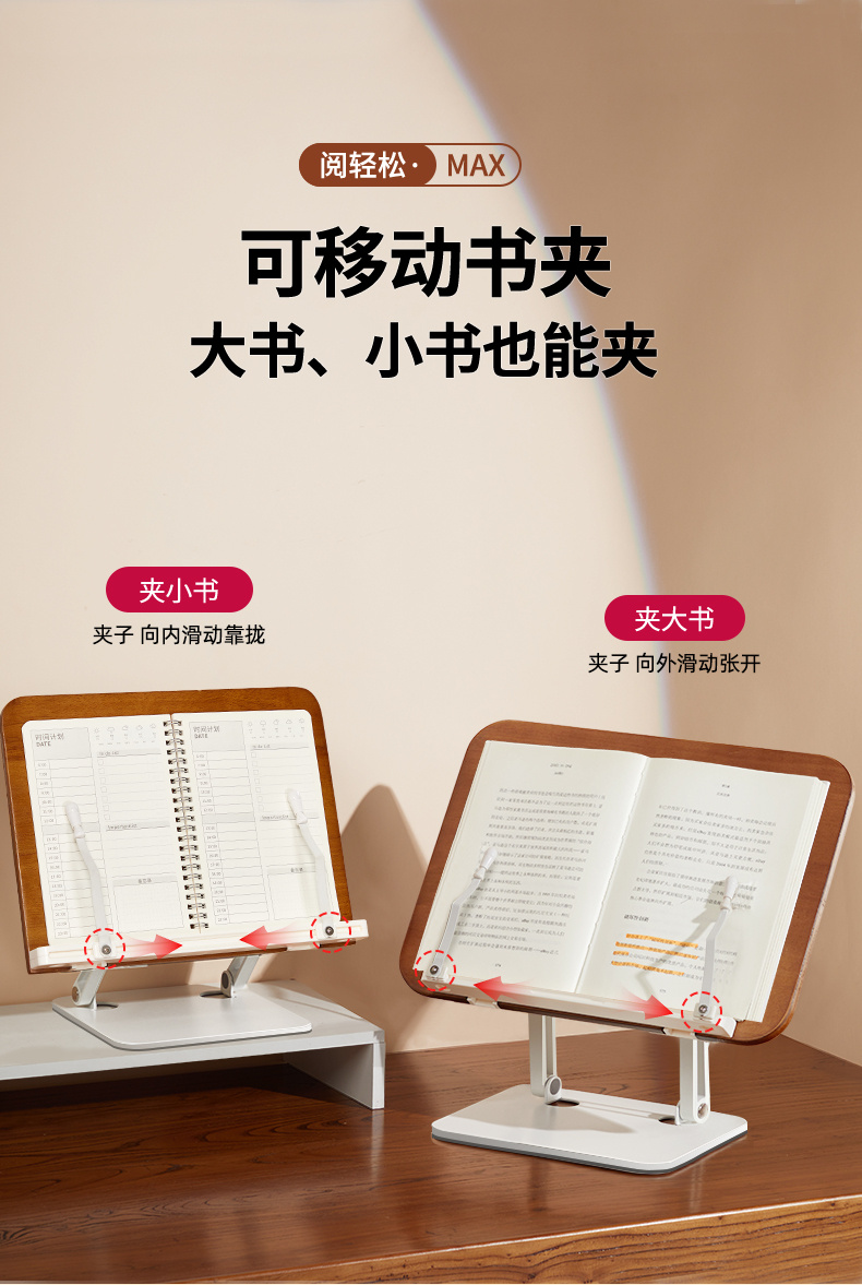 纯实木阅读架 双杆铝合金支架 儿童多功能看书神器 可调节升降阅读书架 学生桌面夹书固定器书本神器 |百里居