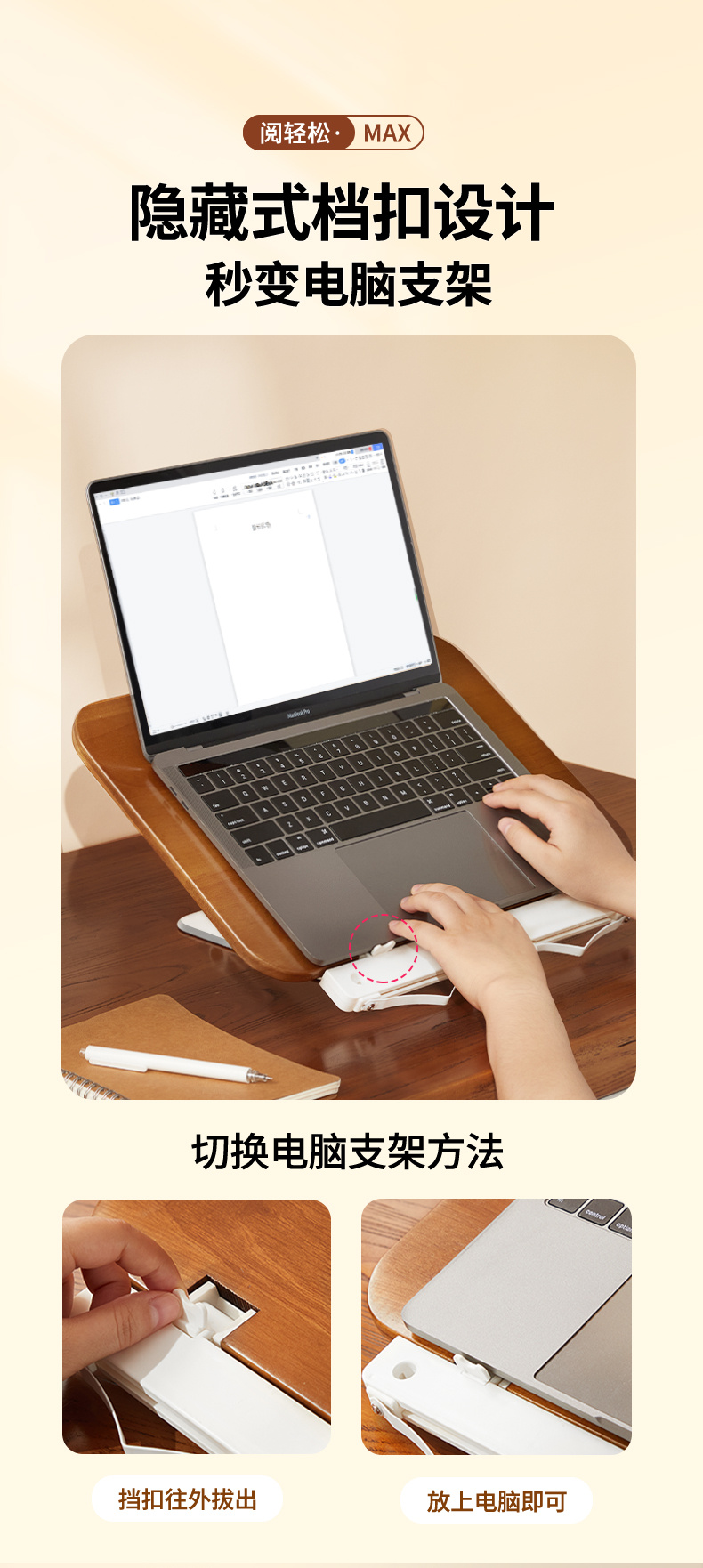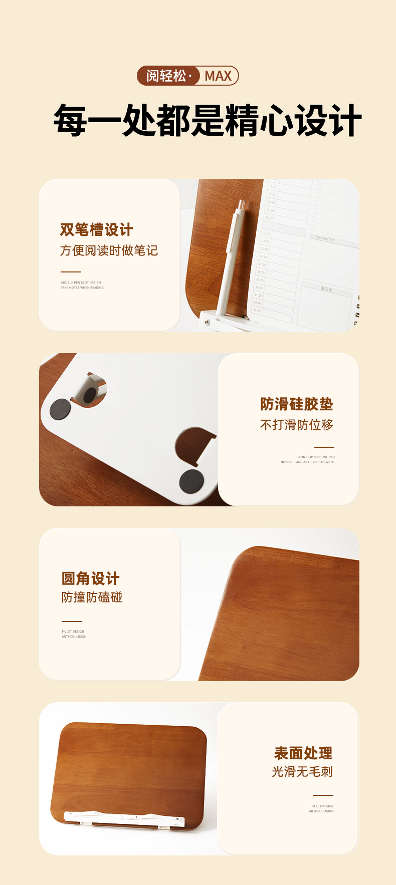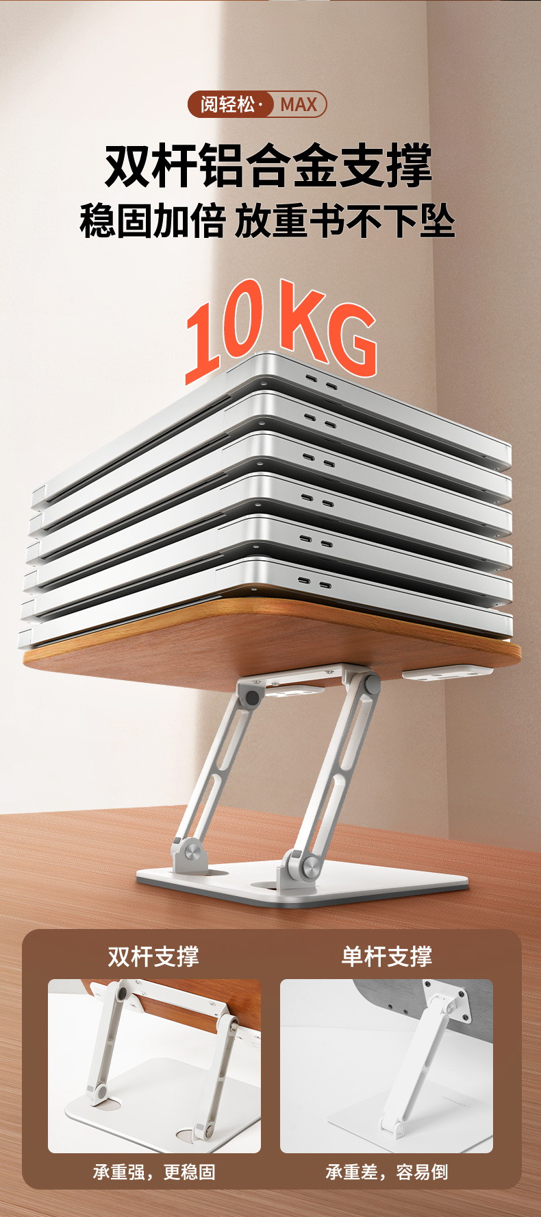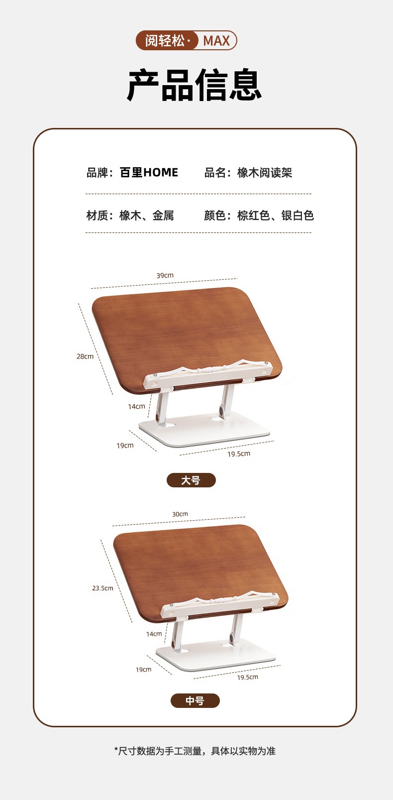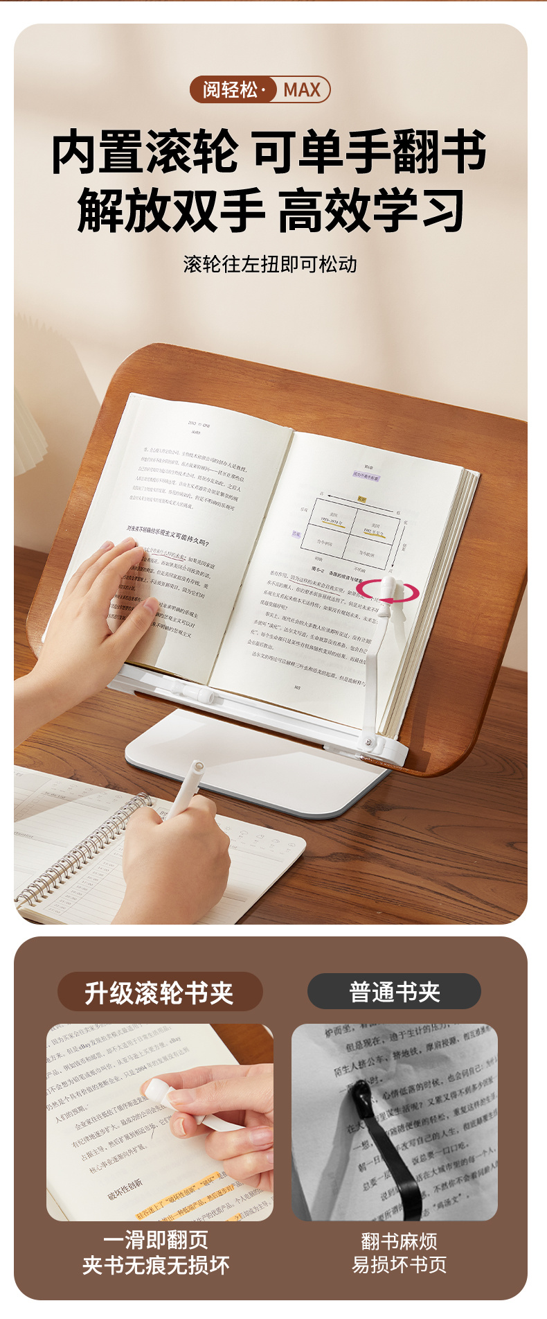纯实木阅读架 双杆铝合金支架 儿童多功能看书神器 可调节升降阅读书架 学生桌面夹书固定器书本神器 |百里居
