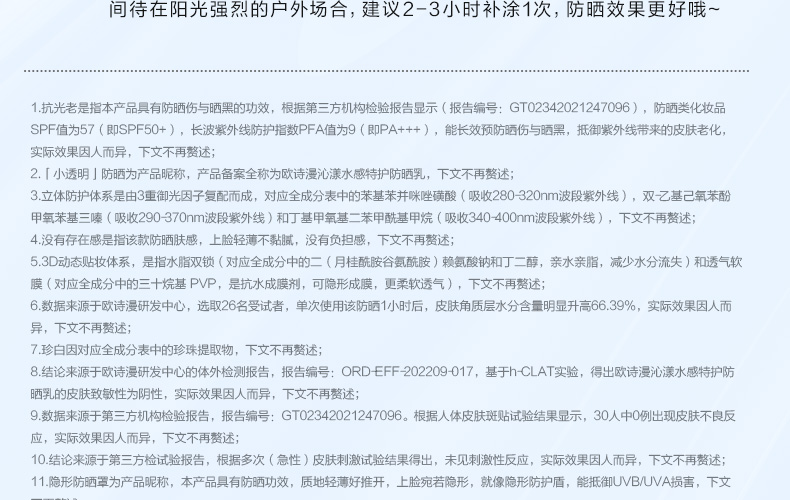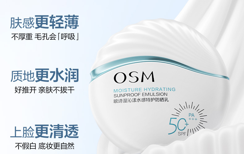 心选丨【买一赠一】欧诗漫沁漾水感特护防晒乳 轻盈不搓泥水感防晒50ml/瓶