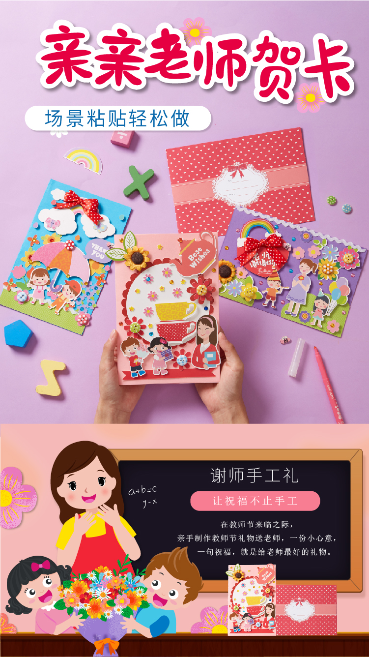 教师节礼物手工diy新款亲亲老师贺卡幼儿园儿童创意材料包送老师