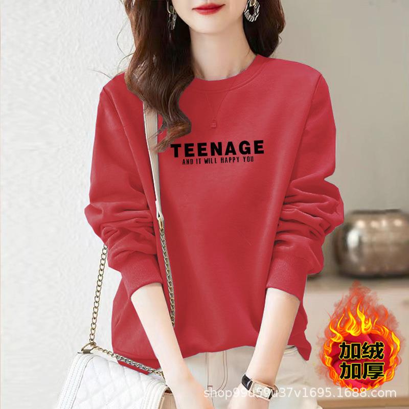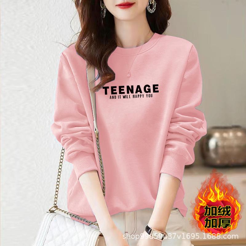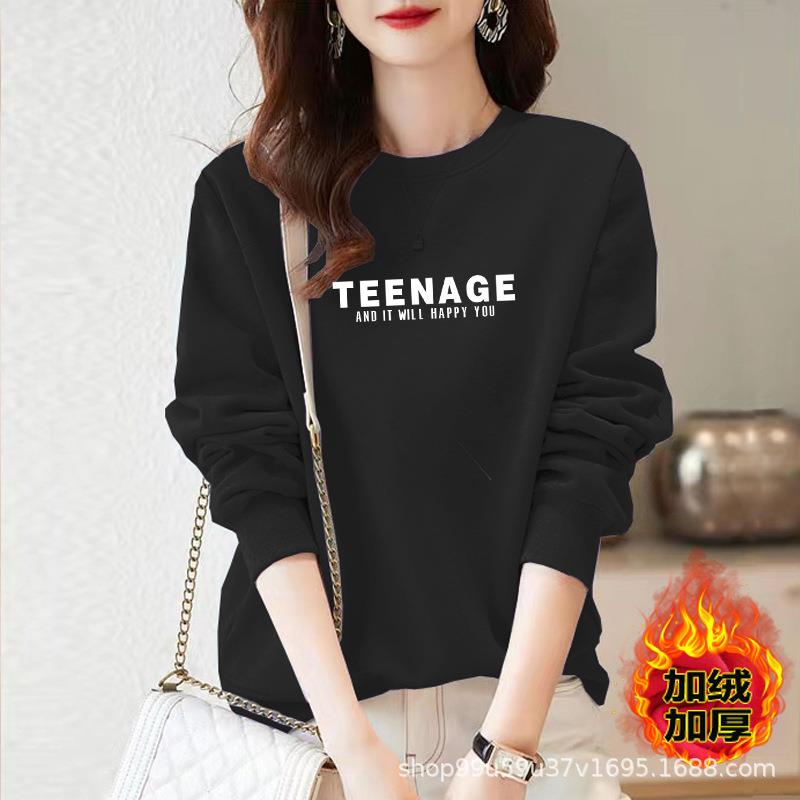 加绒棉质圆领宽松卫衣女式印花休闲运动衣显瘦时尚外套上衣字母