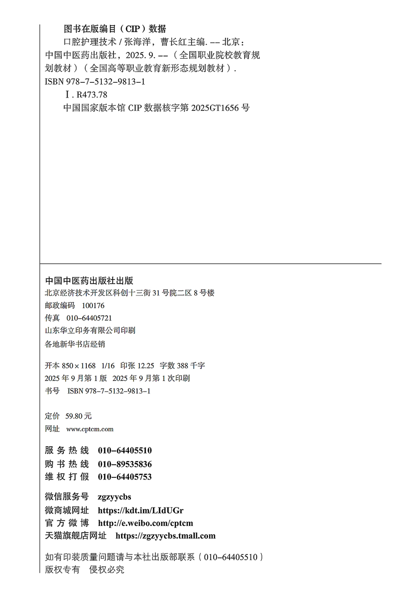 口腔护理技术 全国高等职业教育新形态规划教材 张海洋 曹长红 供口腔医学口腔医学技术口腔卫生保健等专业使用 中国中医药出版社
