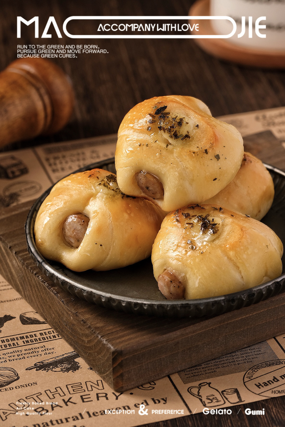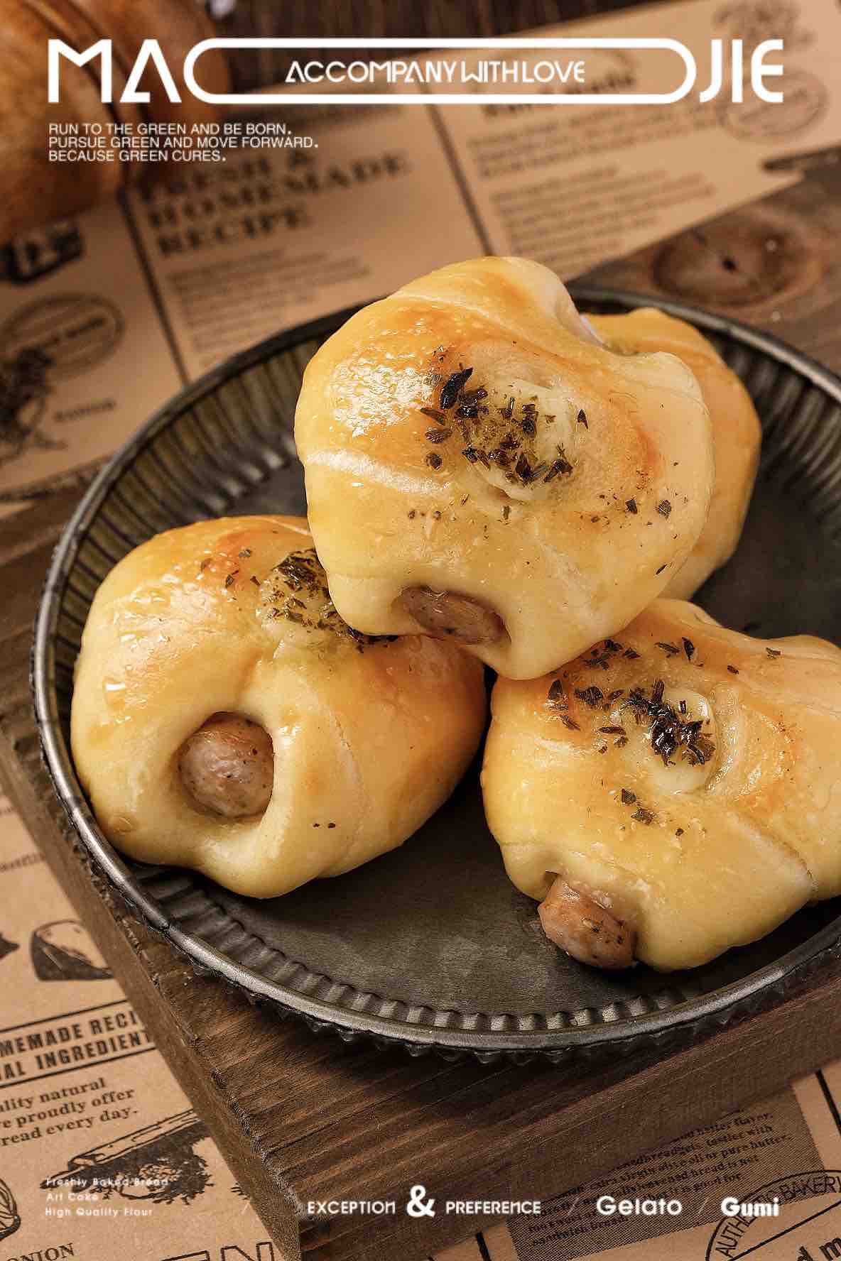 鲜酵母、台式黑椒猪肉肠、丘比沙拉酱