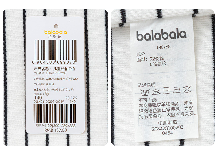 巴拉巴拉儿童家居服宝宝男女童睡衣冬保暖中大童高领长袖T恤