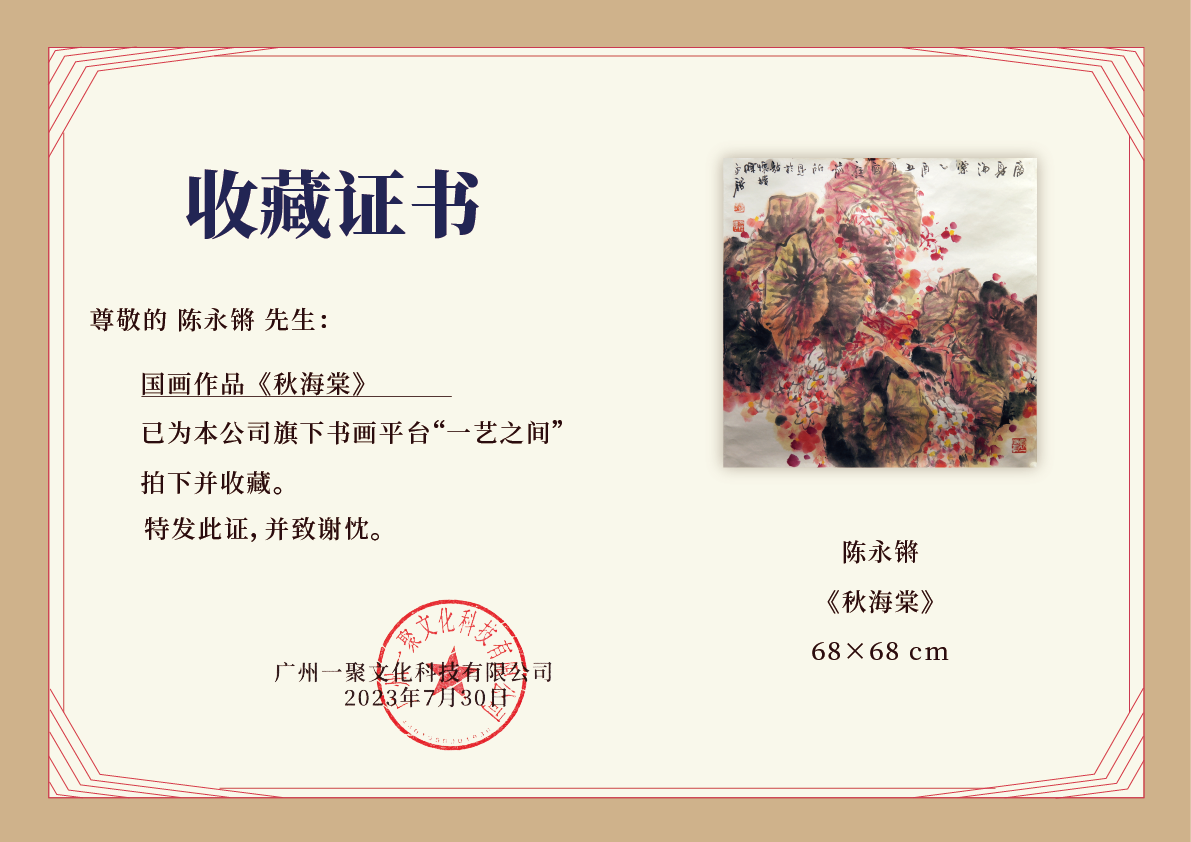 陈永锵国画68x68CM《秋海棠》一4.16平尺手绘纸本宣纸国画作品[原作编号GH0324]