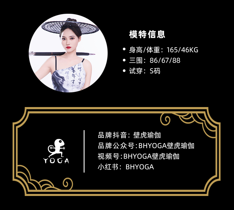 【现货秒发】壁虎瑜伽【2502SY320黑色墨染江山】美背亲肤两件套(一体式胸垫)