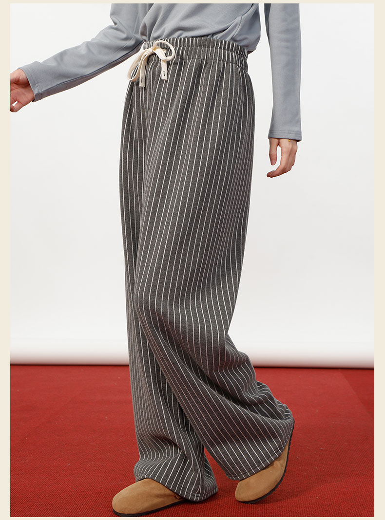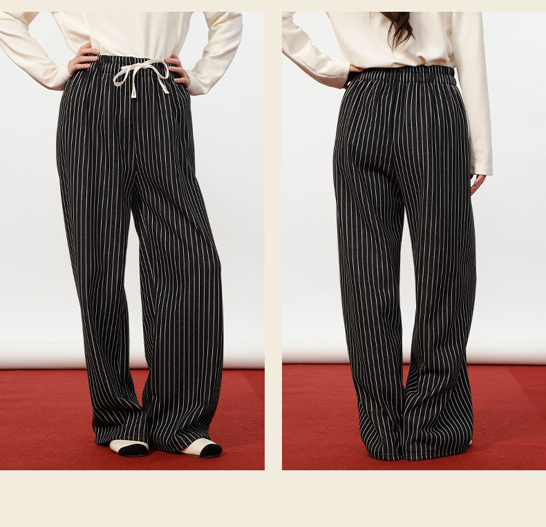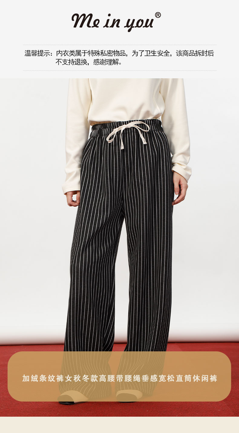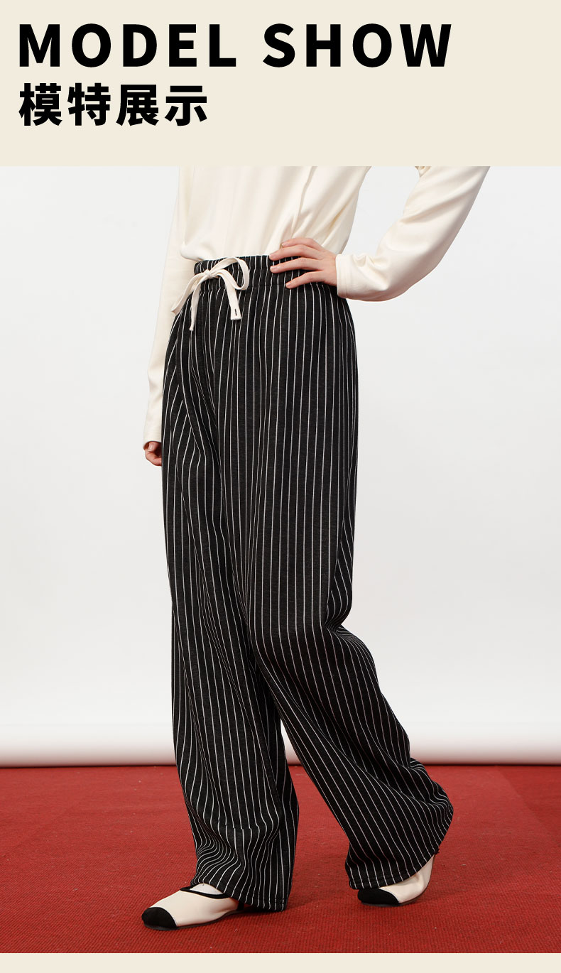 美式条纹阔腿裤女垂感休闲运动裤条纹裤-纪念日百货门店同款167896689