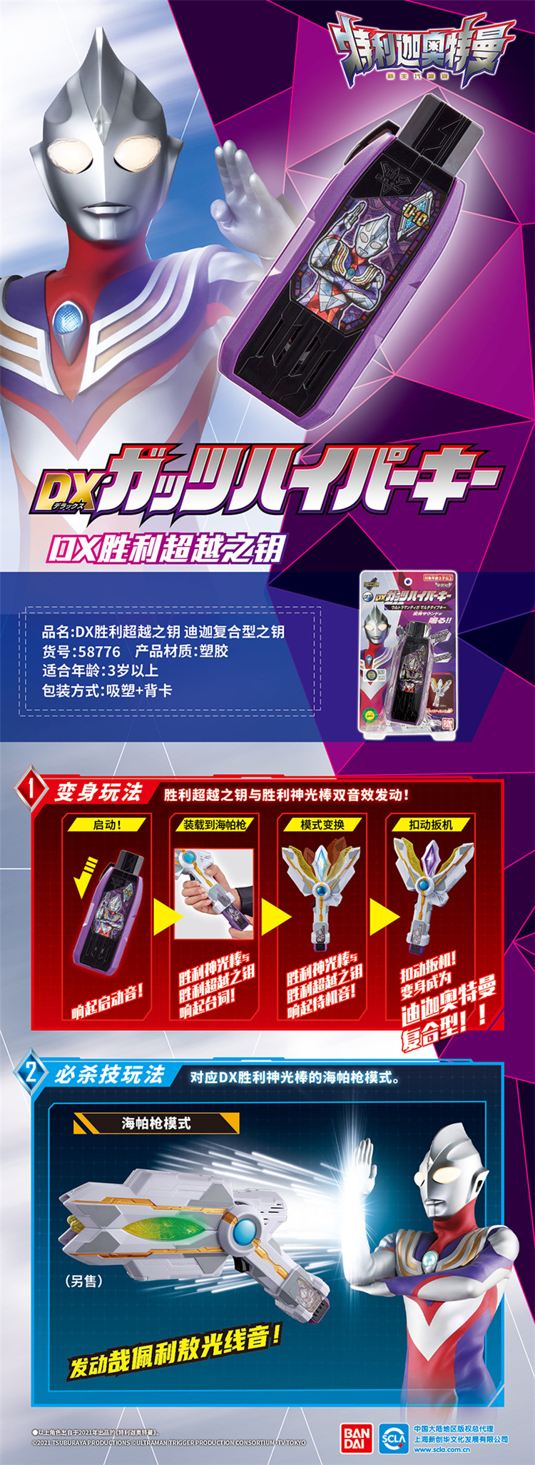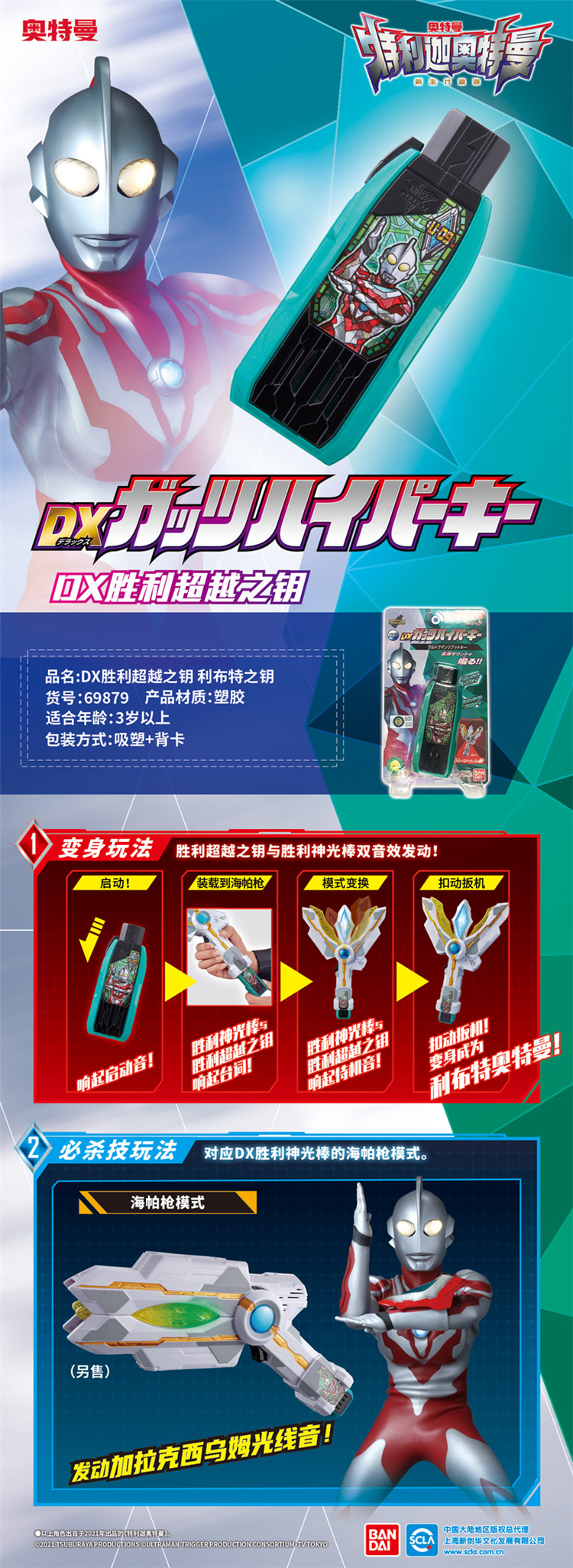 万代Bandai 特利迦奥特曼DX胜利超越之钥迪迦复合型之钥