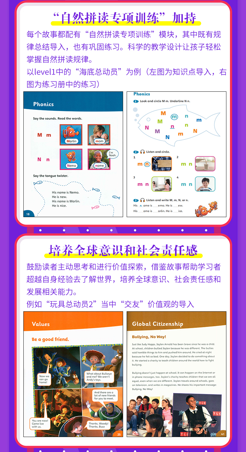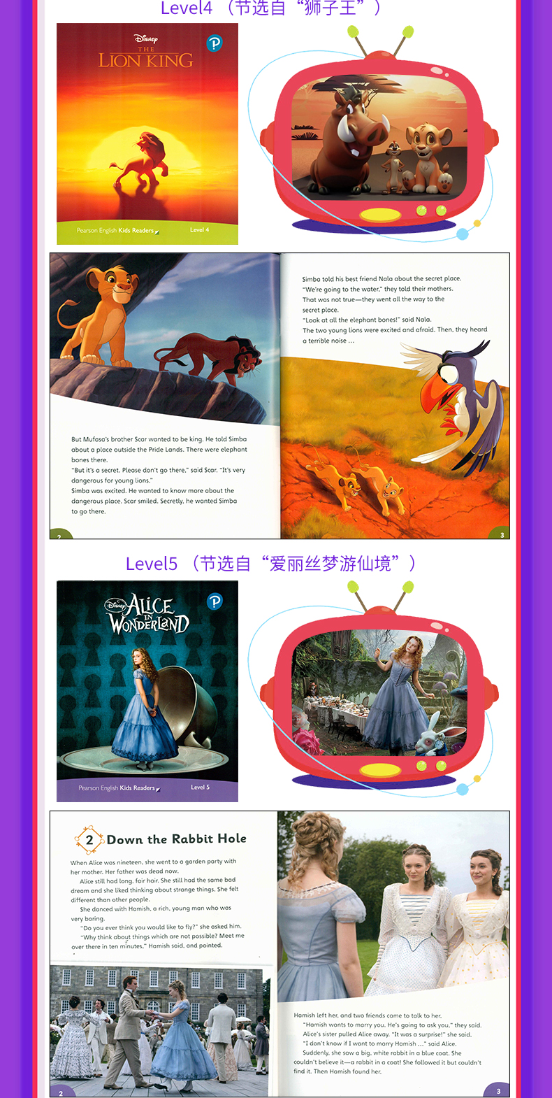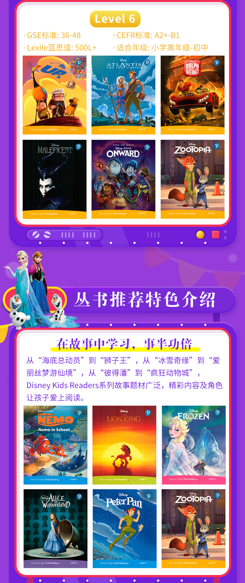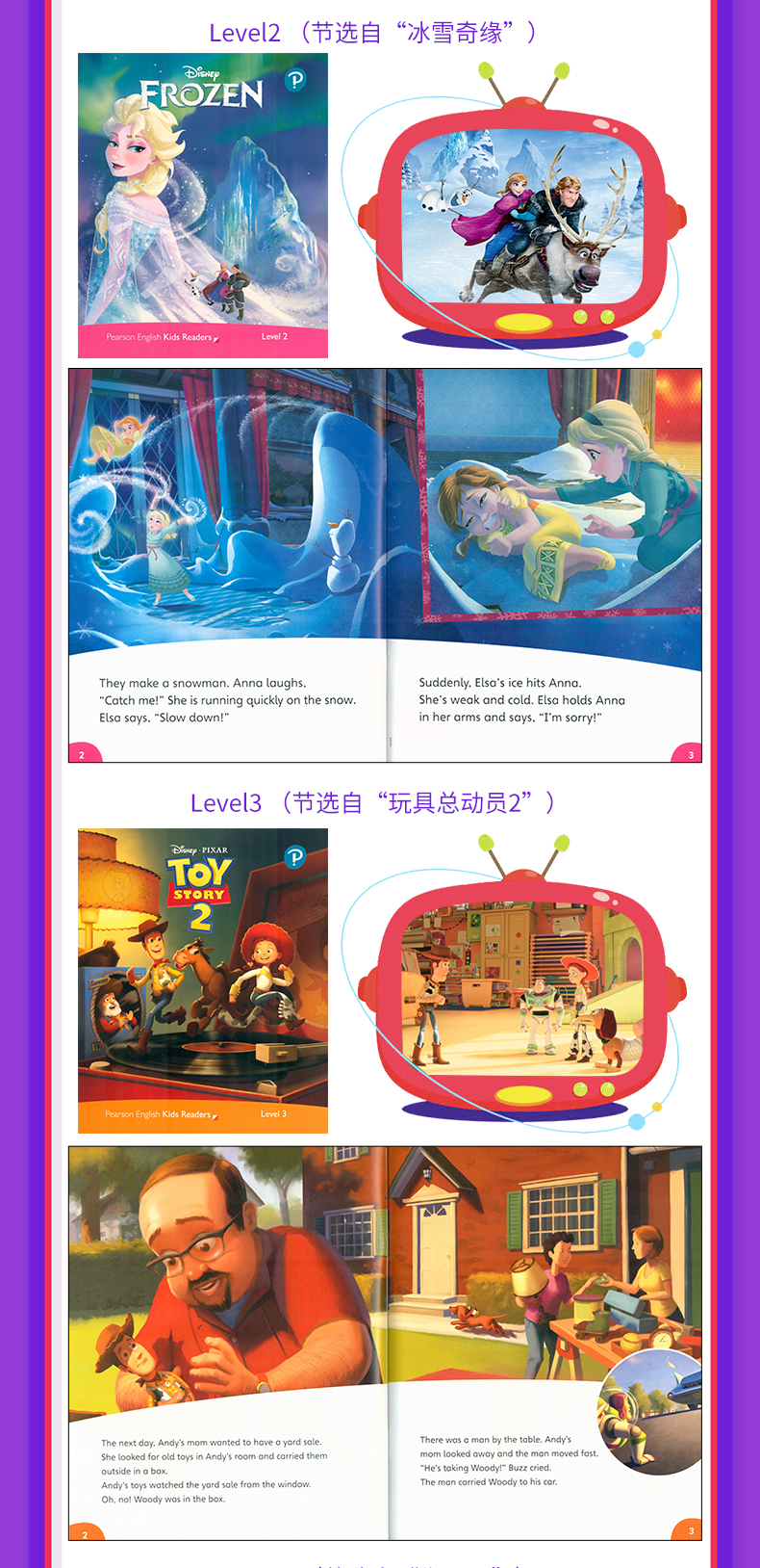 朗文培生迪士尼英文分级绘本读物冰雪奇缘儿童经典故事6-15岁启蒙英语绘本皮克斯动画故事disney kids readers 小学生课外阅读书籍