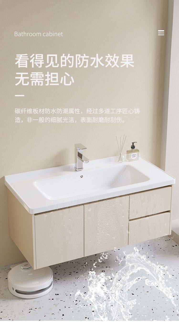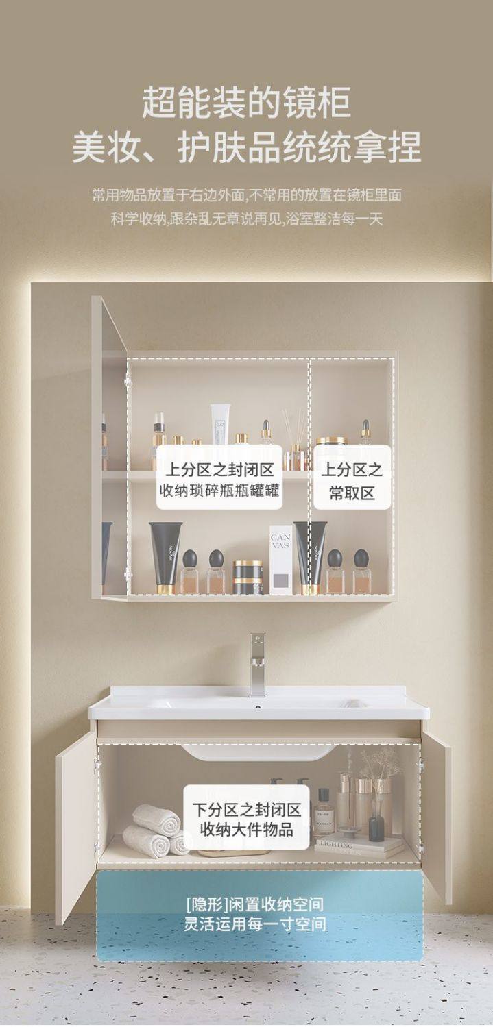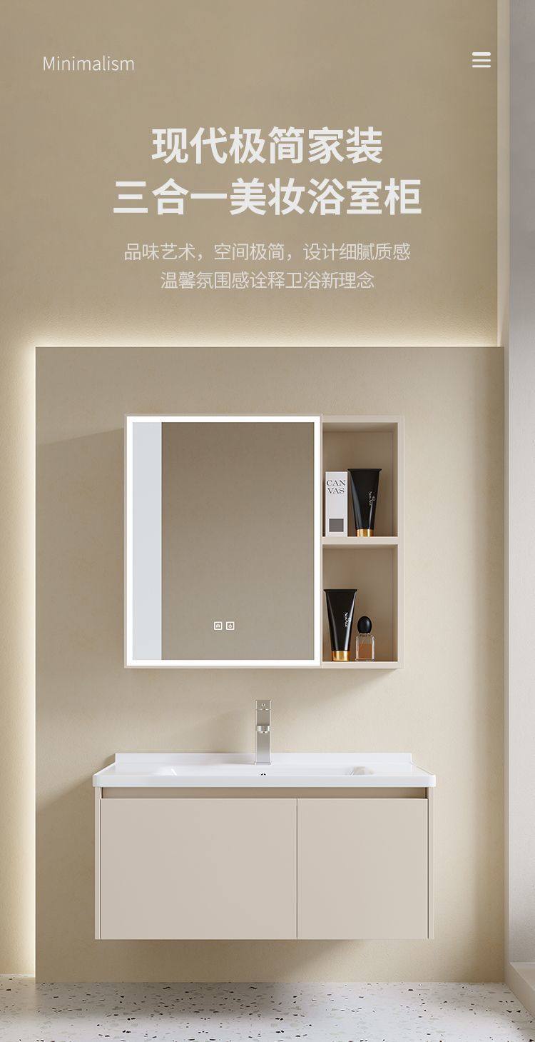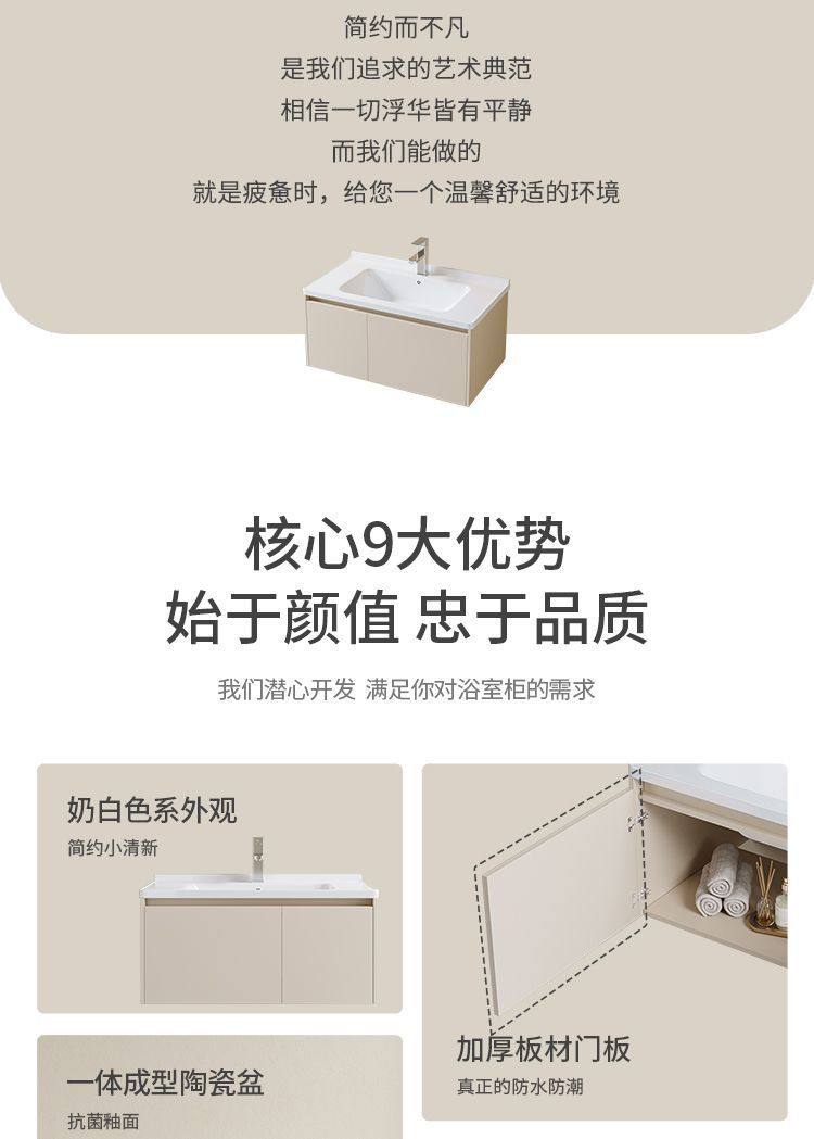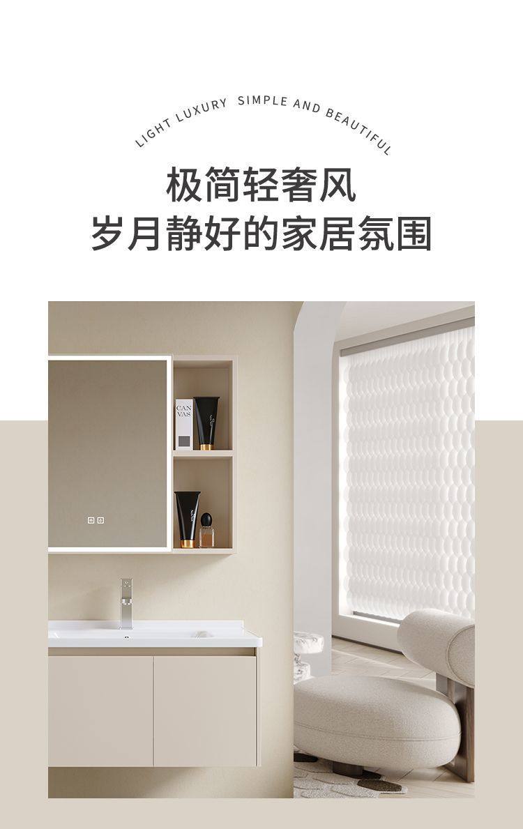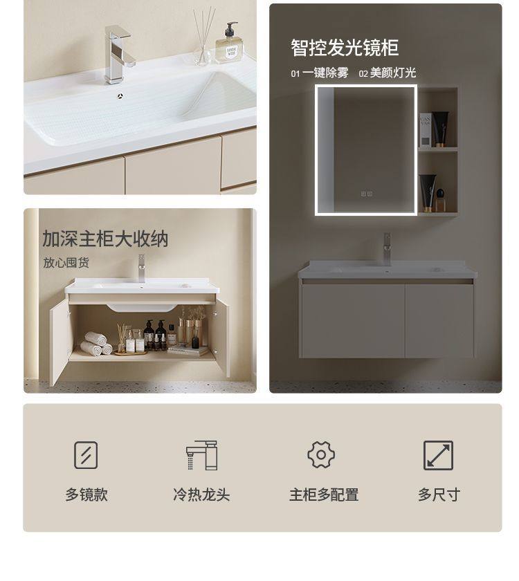 卫生间铝家用浴室柜洗脸池洗漱奶油风挂太空组合智能洗手盆台墙式