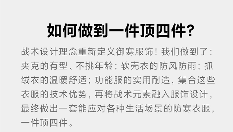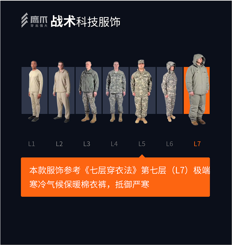 鹰爪,中国功能男装创领品牌,致力于服务中国3亿新中产阶级,着力打造全场景穿着体验创新平台,三十年产业深耕的积淀,以用户的痛点为己任,开创兼具军品与户外装备的功能动态穿着系统。