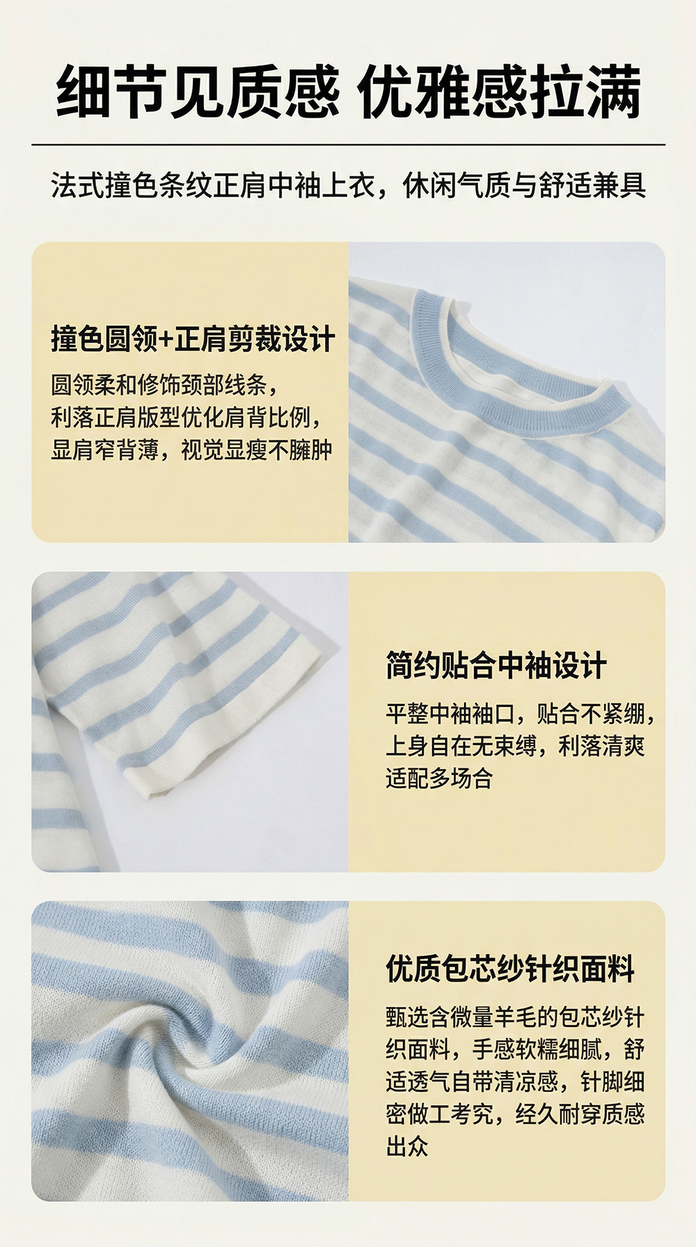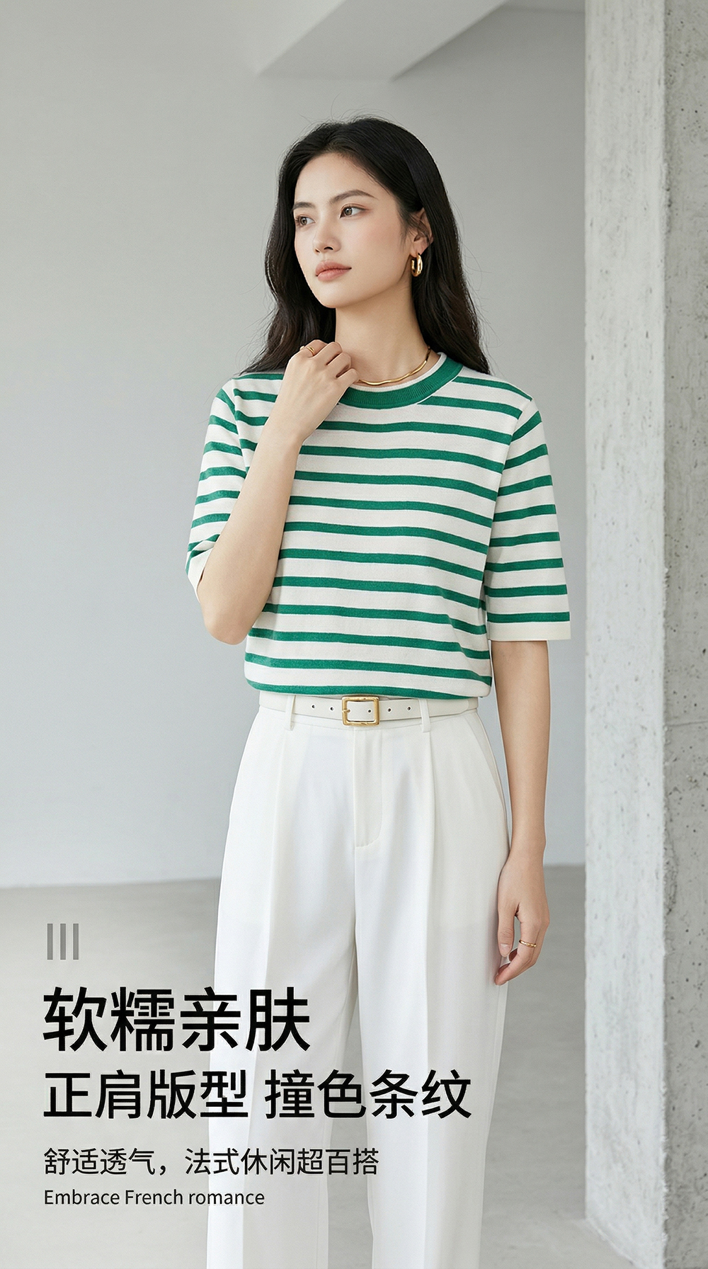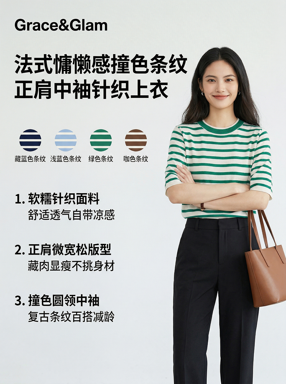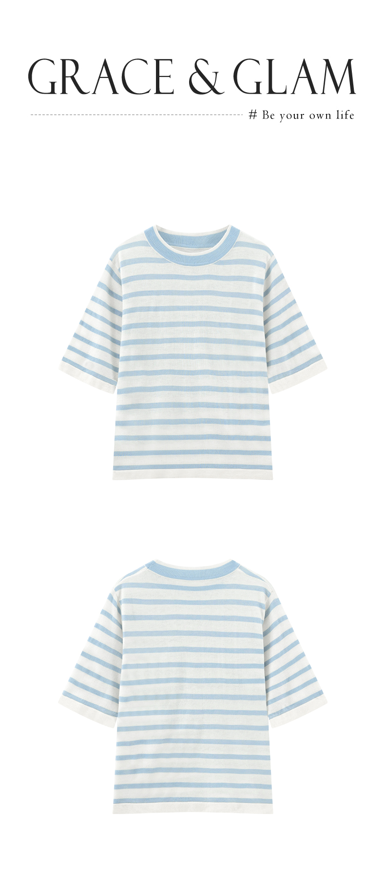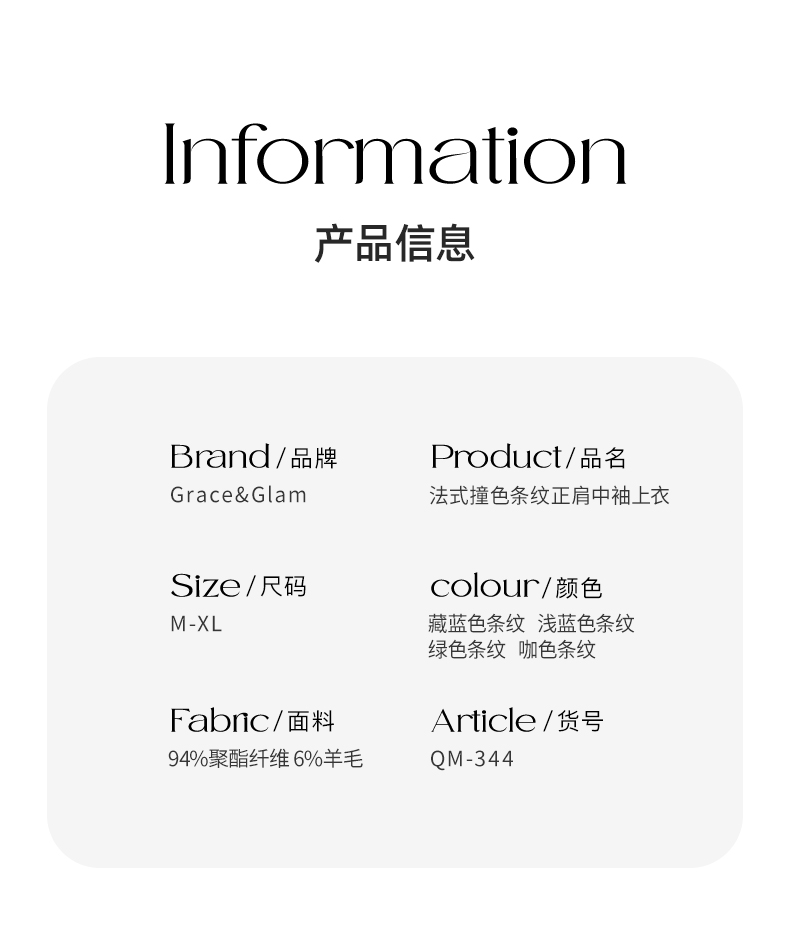 Grace&Glam 法式撞色条纹正肩中袖上衣
