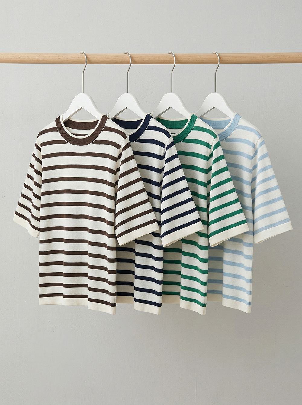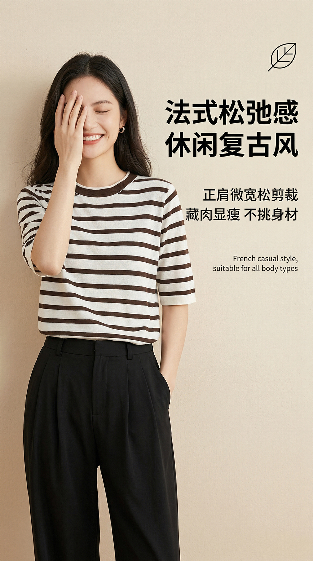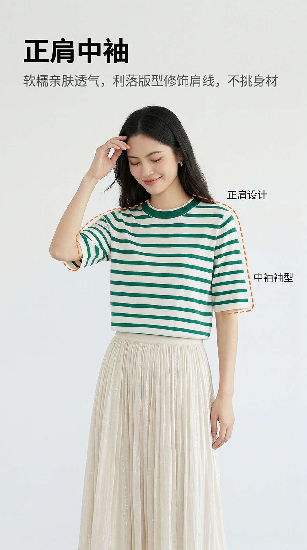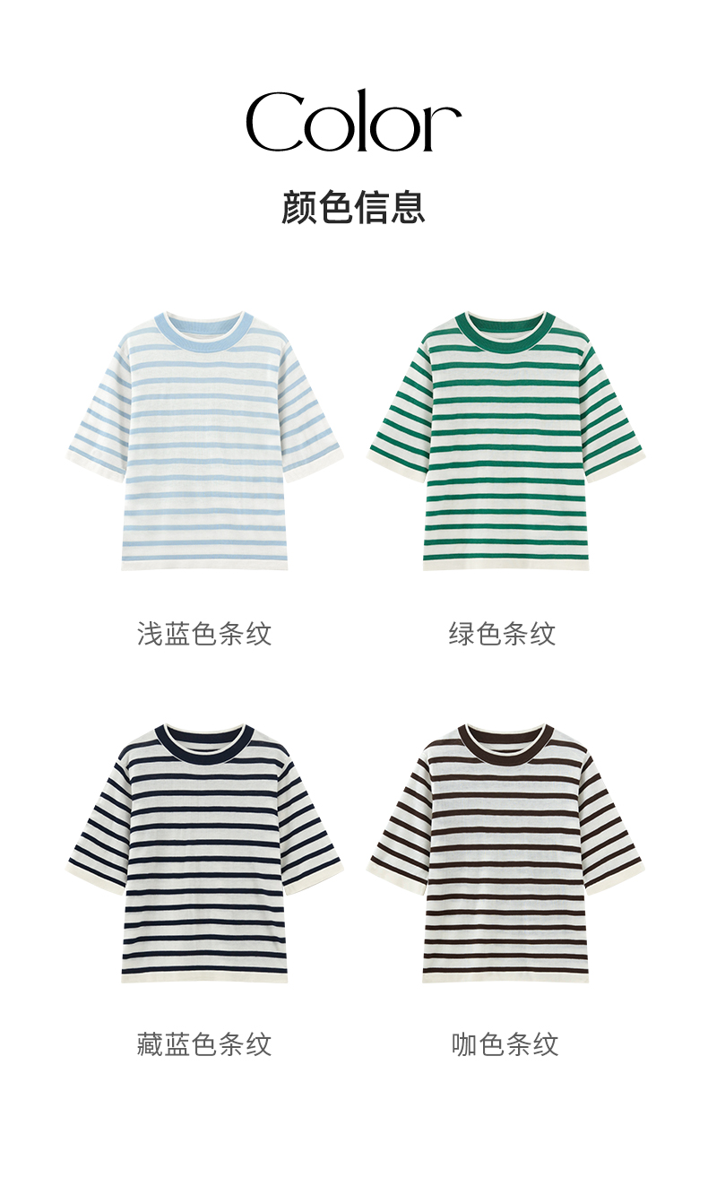 Grace&Glam 法式撞色条纹正肩中袖上衣