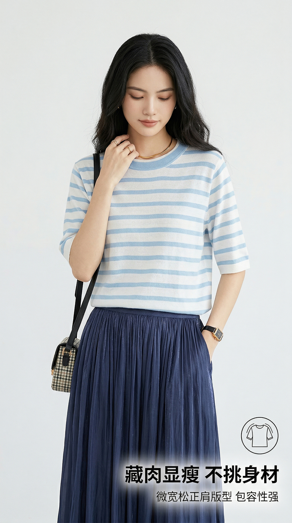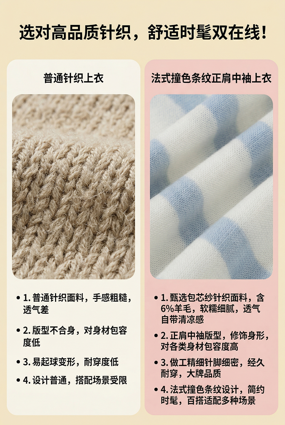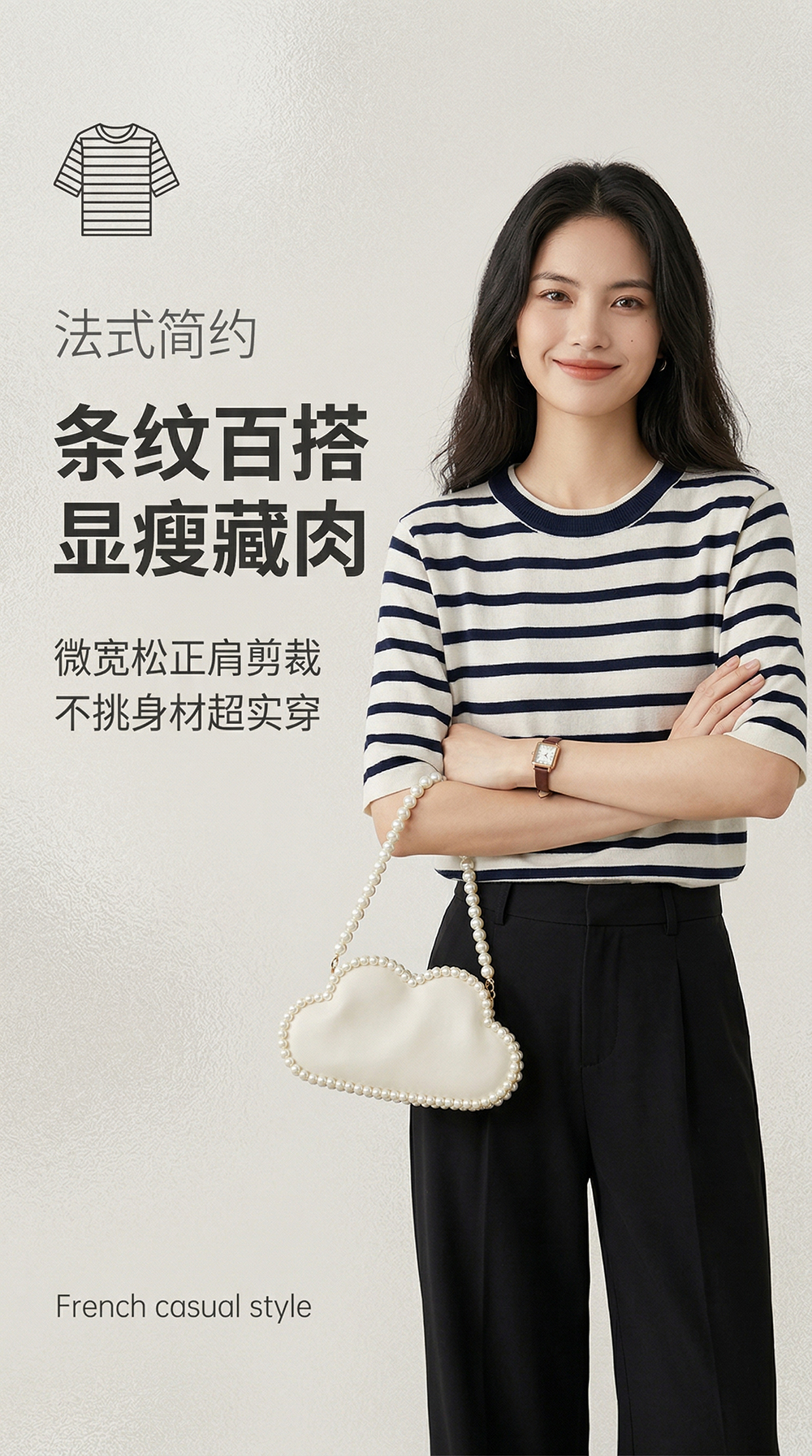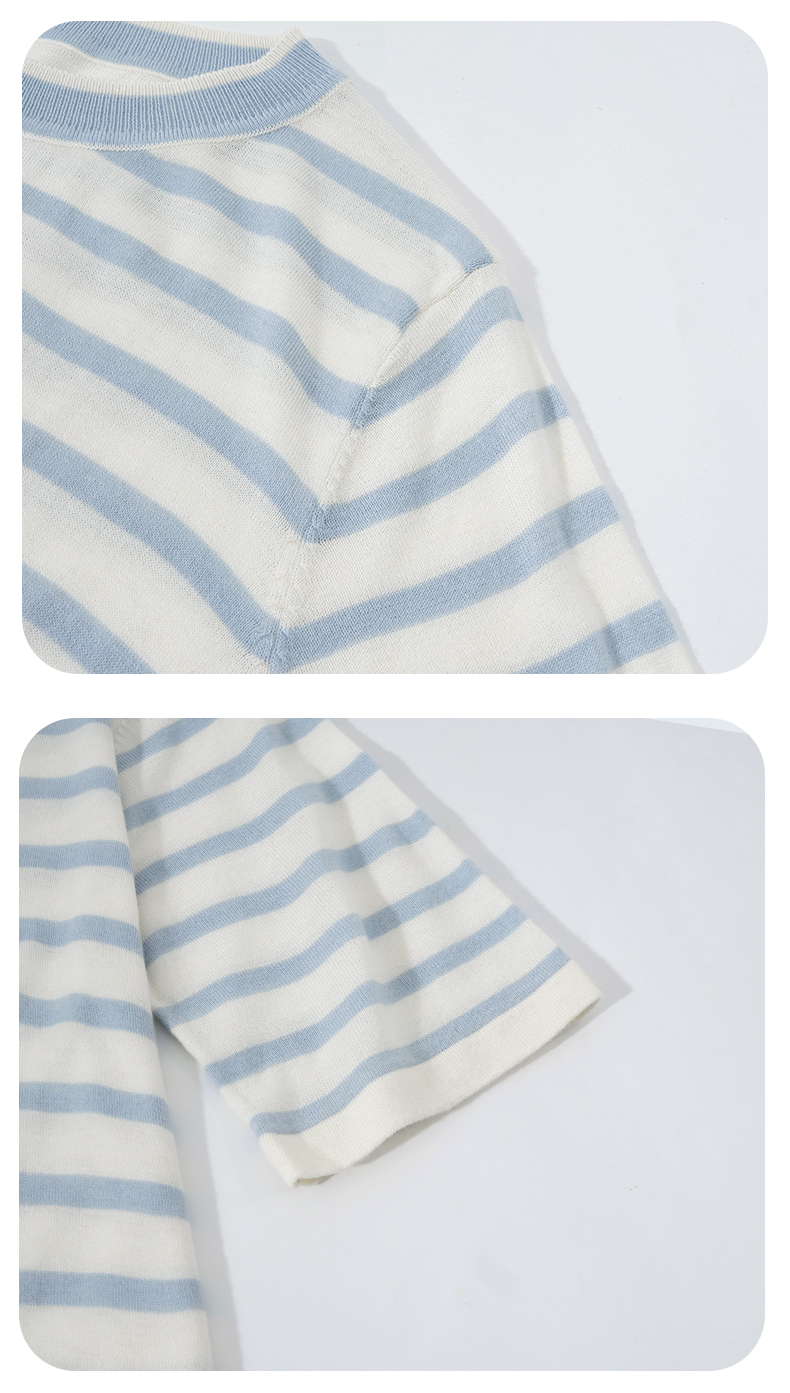 Grace&Glam 法式撞色条纹正肩中袖上衣