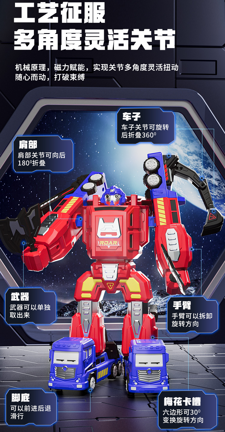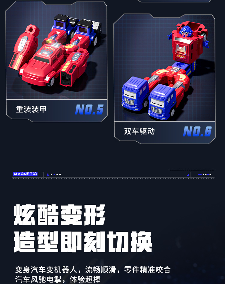 特惠🔥立减30元❗️8合1磁力变形机器 百乐森儿童机器人玩具 磁力百变形金刚小汽车 合体旋转关节擎天柱儿童玩具
