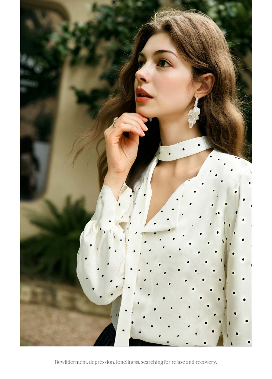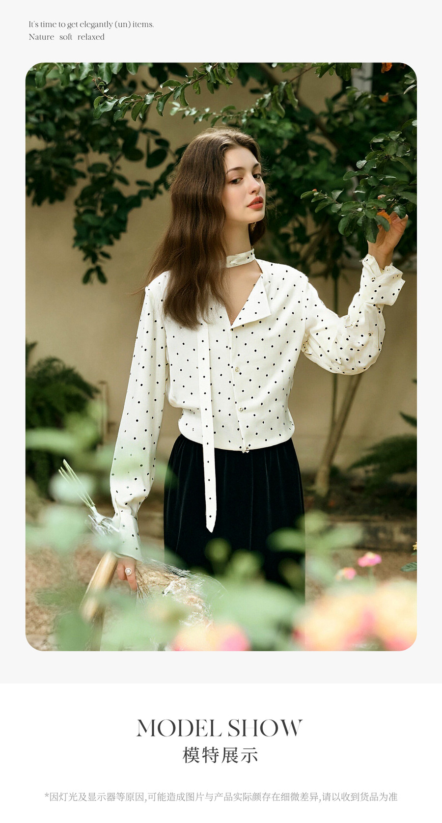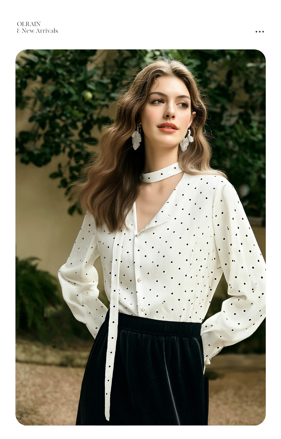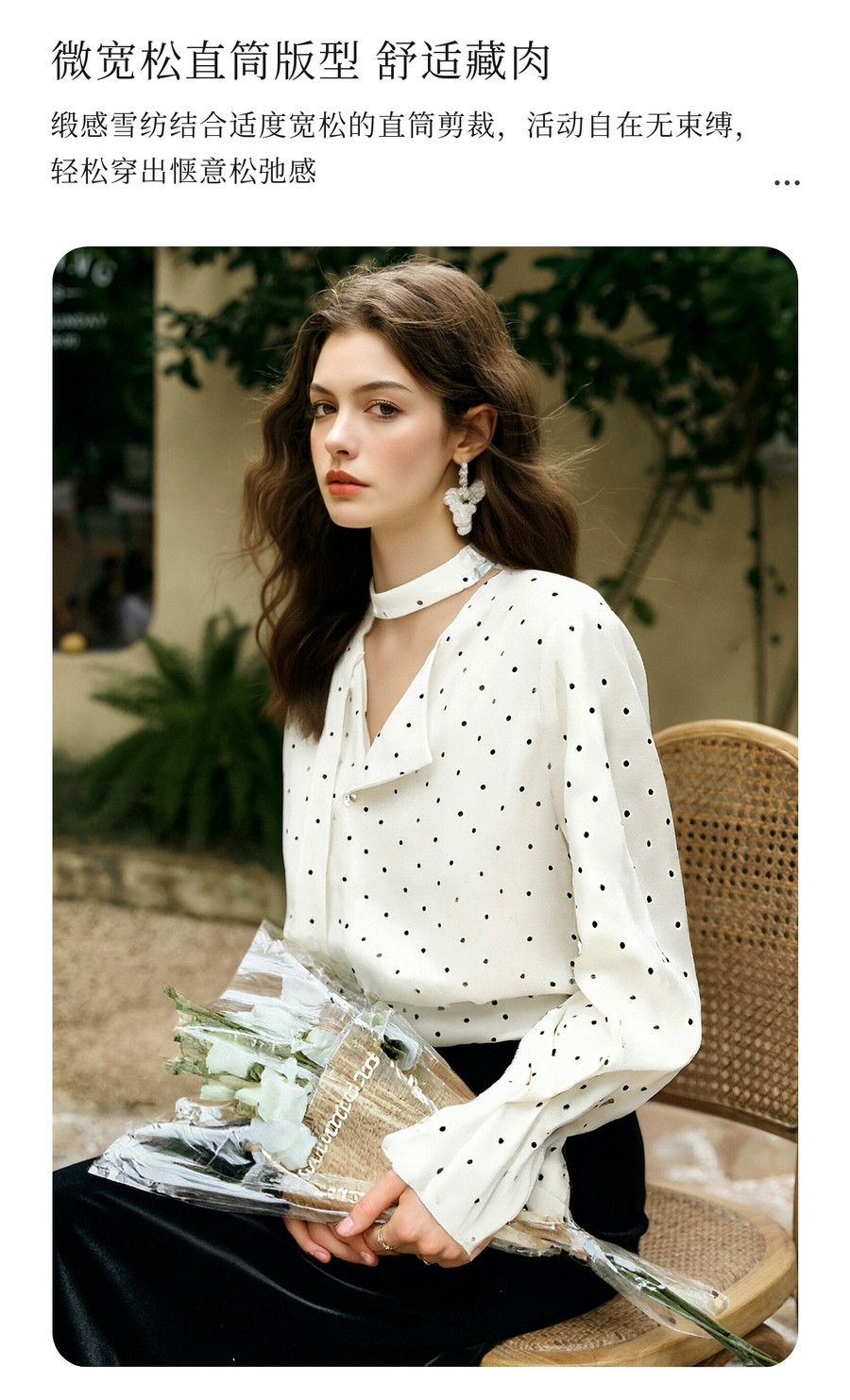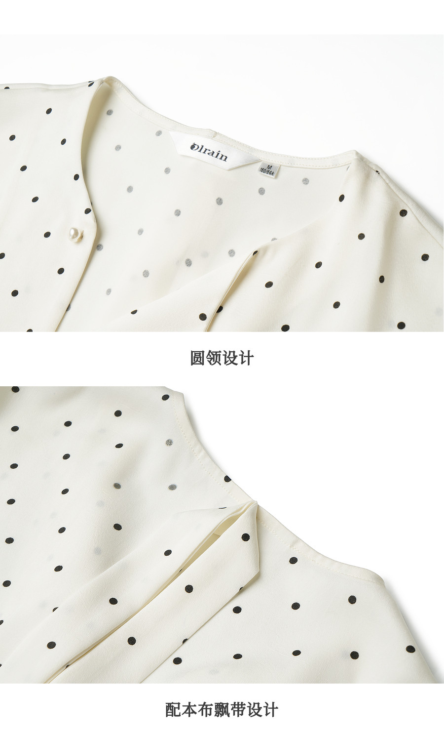 欧芮儿法式浪漫飘带圆领波点雪纺衫女春季2026新款宽松长袖衬衫