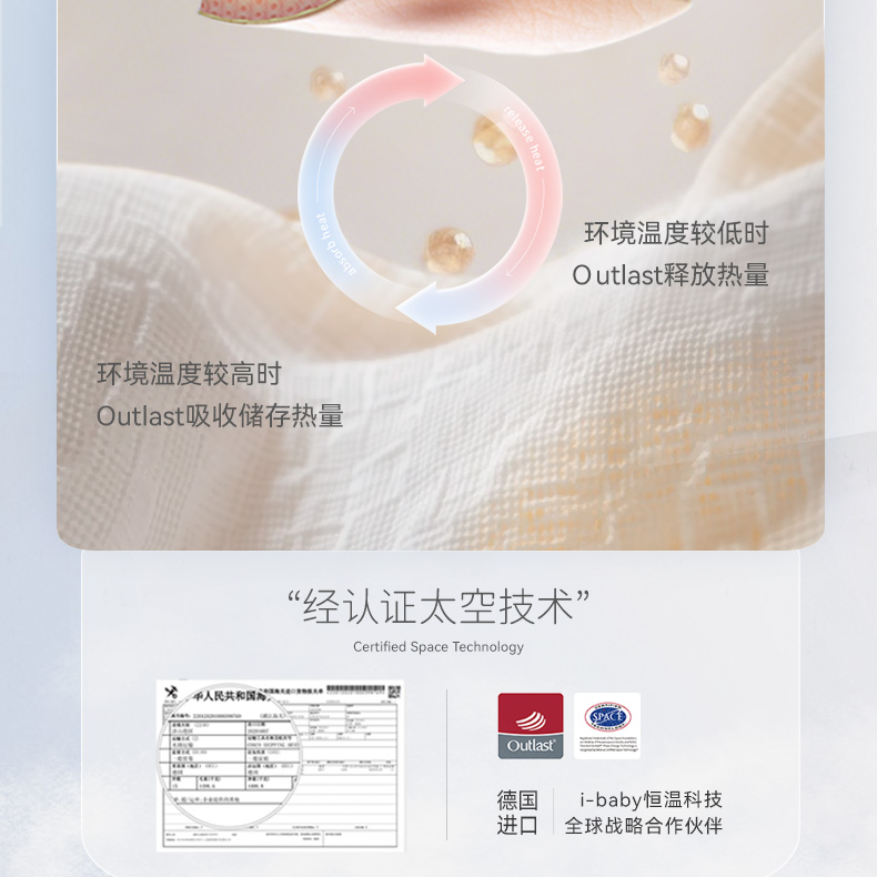 【qhxj】【110*140cm】ibaby×outlast太空科技恒温&奈娃家族联名婴儿被宝宝春夏凉被幼儿园被子夏季空调被四季
