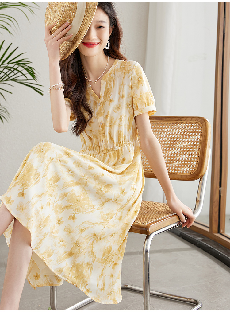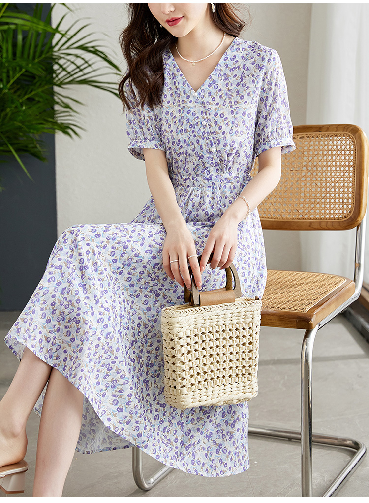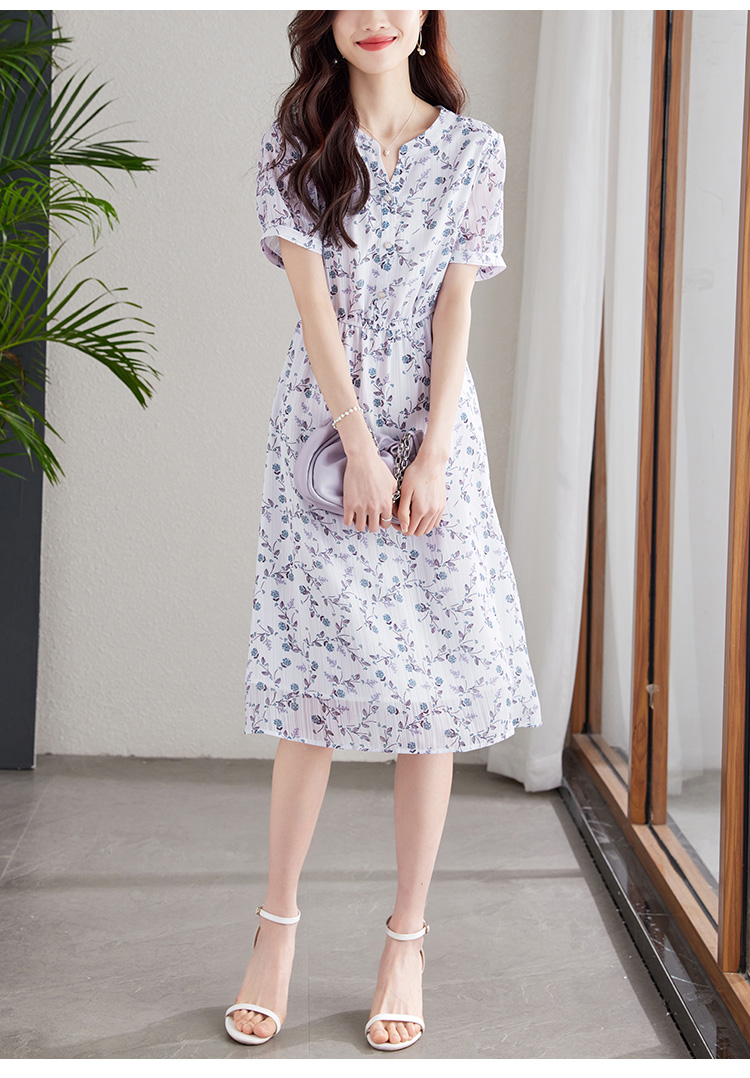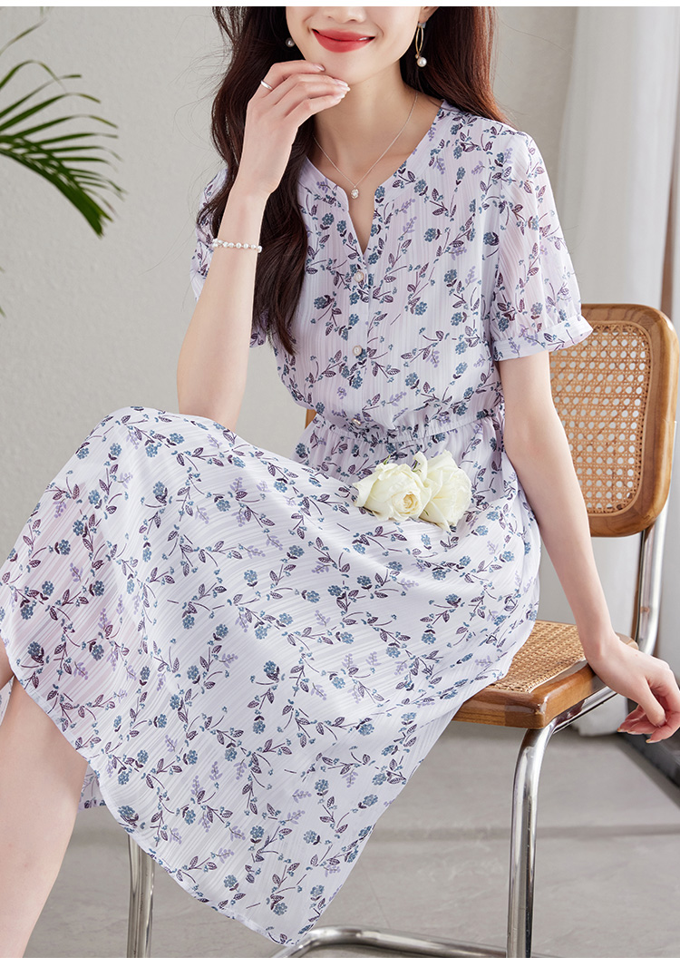 【专属特价】连衣裙新款女气质短袖法式雪纺裙显瘦夏季绝美碎花裙子