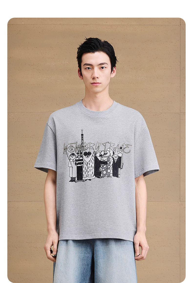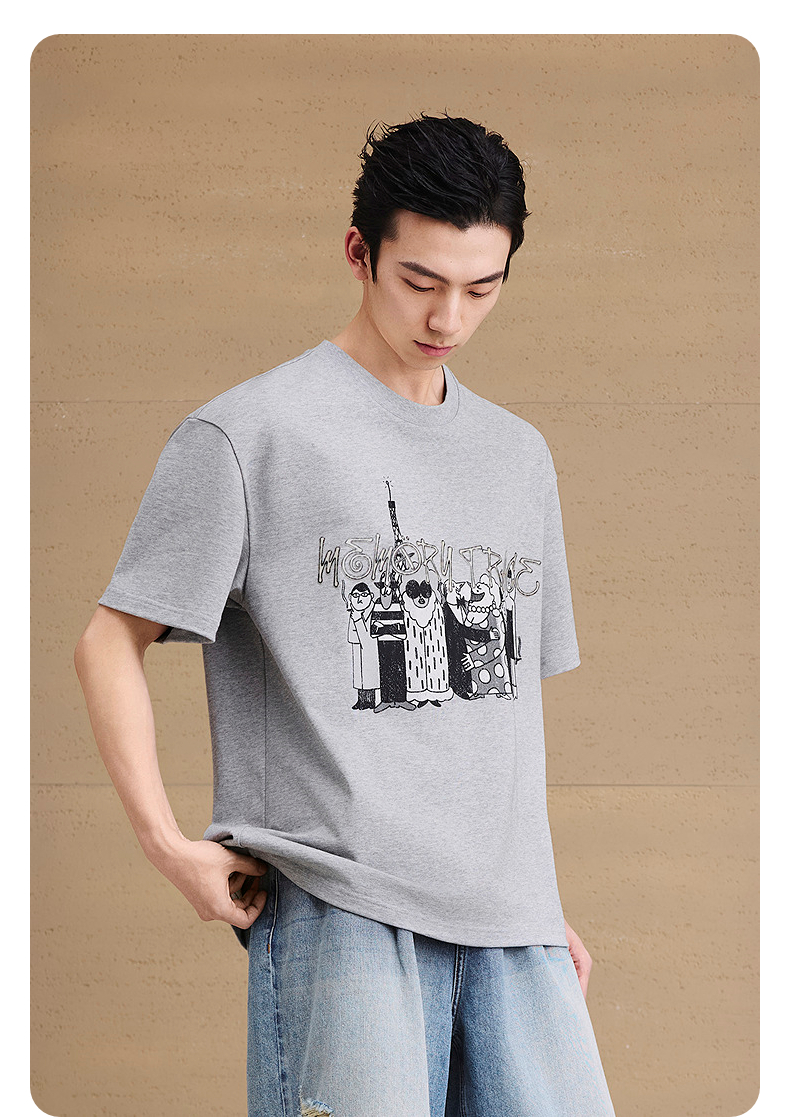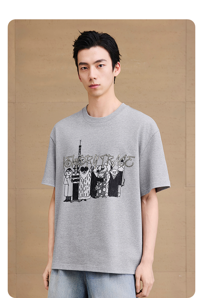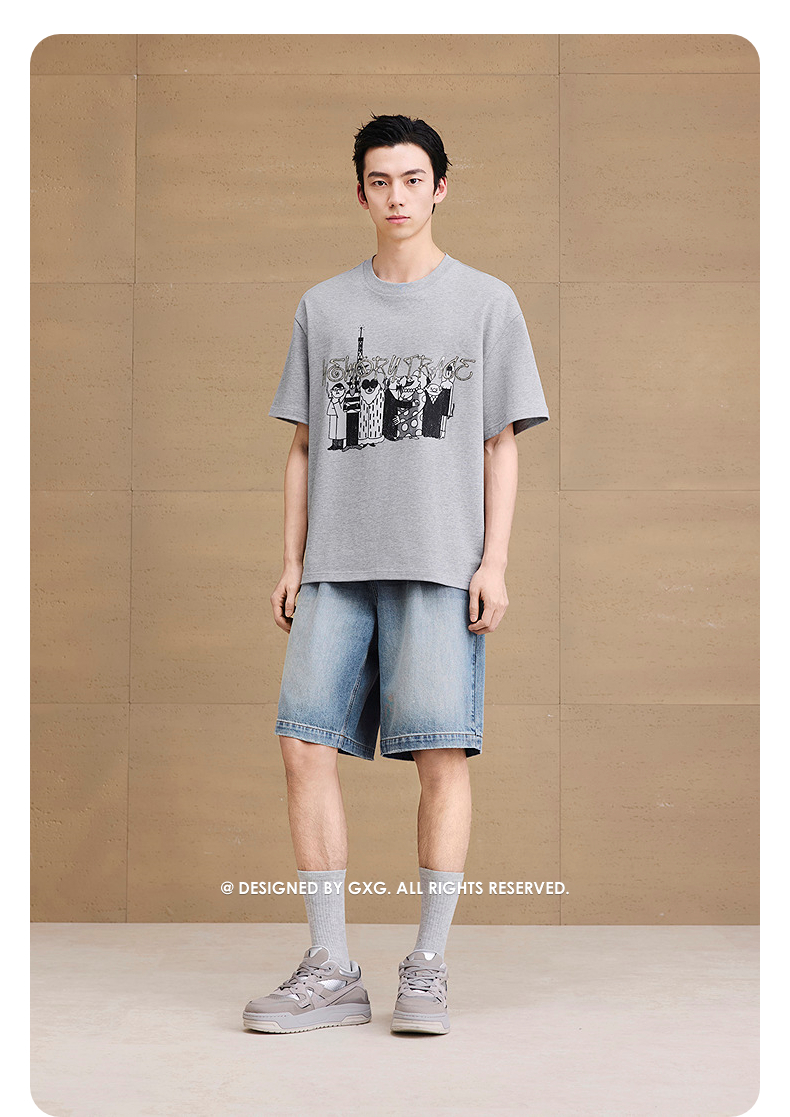 GXG男装 圆领T恤卡通图案印花上衣凉感短袖针织 2025夏季新品