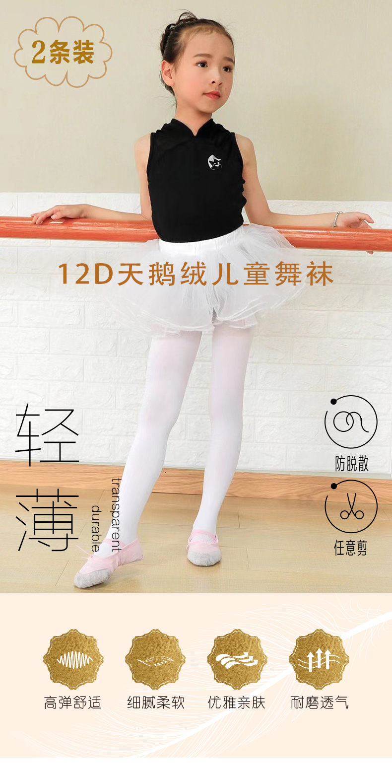 儿童丝袜夏季薄款任意剪女童打底连裤袜白色天鹅绒舞蹈袜(2条装)