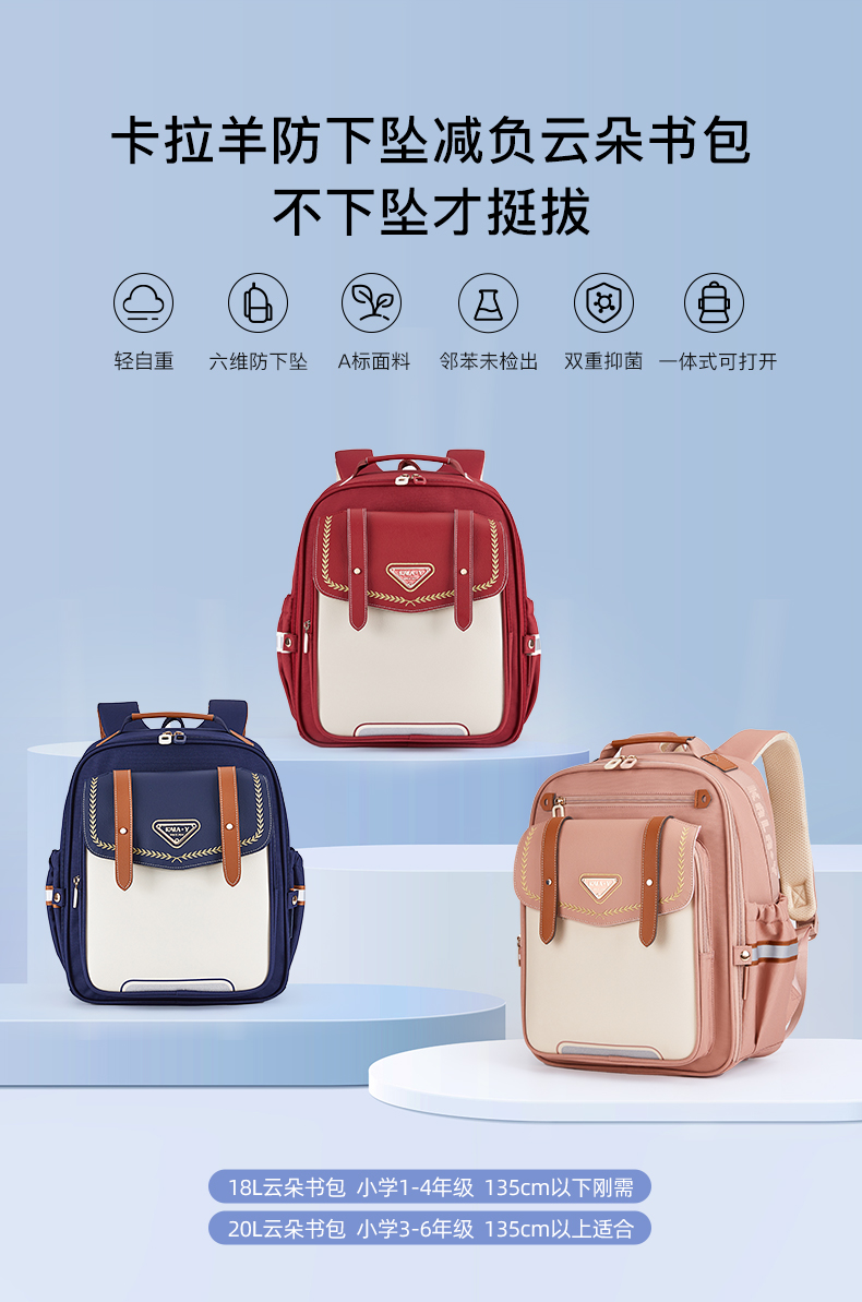 【云朵3.0轻盈版】卡拉羊小学生1-6年级云朵书包18L/20L 伯明翰CX2245+CX2720