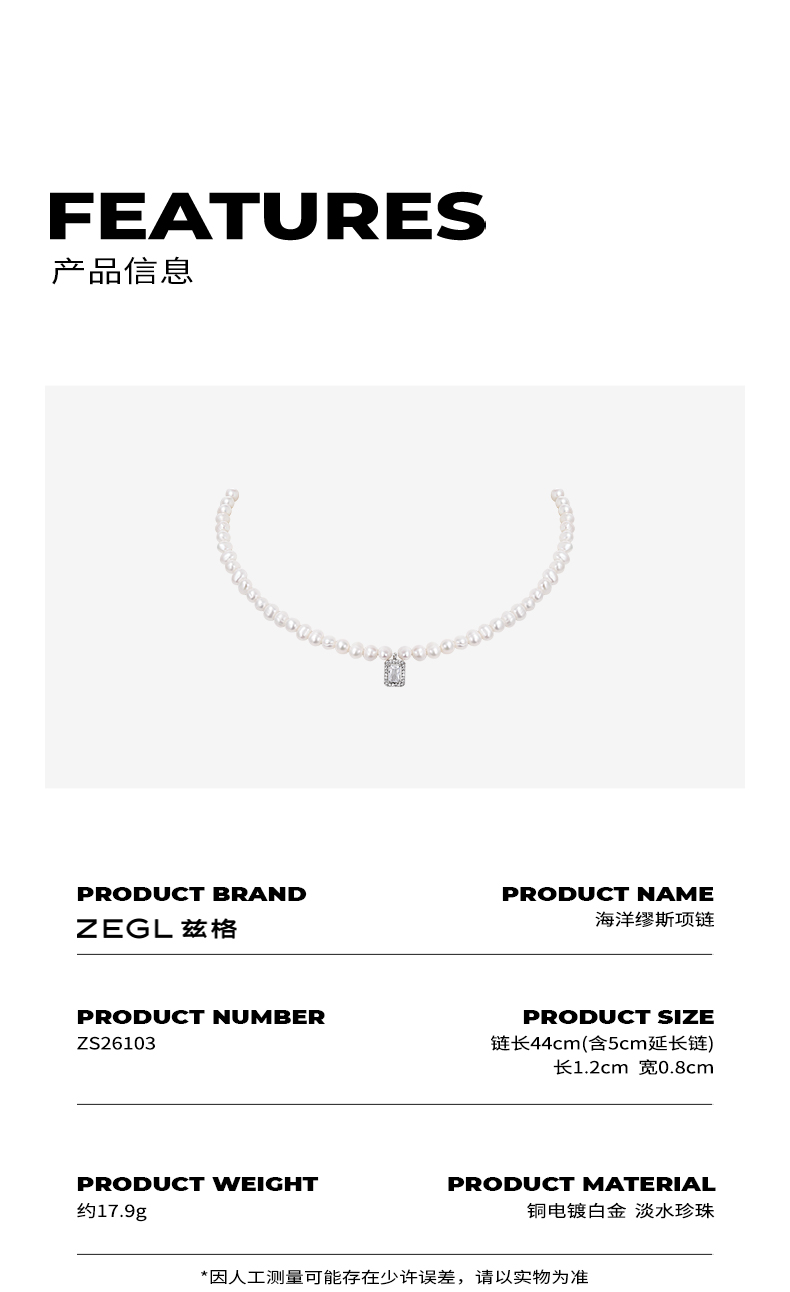 ZEGL高级感法式复古淡水珍珠项链女巴洛克轻奢小众气质吊坠锁骨链