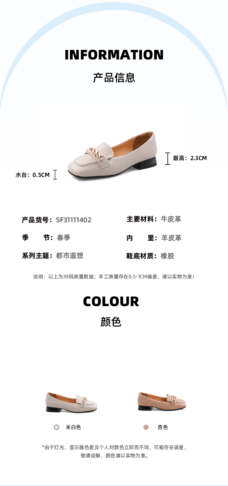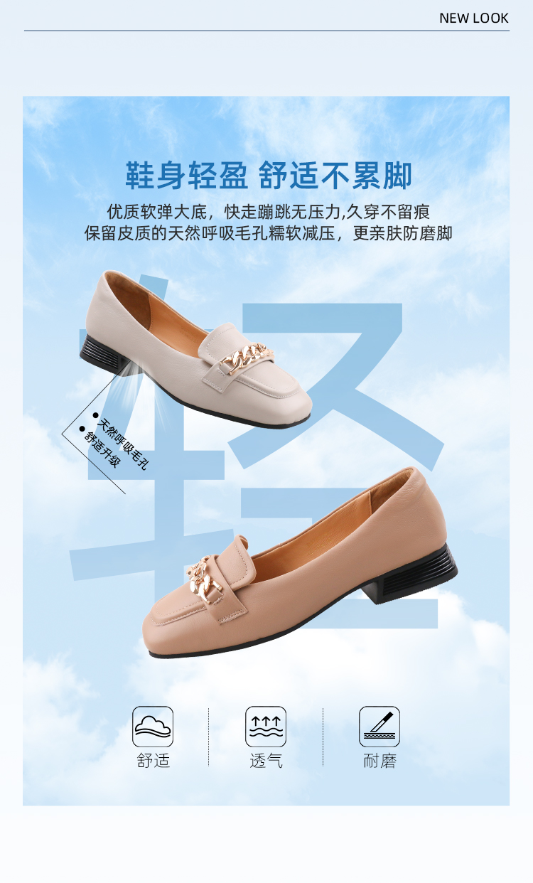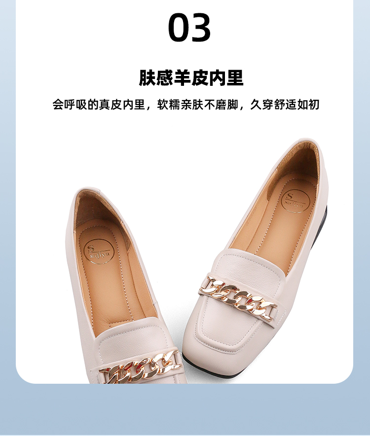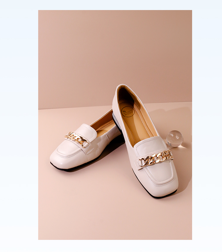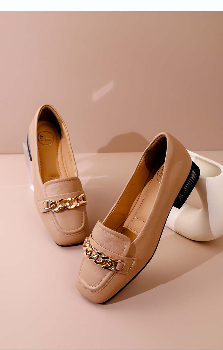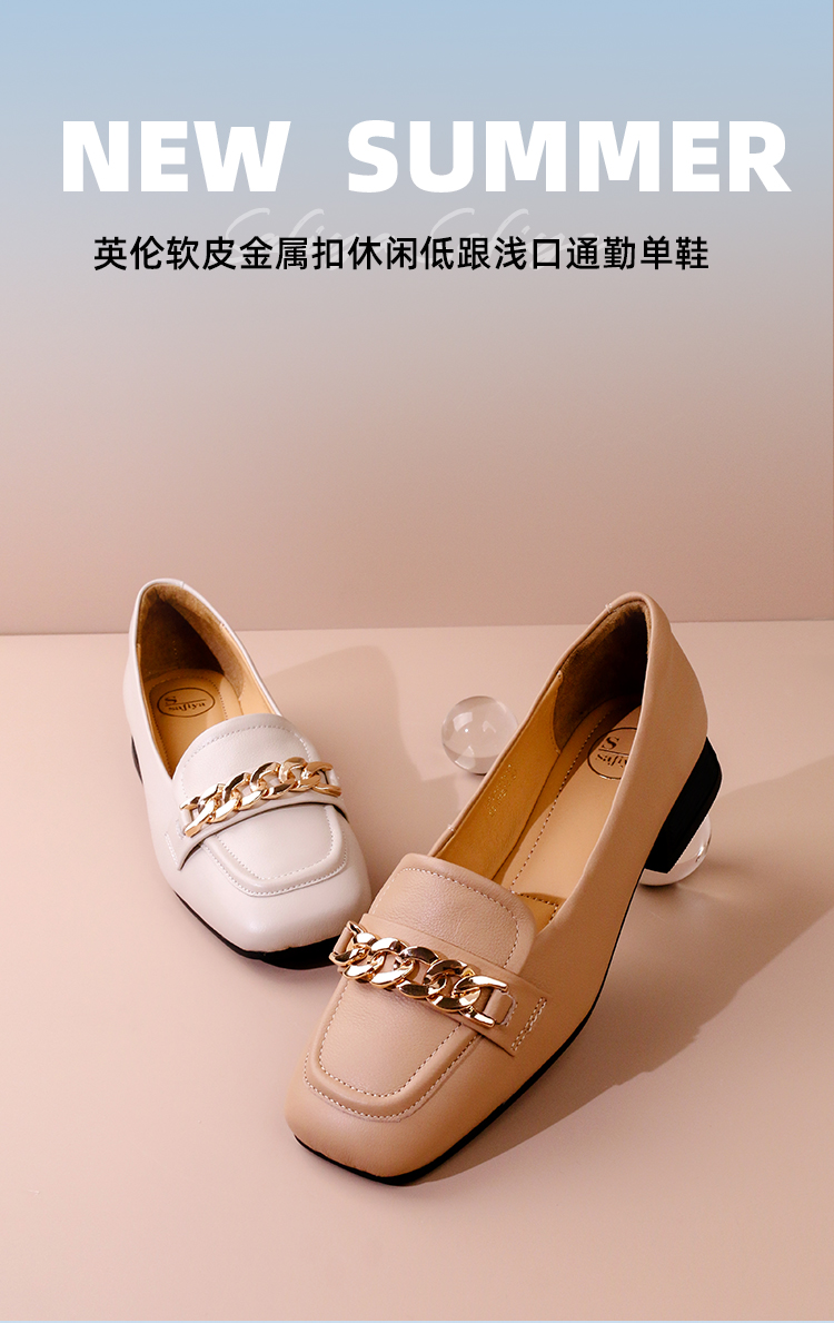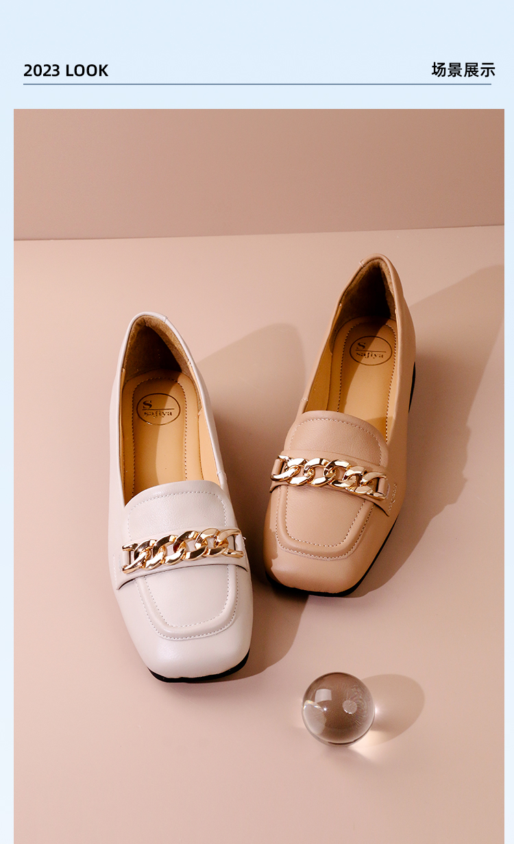 Safiya/索菲娅2023春季新品英伦软皮金属扣休闲低跟浅口通勤单鞋SF31111402