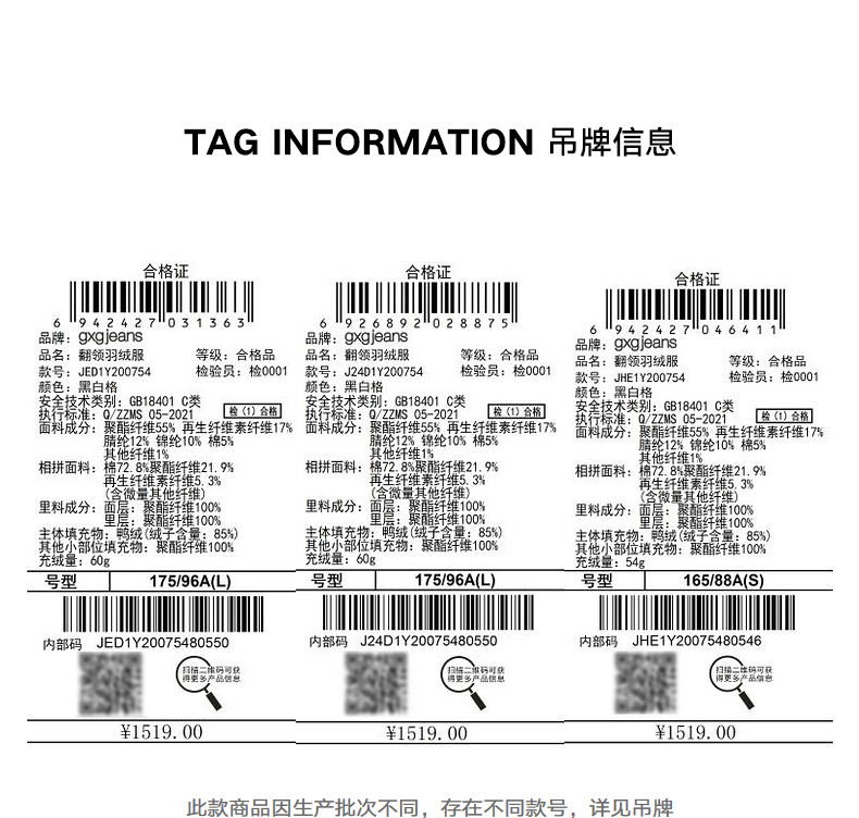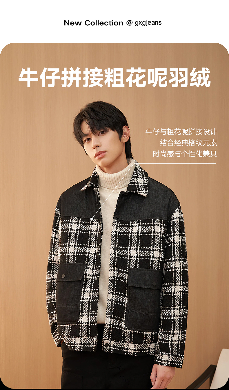 gxg.jeans男装 冬季拼接设计热卖翻领羽绒服JED1Y200754