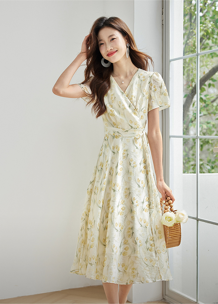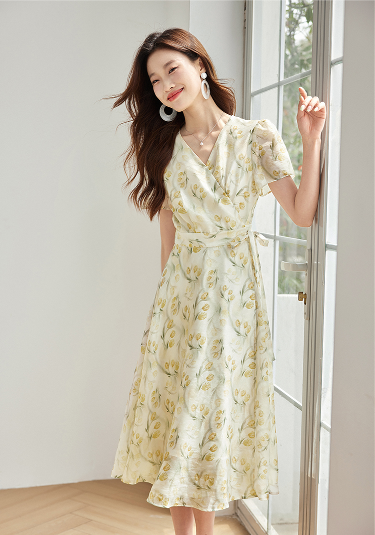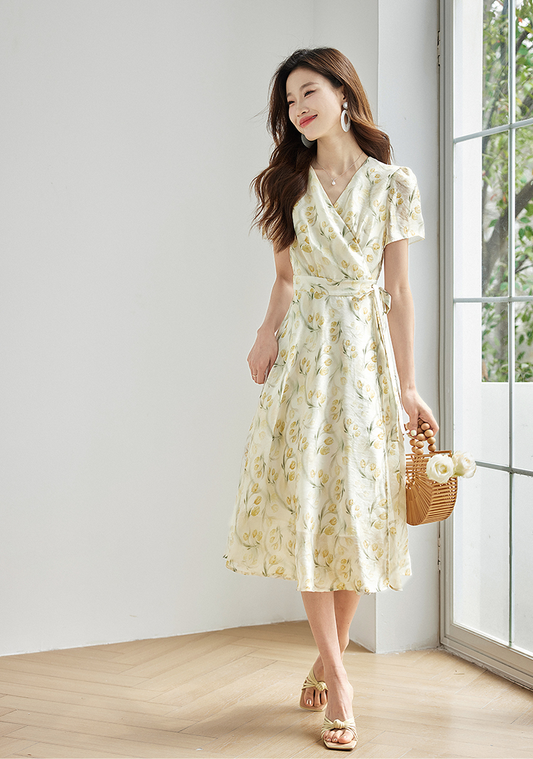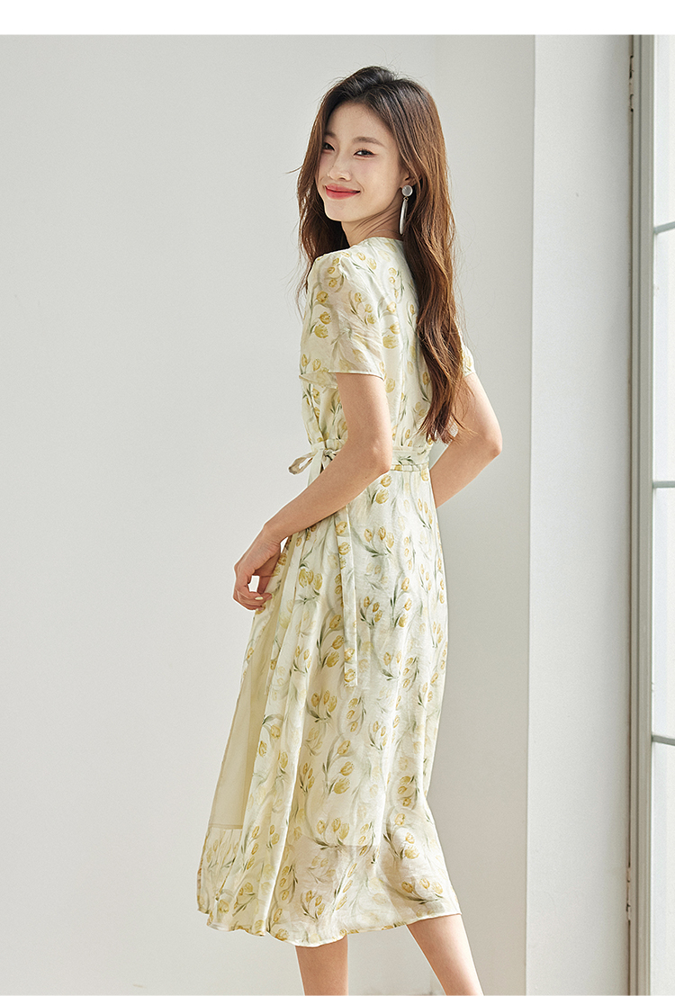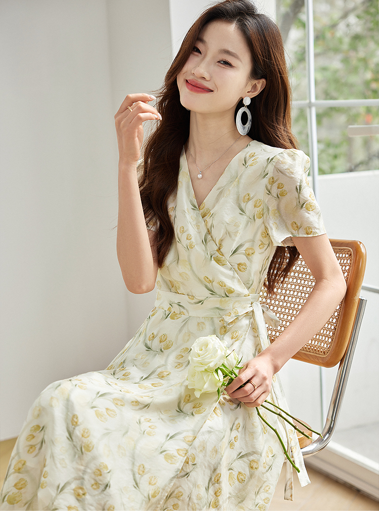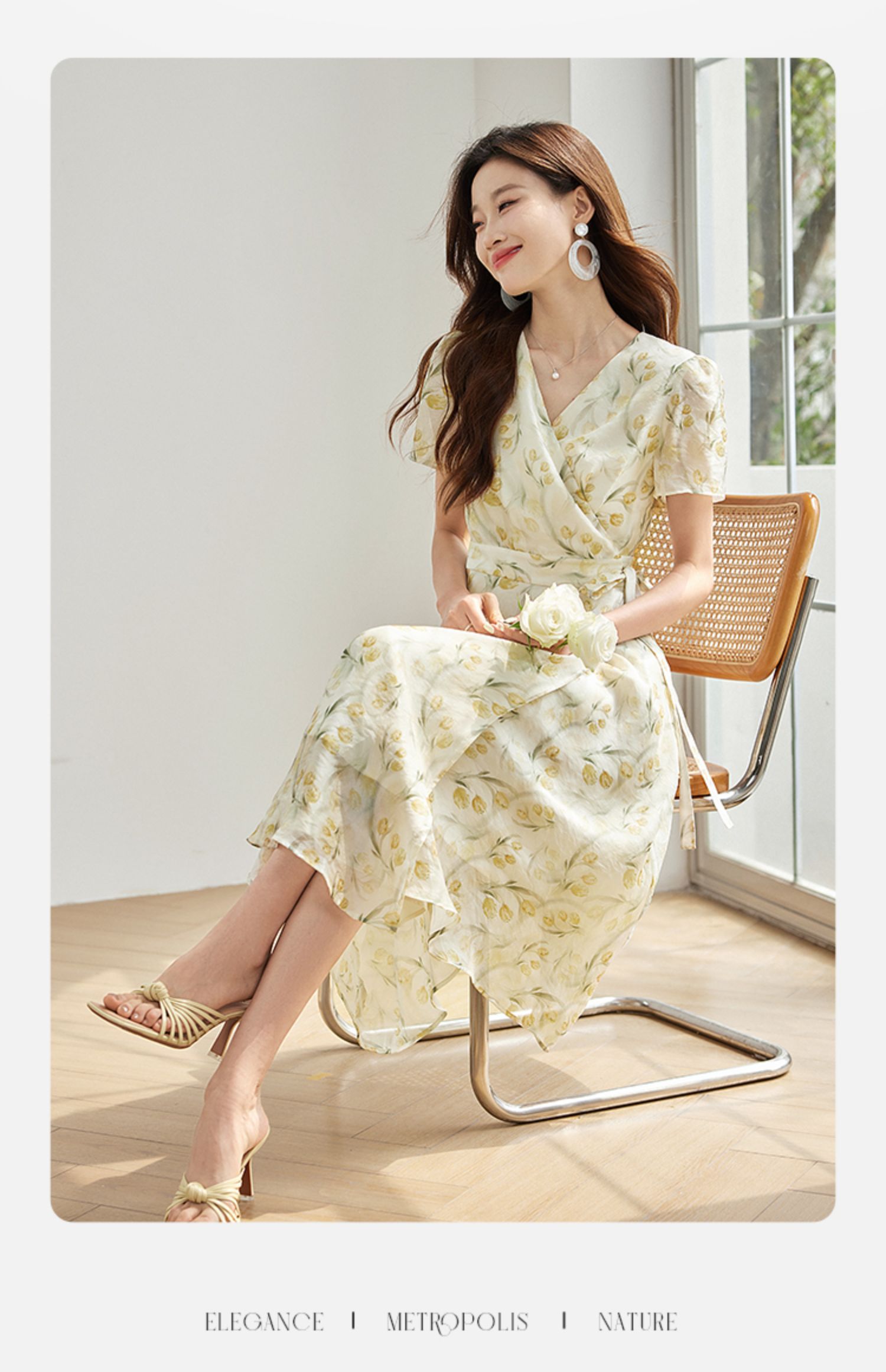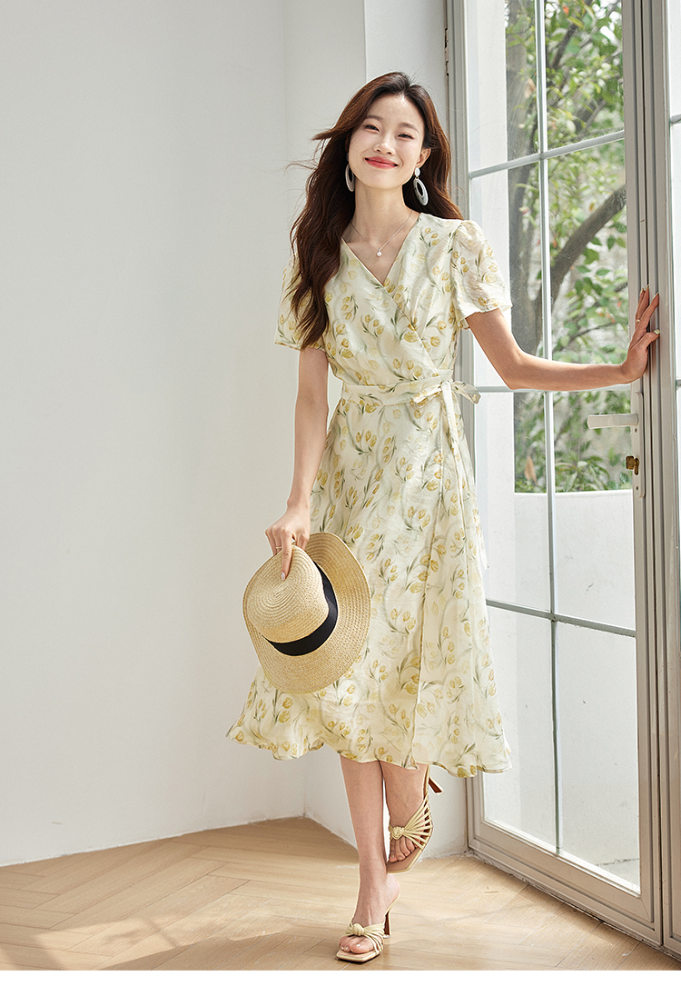 【五折购】熙世界超好看连衣裙夏2025新款高端精致收腰显瘦法式V领碎花裙