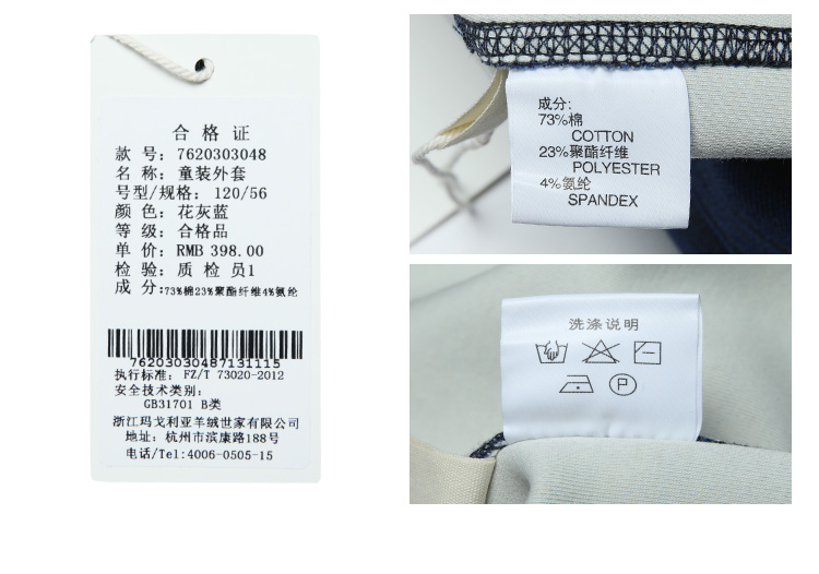 | 材质成分: 棉73% 聚酯纤维23% 聚氨酯弹性纤维(氨纶)4% |