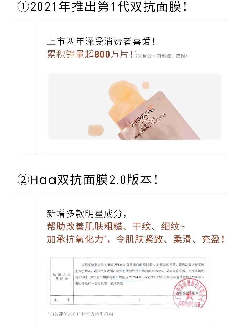 【岁末秒杀】haa虾青素玻色因双抗精华面膜-高阶版-