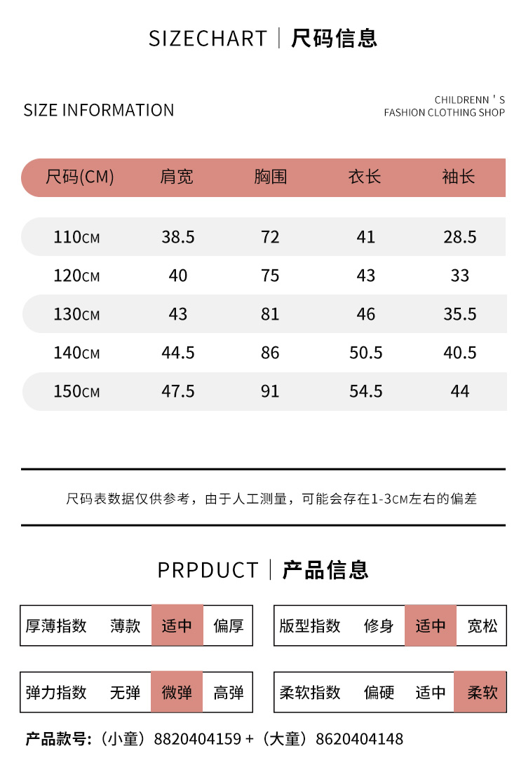 | 参考身高: 110/52 120/56 130/60 140/64 150/68 | 适用季节: 春秋 |