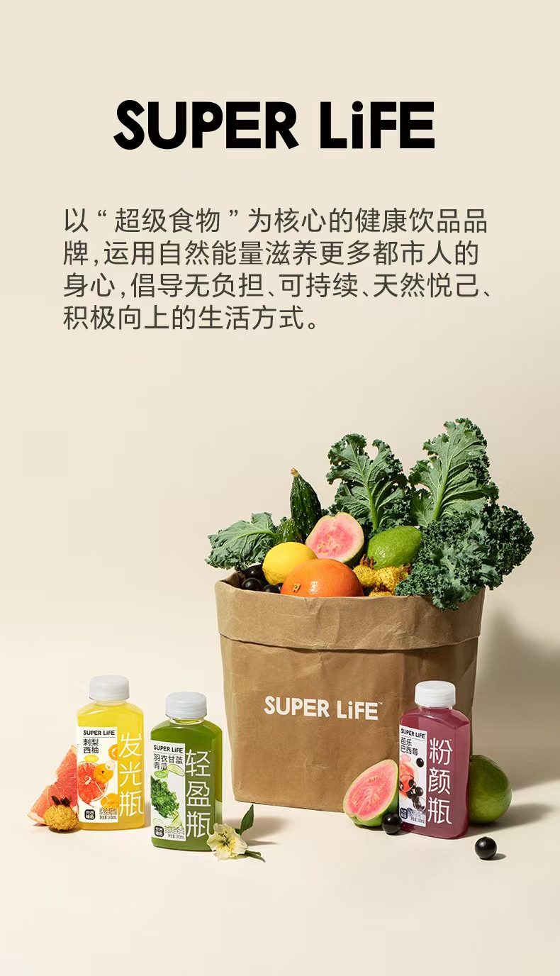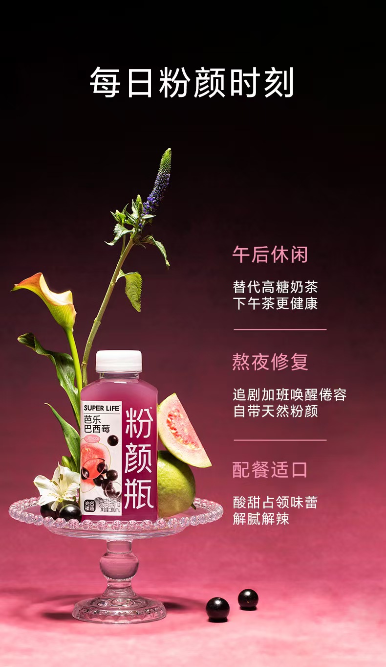 【分仓直发包邮】光合植造 SUPER LIFE粉颜瓶芭乐巴西莓混合果蔬汁饮品310ml*8瓶/盒