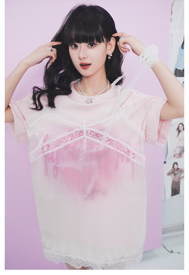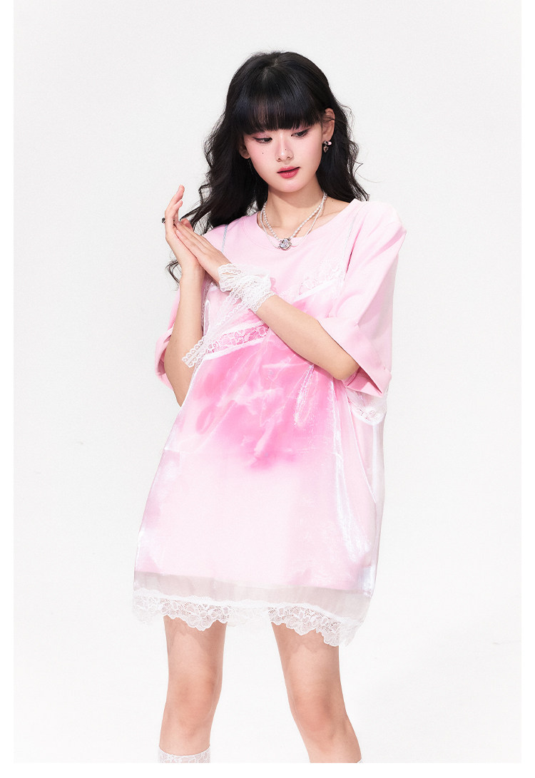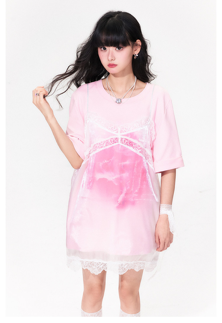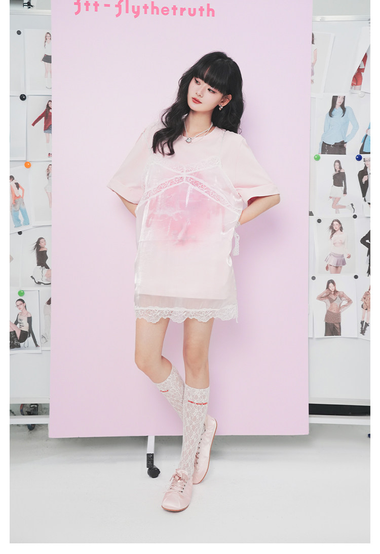 FTT FlyTheTruth『野糖织理』 法式蕾丝薄纱吊带裙女夏罩衫裙叠穿