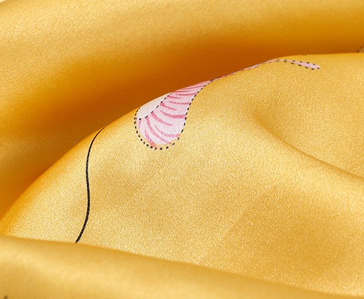 取自宋代词牌《满庭芳》,苏轼词有“江南好,千钟美酒,一曲满庭芳”句,晓色云开,赵粉,魏紫与姚黄竞芳菲,漫步庭院,顿觉春随人意的舒畅。繁花缀锦,彩蝶穿花,春光一派明媚,而春风过处,风摇翠竹,新绿溅溅,让人流连忘返,忘却归路。 此款印花图案,着色清雅,花卉姿态自然,强调了仿手绣的轻松笔触。