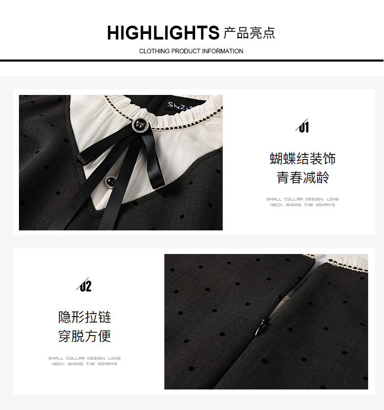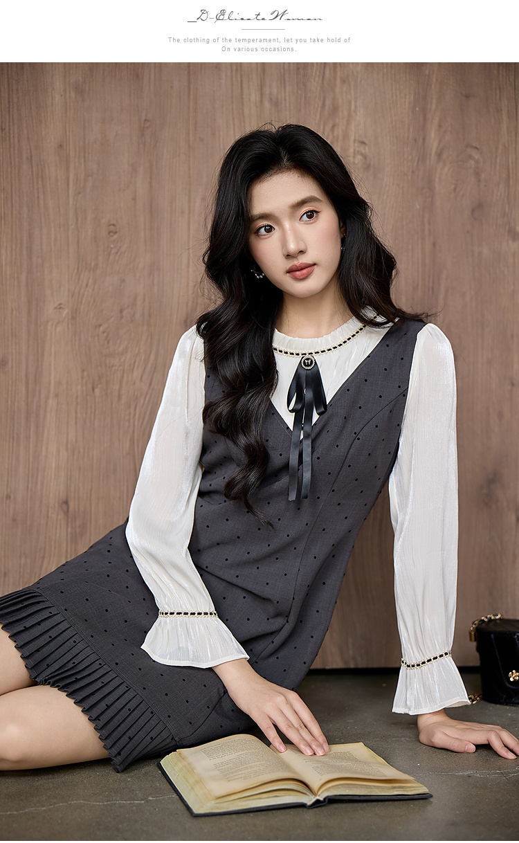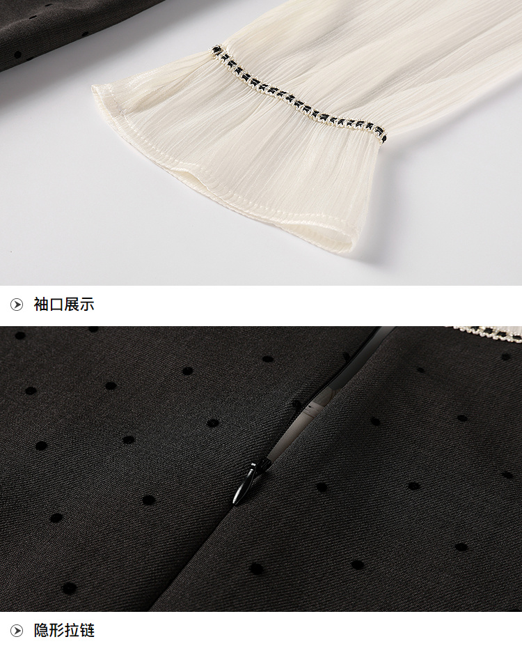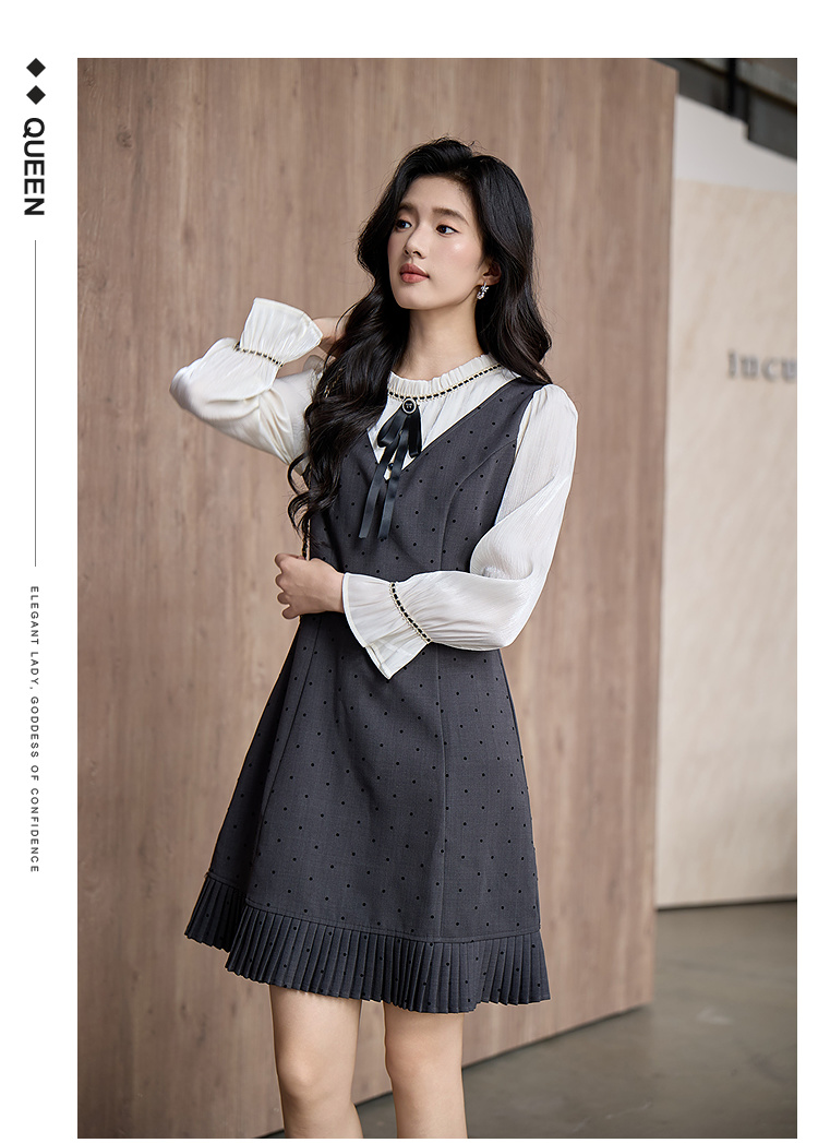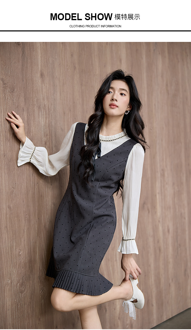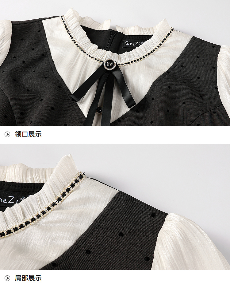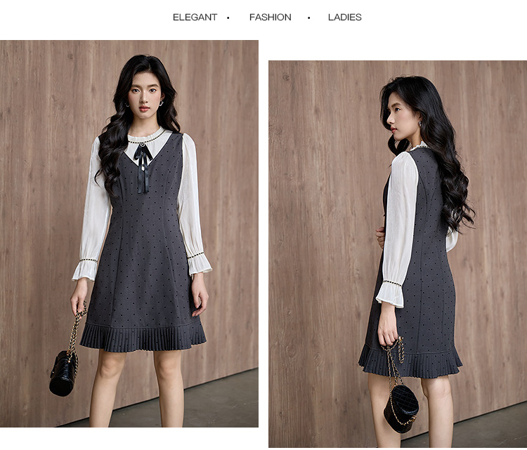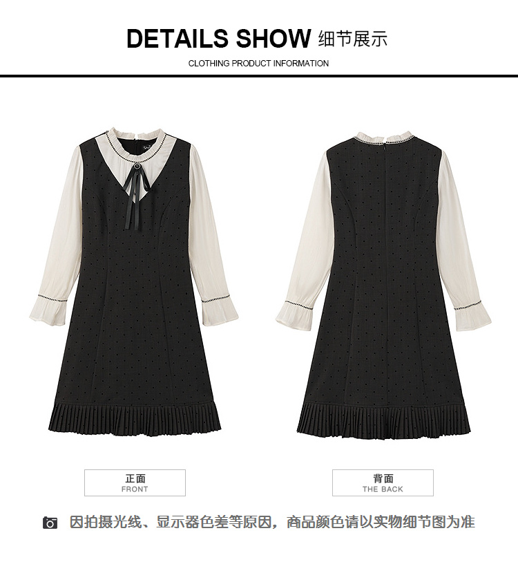 奢姿大码女装2025秋季胖妹妹时尚波点撞色拼接设计百褶裙摆连衣裙9953853702