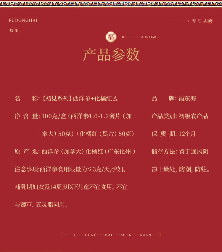 【分仓直发包邮】福东海双拼礼盒100克(西洋参1.0-1.2薄片(加拿大)50克)+化橘红(黑片)50克)/盒