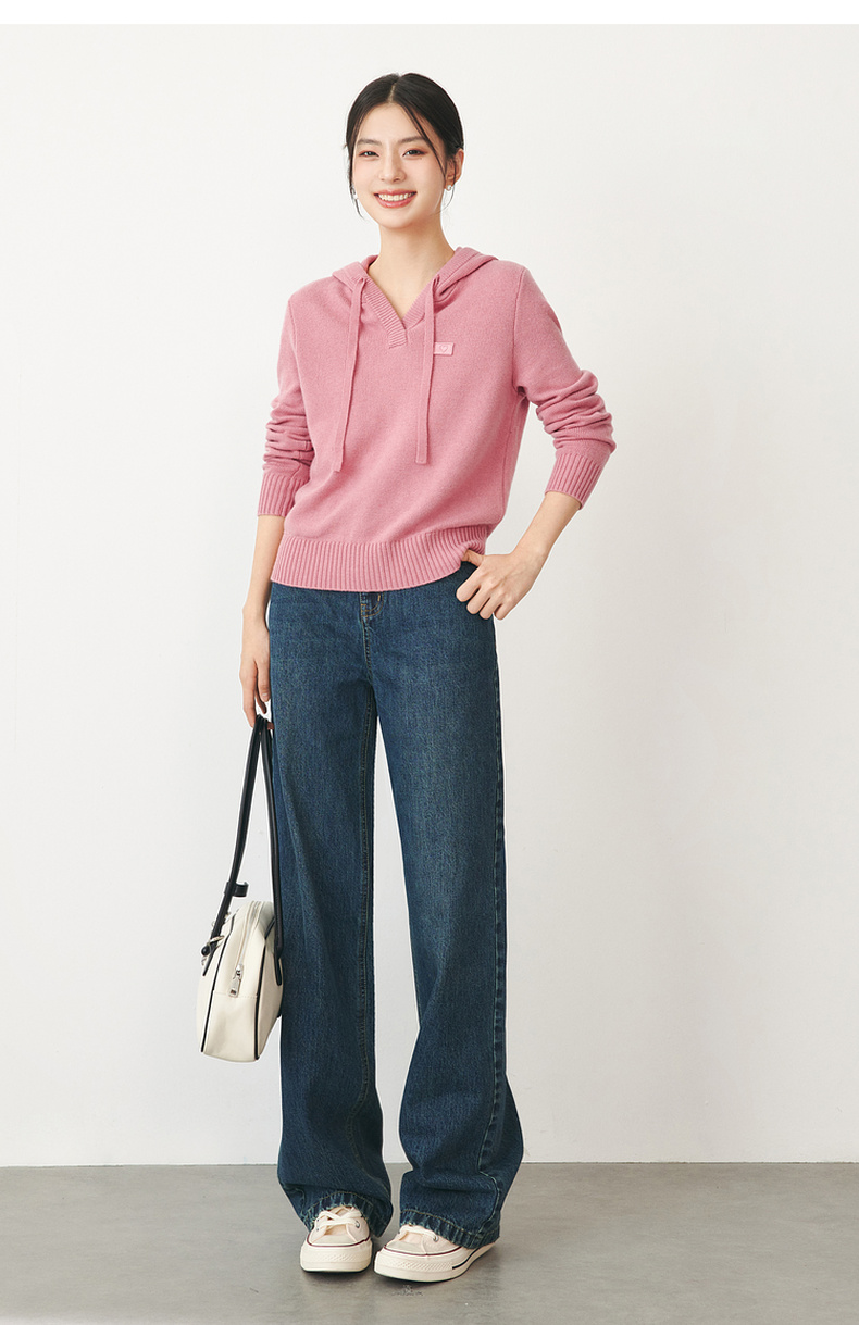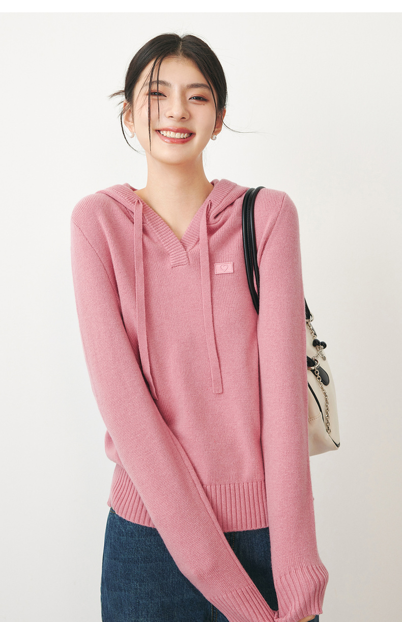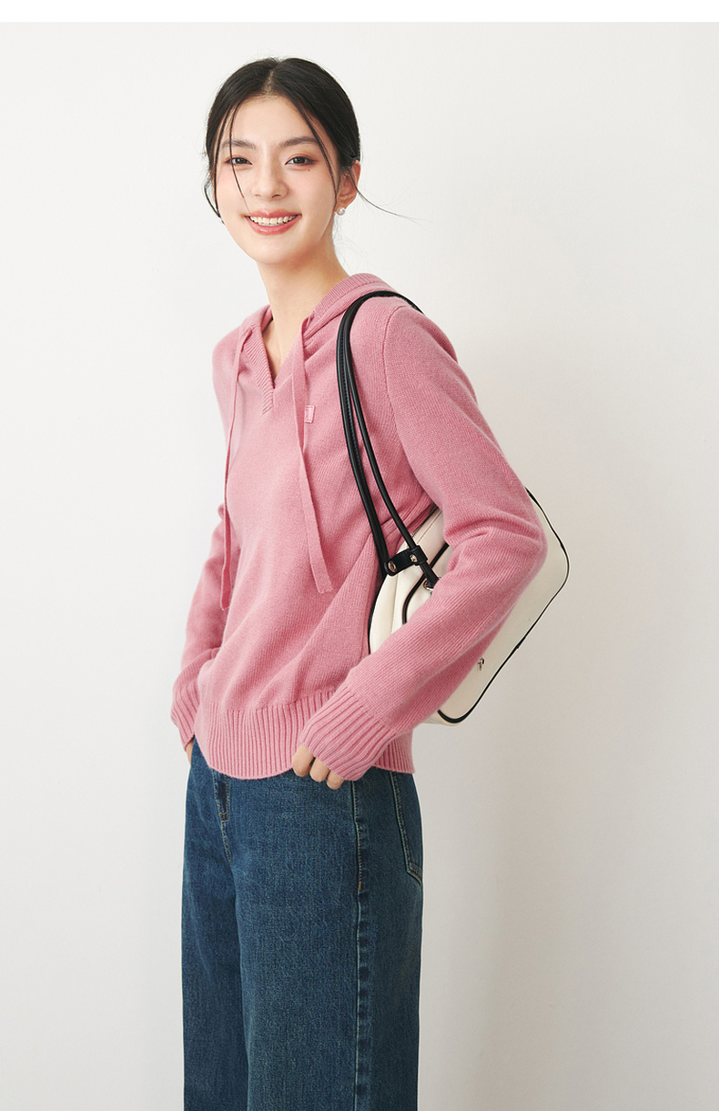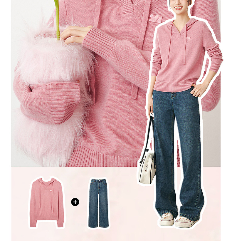 【严选】【SS系列】诗凡黎羊毛连帽卫衣式针织衫2024春新款绝美玫瑰粉毛衣SF1230371-5