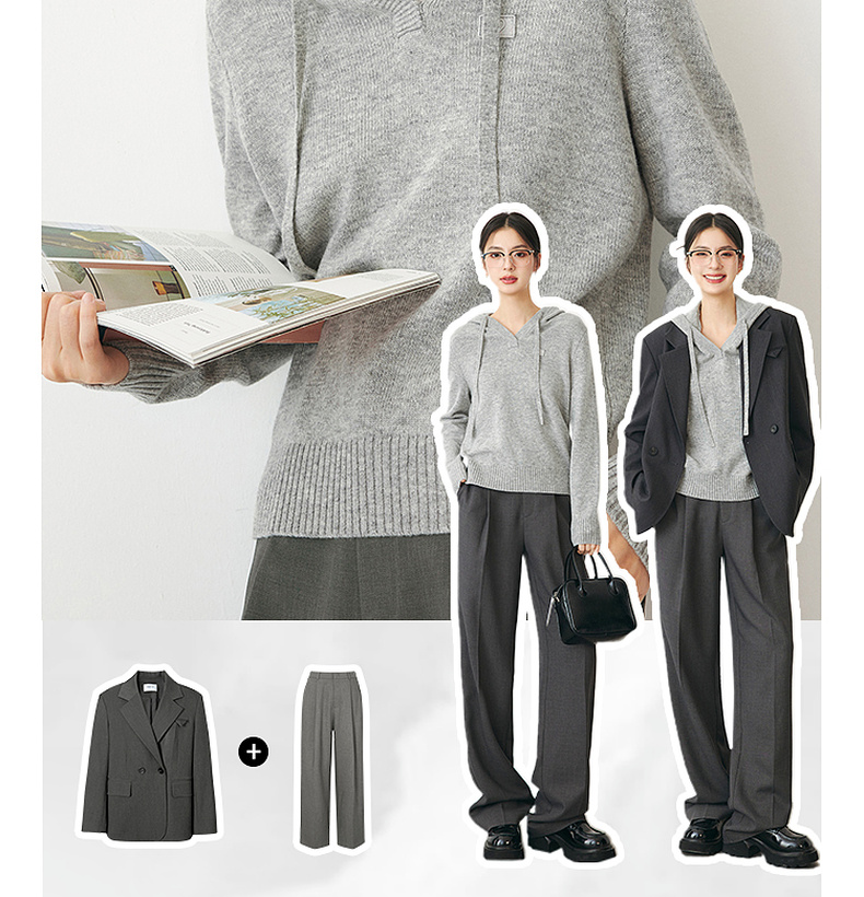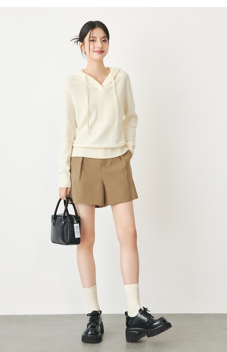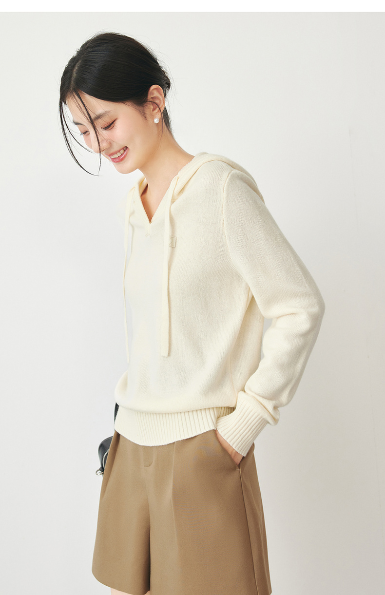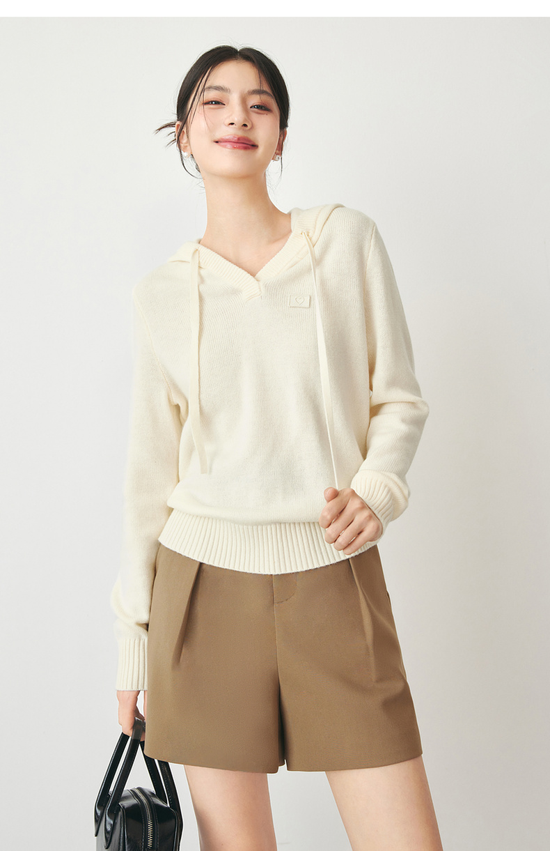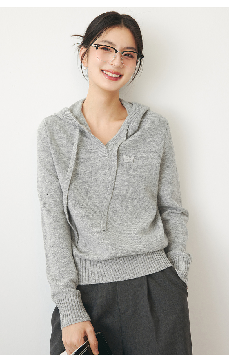 【严选】【SS系列】诗凡黎羊毛连帽卫衣式针织衫2024春新款绝美玫瑰粉毛衣SF1230371-5