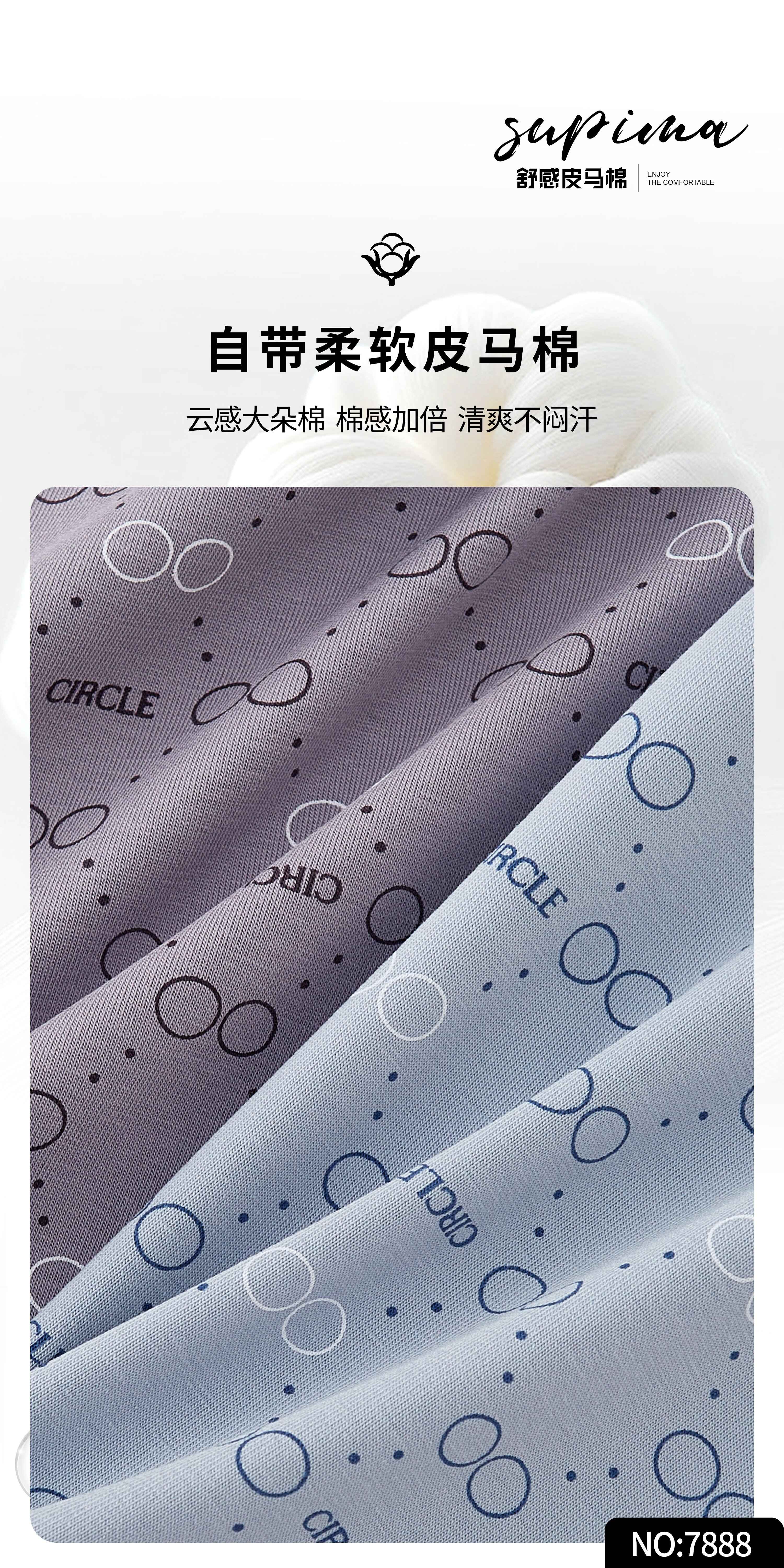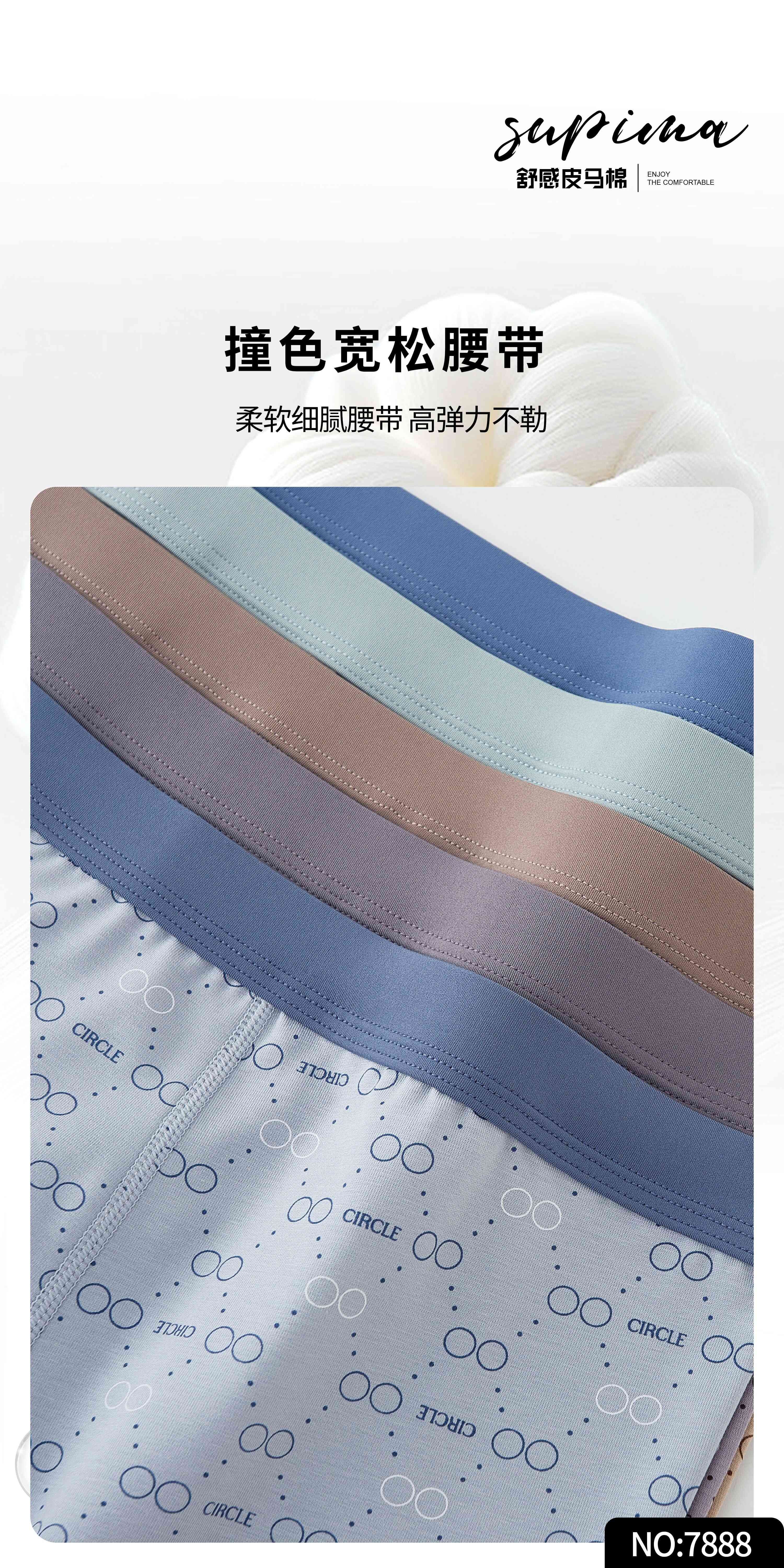 男士皮马棉圆圈印花包头平角内裤四角裤7888