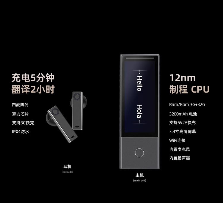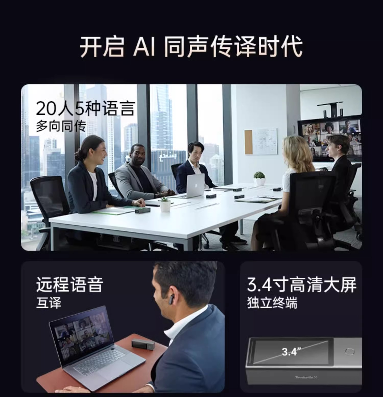 时空壶 X1 同声翻译耳机 多人会议实时智能耳机 多国语言对话离线翻译机 出国翻译同声传译器
