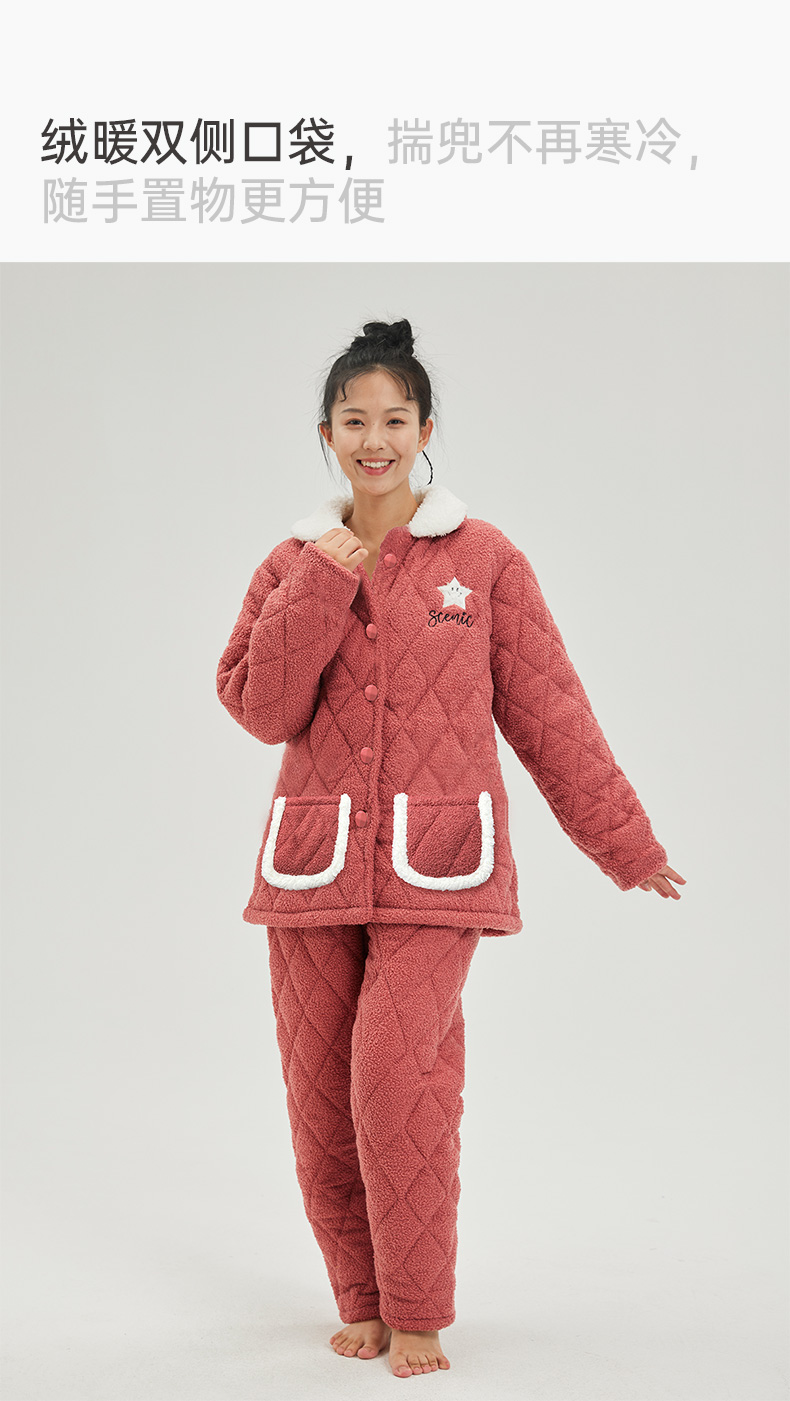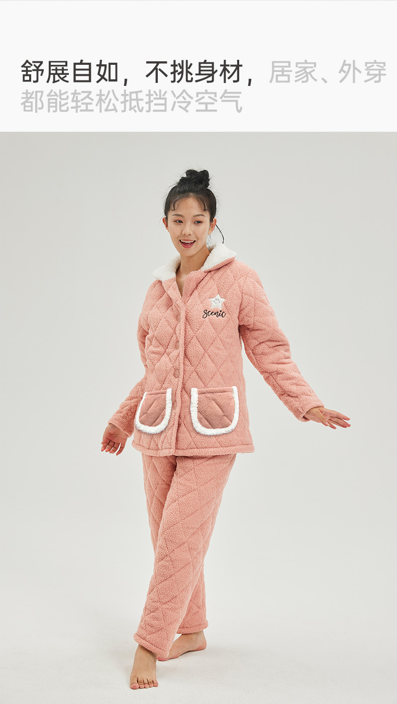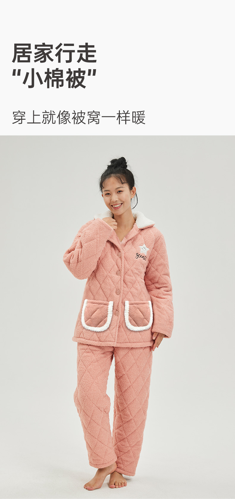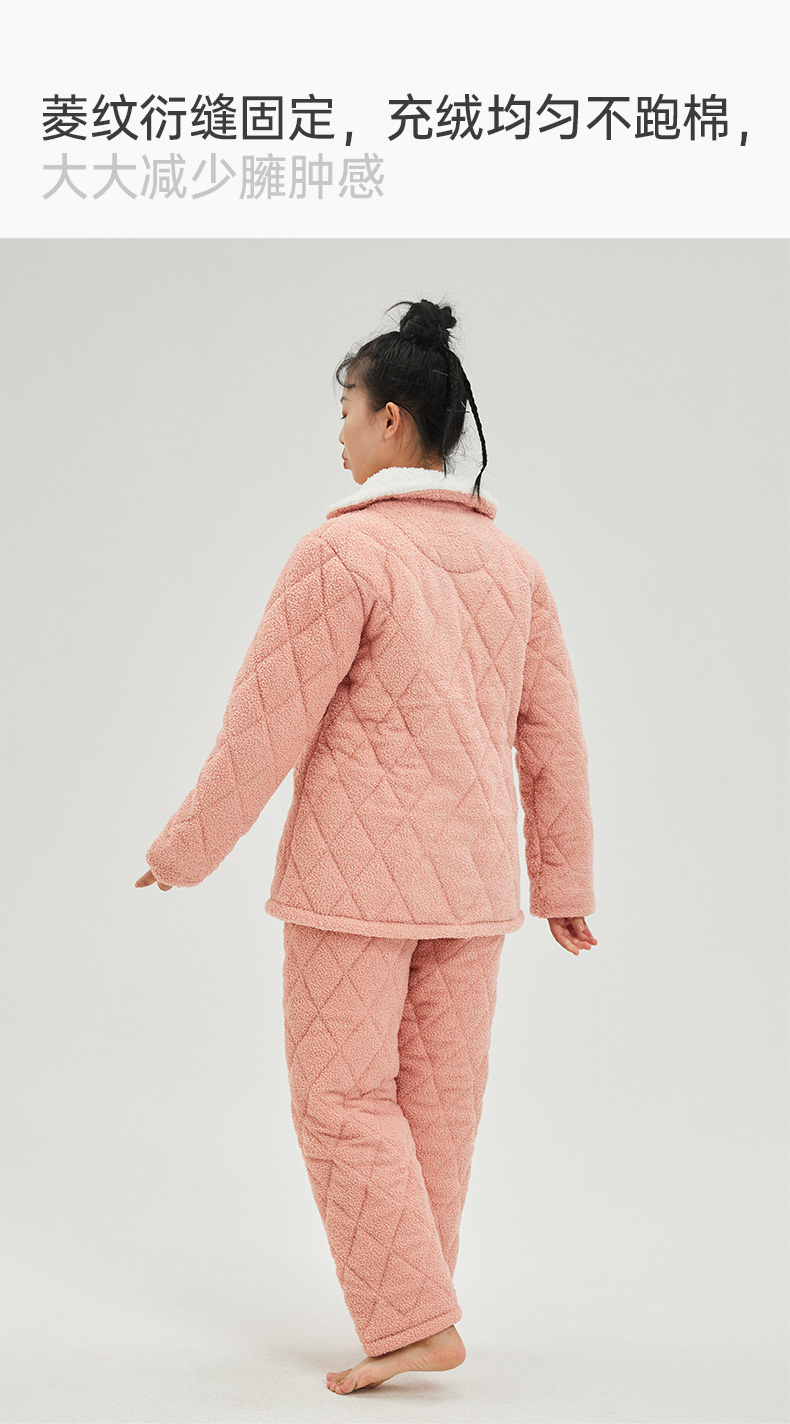 爱帝加厚款睡衣女士三层夹棉家居服冬季加绒保暖宽松睡衣套可外穿