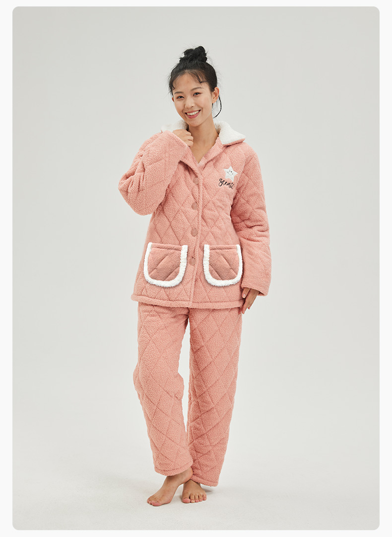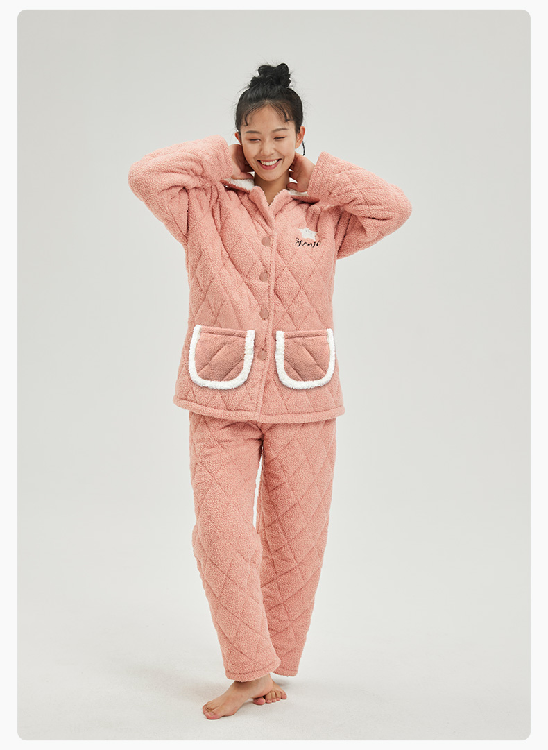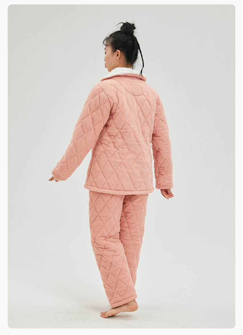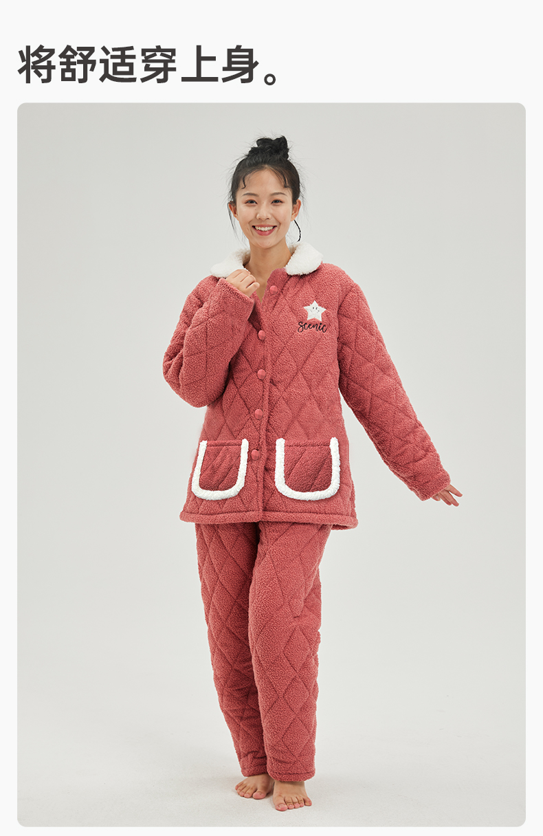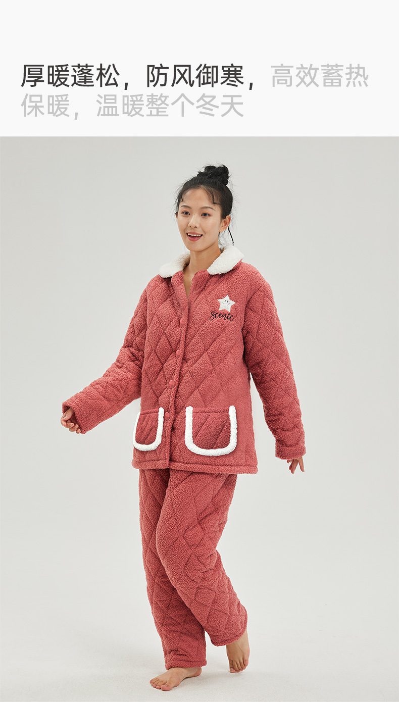 爱帝加厚款睡衣女士三层夹棉家居服冬季加绒保暖宽松睡衣套可外穿
