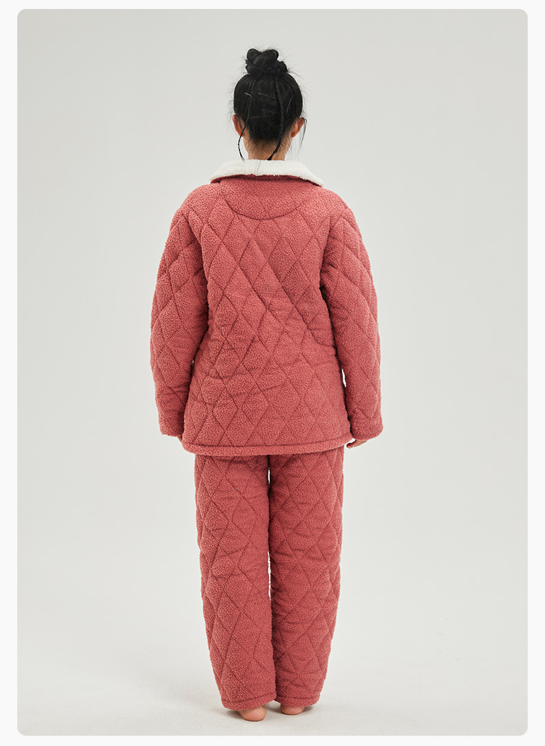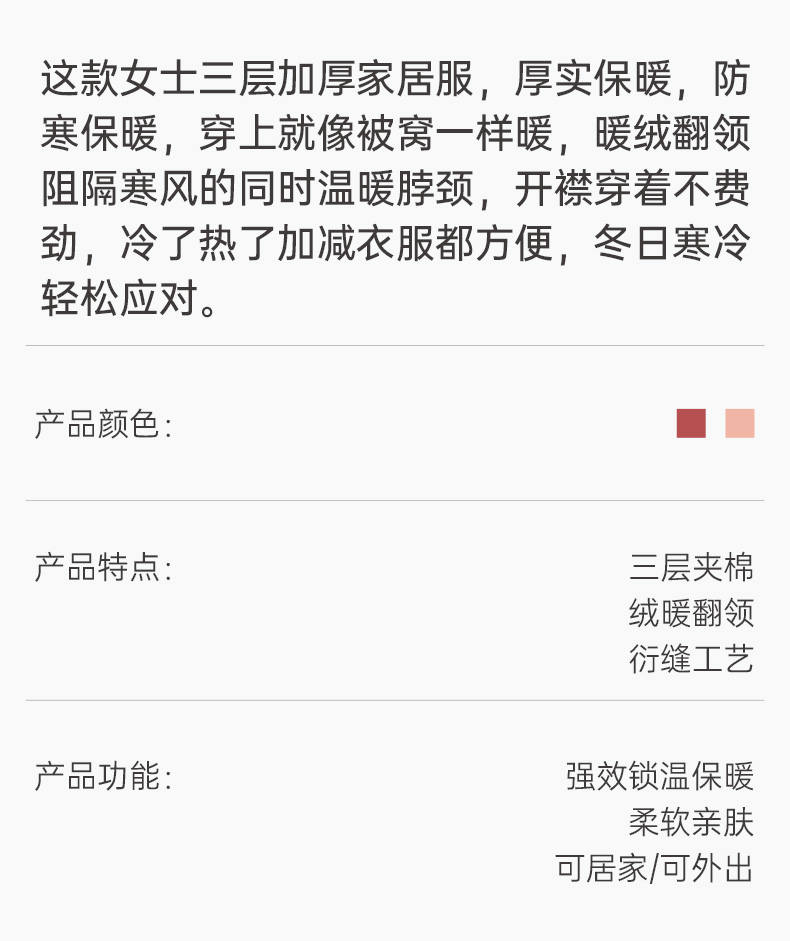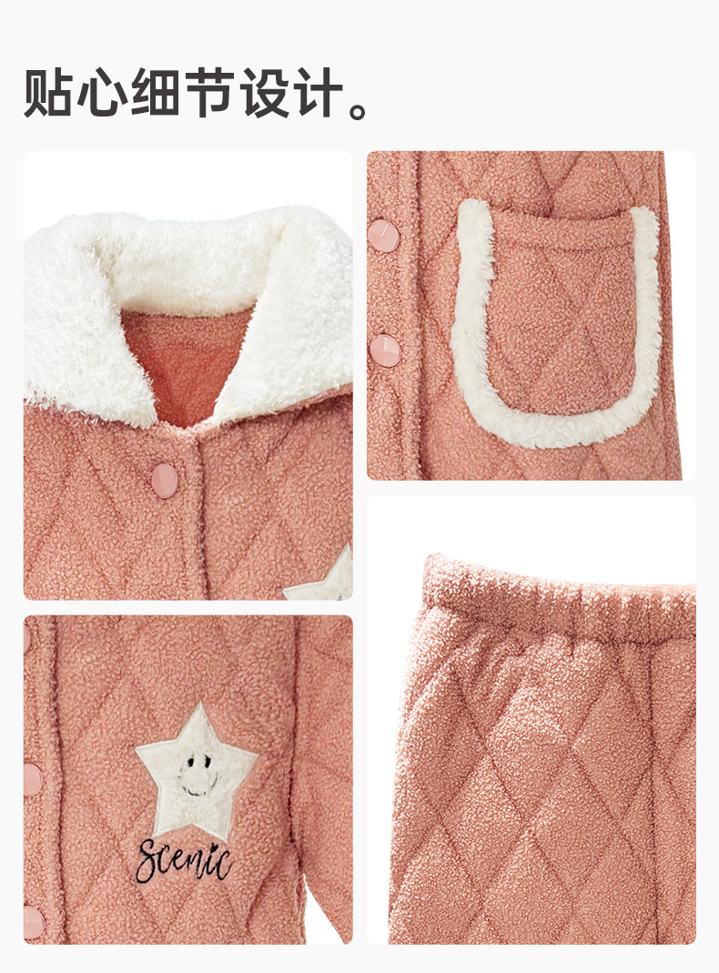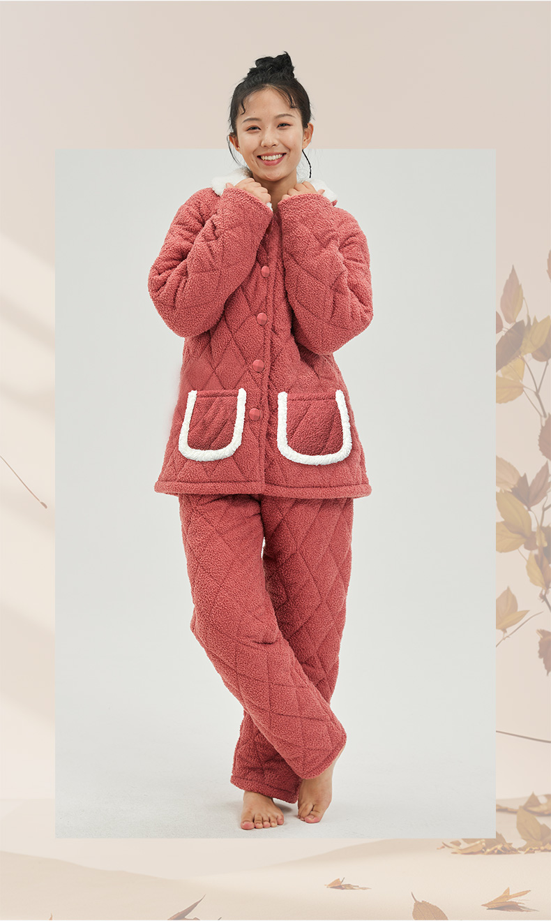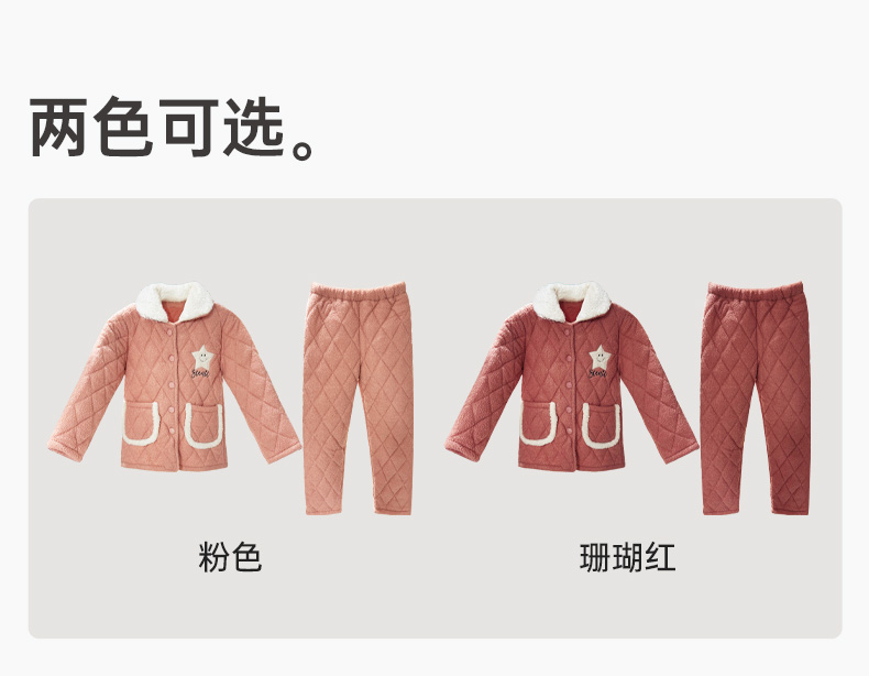 爱帝加厚款睡衣女士三层夹棉家居服冬季加绒保暖宽松睡衣套可外穿