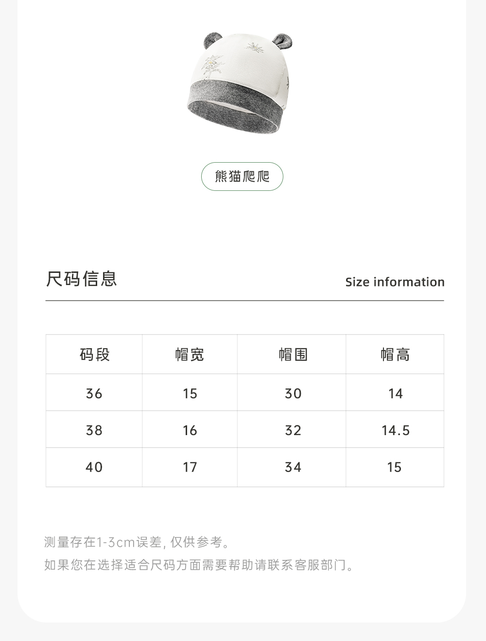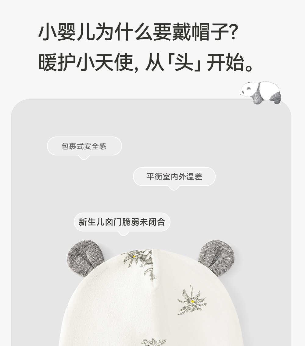 英氏熊猫氧感系列婴幼儿胎帽宝宝可爱圆帽2024春新款YLSJJ0Q003A