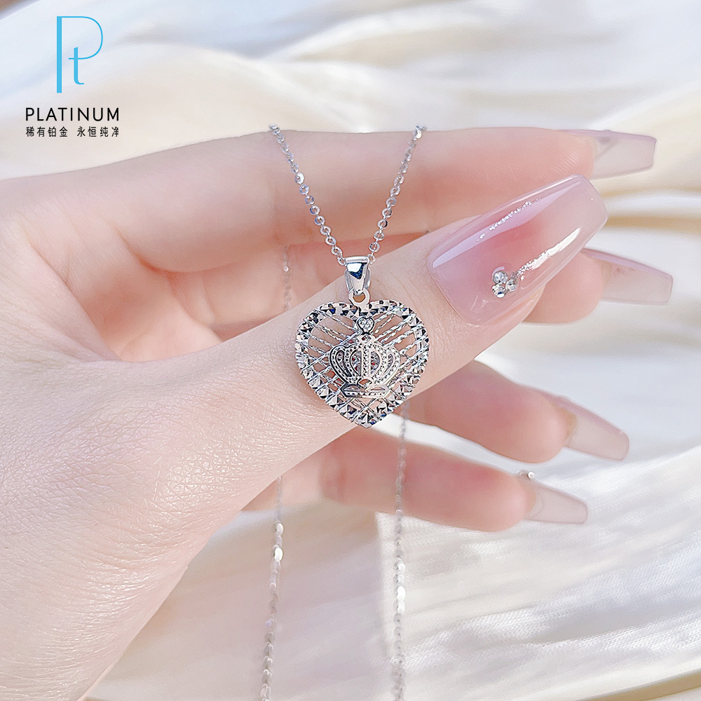【限时8.8折】PT950 #CNC #怦然心动 【国际铂金协会 精品】铂金镂空CNC绕线皇冠仿钻爱心心形吊坠(不含链)(ACPTDZ00065)预售产品下单后不退款不退货不换货不补差价)